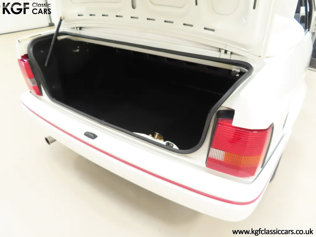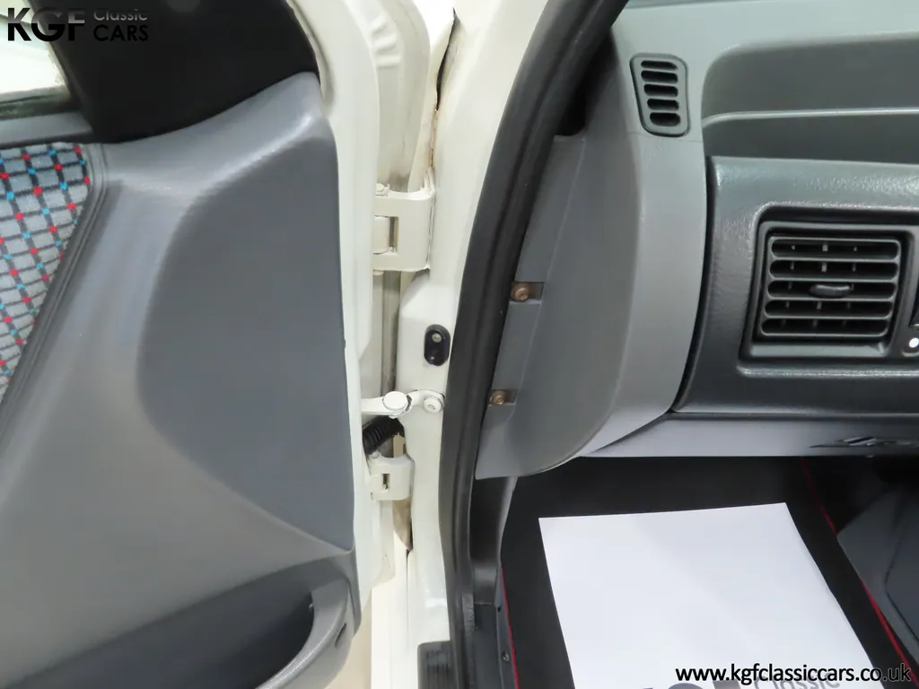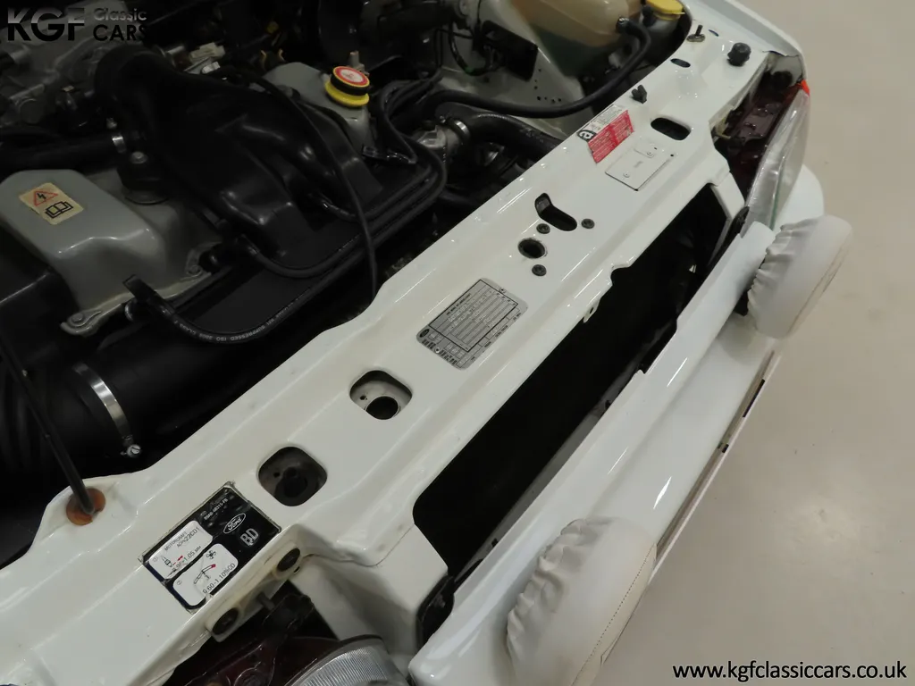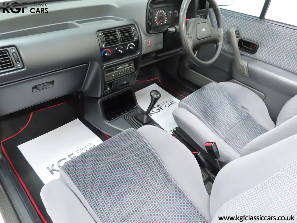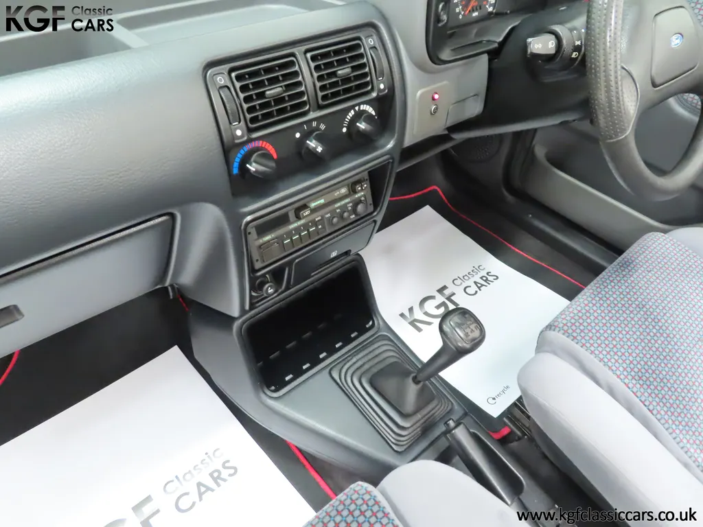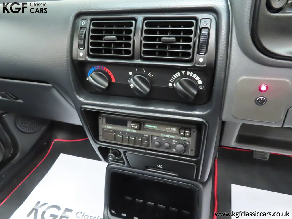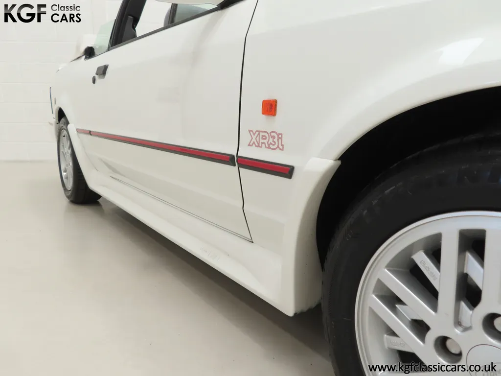 FOR SALE A retro icon Ford Escort XR3i Cabriolet 90-Spec with humongous history. EQUIPMENT 90-Spec body-coloured bumpers with protective red inserts, front spoiler, body-coloured door mirrors, driving lamps, white fast folding fully insulated vinyl roof with heated glass window, white hood cover, integral black roll bar, Quickclear heated front screen, electrically controlled and heated door mirrors, folding rear seats, lockable glovebox, wind-down rear quarter windows, cigar lighter, quartz digital clock, tachometer, Ford Model 2005 radio/cassette with anti-theft coding, four speakers and electric aerial. Factory Options: Alloy wheels size 6 x 14in. Dealer Options: Genuine RS Bodykit with side skirts and rear spoiler. Accessories: Toad CAT 1 alarm with microwave sensor, carpet mats, driving lamp covers. EXTERIOR This deliciously retro XR3i Cabriolet represents an original and unspoilt example of Fords iconic soft-top. Finished in striking Diamond White, (Code BK3), the paintwork boasts a fabulous uniform finish that clearly shows just how much the car has been cherished. All body panels are factory fitment with clearly defined inner wings stamps and the bodywork and shut lines are beautifully straight. Light touched in marks are visible upon close inspection but are entirely forgiven on such an original example as are the slightly faded XR3i decals. The Ford RS bodykit was fitted from new with RS logos clearly visible and the underside is remarkably well preserved. The white soft-top roof is beautifully clean, remains perfect in condition, fit and operation. The matching colour keyed hood cover for use when the hood is lowered is present and spotless. Factory Sigla glass and Ford light clusters remain fitted. INTERIOR A fun and practical option of retro soft-top motoring with space for five and a generous boot! The supportive sports seats trimmed with Zolda fabric in Shadow colour scheme, (Code LU), are in good condition with some very small holes to each front seat, barely noticeable. Door card shrinkage and scratched inner door handles are very common for the model, yet thankfully, there is only minor evidence on this example. The soft top headlining is very clean with no stains, rips or loose material and the heated rear glass screen free from scratches. The dashboard and switchgear are in superb order and all functions and controls operate including the standard Ford 2005 radio/cassette with electric aerial and the roof mounted digital clock. ENGINE & TRANSMISSION A delightfully crisp, responsive and free-revving 1.6 OHC (CVH) engine features electronic fuel injection with Ford’s own EEC IV engine management system (as fitted to later cars replacing the Bosch system). This increased power by 3bhp to give 108bhp to achieve an improved top speed of 116mph and 0-60mph in 9.7 seconds. The engine bay presentation is excellent with original factory stickers, labels and plates intact even on the slam panel! The car performs brilliantly and an expensive stainless steel exhaust replicating the original to give the characteristic rasp! The five-speed gearbox is light and precise and aids the enthusiastic driving XR owners are known for! WHEELS, TYRES & BRAKES Optional extra alloy wheels size 6 x 14in are in pristine condition and are shod in matching branded Goodyear Efficient Grip tyres covering little over 1,000 miles since being fitted in 2022. Stored inside the spare wheel is the original jack. The diagonally split dual-line servo assisted brakes stop the car straight and steady. HISTORY FILE Date of registration of this late 90 Spec example was the 4th July 1991 by Ford Main Dealer, Central Motor Company (Leicester) Ltd. Ownership of the car has been traced right back and the previous owner bought the car in 2016, the lady keeper prior to him having owned the car for around 20 years. The history file is humongous and dates back to when the car was new with masses of paperwork including MOT records dating back to the first in 1994. There are also service book records since the first service carried out in late 1991. Part of the impressive vehicle history is that the car was featured with the previous owner in the April 2018 issue of ClassicFord magazine whereby a prime example was required for a four-page ‘Buying Tips’ article. This very car was used in the feature and several copies of the magazine are in the folder. All handbooks are included as well as both seats of keys with alarm fobs and a Ford range brochure from 1990. In November 2025, the car was serviced and the cambelt and water pump were replaced. Now offered for sale due to the fastidious owner downsizing his collection of classic 1980’s cars, motorbikes and iconic memorabilia such as an unused Sinclair C5! Look no further for a beautifully cherished unspoilt example ready to use and impress at classic car shows and retro outings! MOT December 2026, HPI clear.