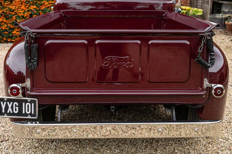 This lot will be auctioned via Iconic Auctioneers, The Classic Sale at the NEC Classic Motor Show 2025 on Sunday the 9th of November, NEC, Birmingham, B40 1NT. Imported into the UK in 2019 having been restored in the US to a very high standard Beautifully presented in Deep Burgundy with a tan interior Powered by a period correct 3,900cc Flathead V8 Fully detailed throughout including the pick-up bed finished in 22mm American Oak with stainless steel running strips Used by its previous custodian for promotional purposes for the Coffee Real brand in Horsham Remains in superb condition throughout with a minor crack to the drivers side passenger window being the only item that may require your attention Your early inspection is welcomed and encouraged to fully appreciate this head-turning piece of Americana that will be welcome at any classic vehicle gathering or indeed could be utilised once again for business promotional activities