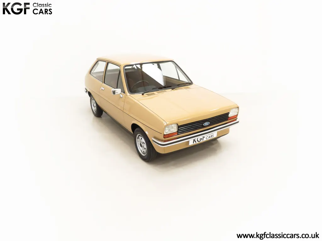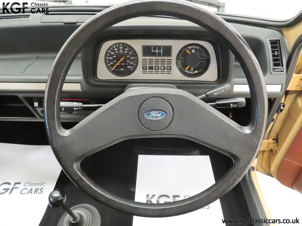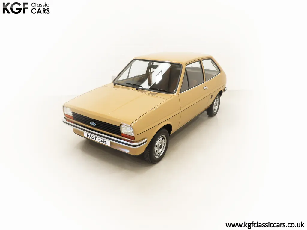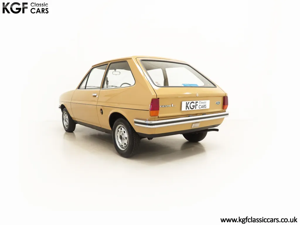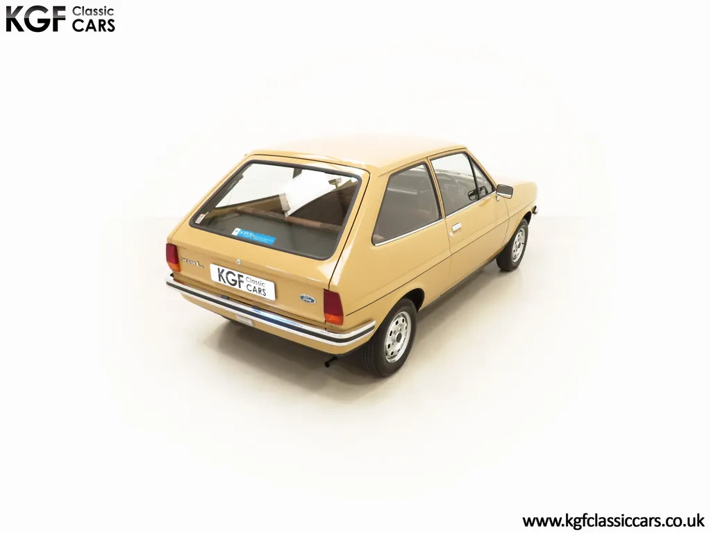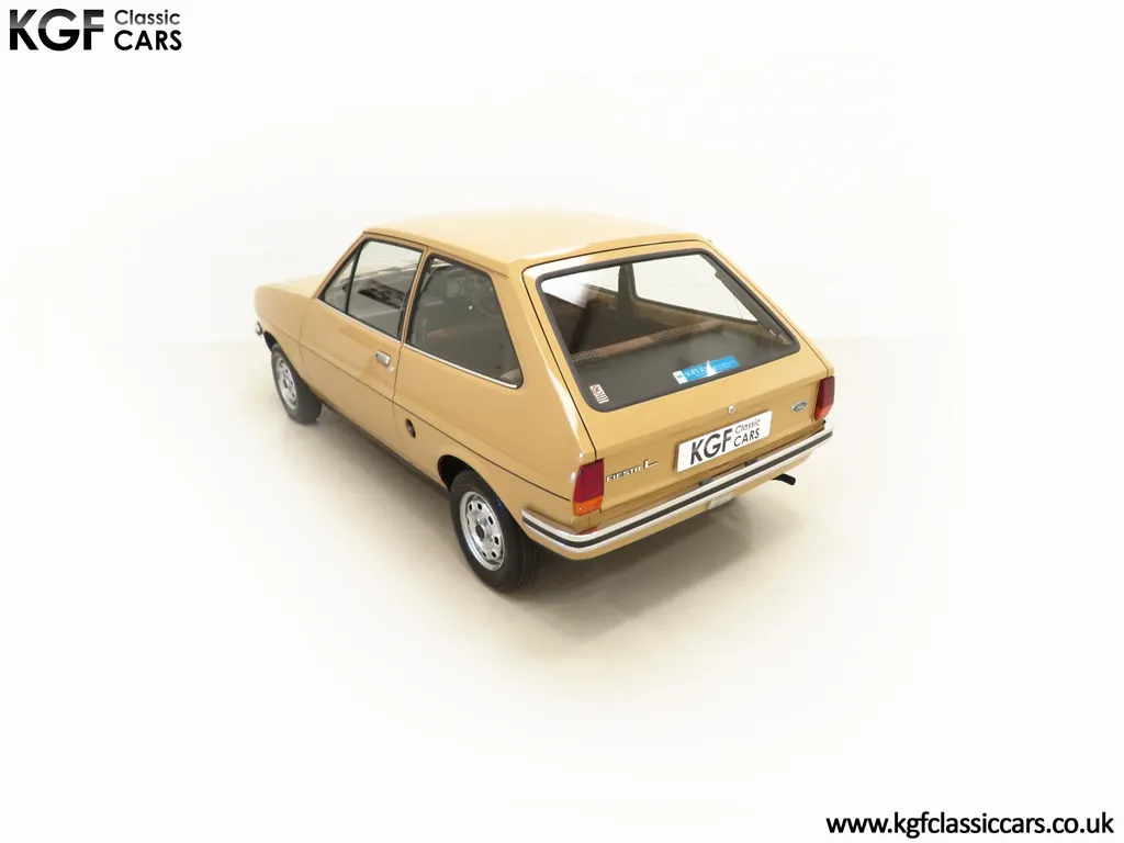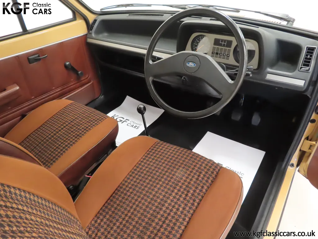 FOR SALE An early Mk1 Ford Fiesta L 950 owned by the same family from new! EQUIPMENT Black louvred design radiator grille, drag-reducing aerofoil section, integral front air dam, bright bumpers with black inserts, bright waist rail, bright driver’s door mirror, bodyside coachline, L badge on rear door, halogen headlamps, reversing lamp, heated rear window, quick action single fold rear bench seat with automatic lock, storage compartment under rear floor, front passenger glove compartment and package shelf, air blending heater with two-speed fan, three ashtrays, two-speed wipers, folding detachable rear package tray, three grab handles. Dealer Options: Endrust preservation treatment. EXTERIOR An early Mk1 Fiesta on a S suffix registration, this wonderfully honest example has remained in the same family since new and covered a mere 44,161 miles! Finished in the deliciously period original colour of Nevada Beige, (Code 8), this unrestored example looks amazing with a deep glossy shine to the body panels which, incredibly, are factory fitment. Amazing preservation, thanks in large to dealer applied Endrust treatment from new and cherished family ownership, has seen the bodywork survive in amazing condition with zero evident rust repairs and an underside in perfect structural condition having never been welded, which is almost unheard of! Close scrutiny reveals nothing other than a few light touched in scratches and slight age tarnishing to the badges. Trim sections, lenses and bumpers are in fantastic condition and the original coachline and factory glass throughout remains, as do the supplying dealer steel number plates and rear screen sticker. Lack of rear screen wiper denote an earlier car and this brilliant example is among the best you will ever find. INTERIOR The original L specification Houndstooth Fabric Trim in Black and Chocolate, (Code J I), is wonderfully retro and remains beautifully unspoilt. The fabric and structure to the seats is superb and spotlessly clean, and the doors cards, carpets and headlining are immaculate. Very slight fading to the top of the rear bench seat is forgiven considering the originality, and even factory stickers remain on the seat belt buckles! The wonderfully sparse fascia is fully intact with no cracks or damage and all equipment and functions, albeit minimal, operate perfectly. The foot operated manual pump for the windscreen washers is a feature of only the very early cars, yet on this example this has been bypassed for a discreet and far more effective electric button on the steering column. One rear ashtray is missing. The luggage space is very clean and complete with the original jack and brace as well as factory foam insulation intact. An unspoilt reflection of a bygone simplistic motoring era, this incredible early Fiesta interior is just lovely! ENGINE & TRANSMISSION This frugal Fiesta L 950 is powered by the 957cc four-cylinder OHV unit developing a blistering 45bhp! Fabulously robust and simple, the engine still has the original single-choke carburettor with Ford fuel pump and the car jumps into life effortlessly. The instantly recognisable engine hum is hugely nostalgic, and car performs brilliantly. The engine bay still wears the extensive Endrust treatment which has done its job entirely in preserving the structure. The original inner wings, strut tops and bulkhead are absolutely solid. The engine bay presents very well with factory PDI dabs visible as well as Ford plug leads. Further early car features include lack of brake servo, slam panel mounted VIN plate and the radiator overflow sited next to the radiator as opposed to the bulkhead. The four-speed gearbox operates well and this lively little Fiesta is great fun to drive! WHEELS, TYRES & BRAKES The factory steel wheels of size 4 x 12 are in perfect order with all black centre caps intact. Matching branded 145/80 R12 tyres have plenty of tread and the spare wheel is shod in a Pirelli Cinturato P3 tyre. The diagonally split brakes with discs up front and self-adjusting drums at the rear operate correctly having been subject to full overhaul in October 2025. HISTORY FILE Registered new on the 13th June 1978 by Ford Main Dealer, Sopers of South Brent Ltd, this exceptional example was purchased by first owner Mr Goss. The new car sales invoice in the history file shows he paid £2,667.19 having opted for Endrust preservation treatment and with a part exchange allowance of £150.19 for his 1964 Ford Anglia. Incredibly, this Fiesta has remained in the Goss family since new with ownership passing to his wife in 1992 and then son in 2001. The history file is equally amazing and huge, with the original service book stamped with annual servicing by the supplying dealer until the late 1980’s and since then up to 2021 the same independent garage has serviced the car virtually every year! There are no less than 50 invoices from Wrangaton Motors in South Brent for servicing and maintenance spanning from the first in 1986 right up to 2021, 35 years! Furthermore, all MOT certificates from the 1980’s to present are neatly filed and the mere 44,161 miles from new is fully warranted. A full service and mechanical inspection was carried out in October 2025 and maintenance items such as the water pump, belt and brakes have been replaced/overhauled at this time. The handbook, spare keys and even an original Ford range brochure from 1978 are present. The condition, originality, ownership history and colossal history file are equally amazing and there is no doubt this is one of the best cared for Fiesta’s in existence! MOT August 2026, HPI Clear.