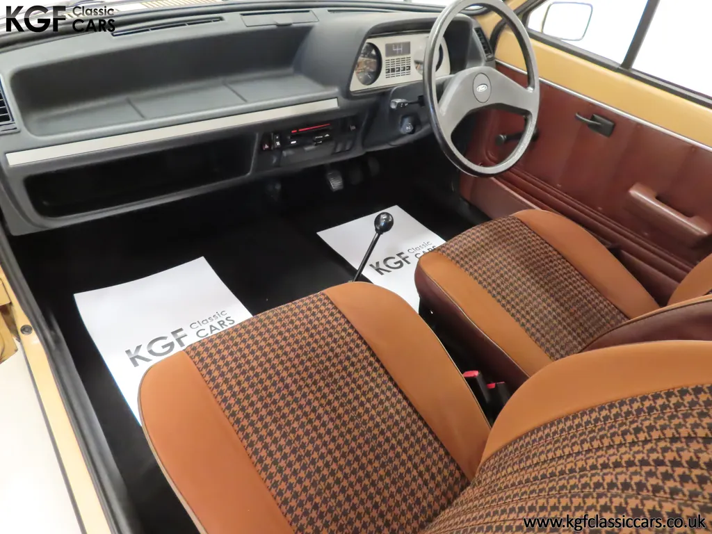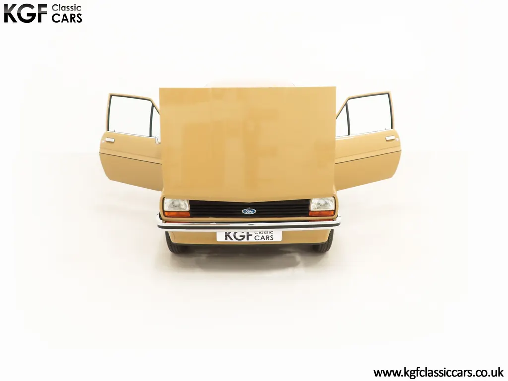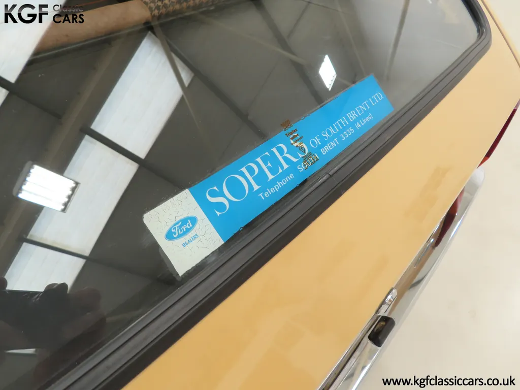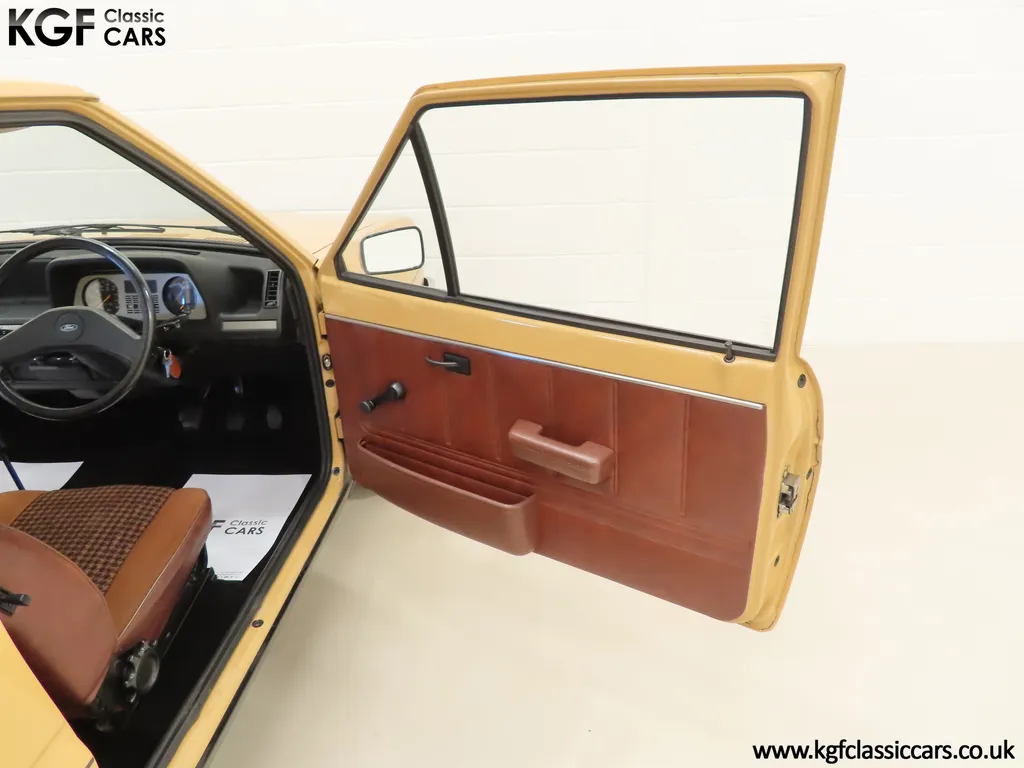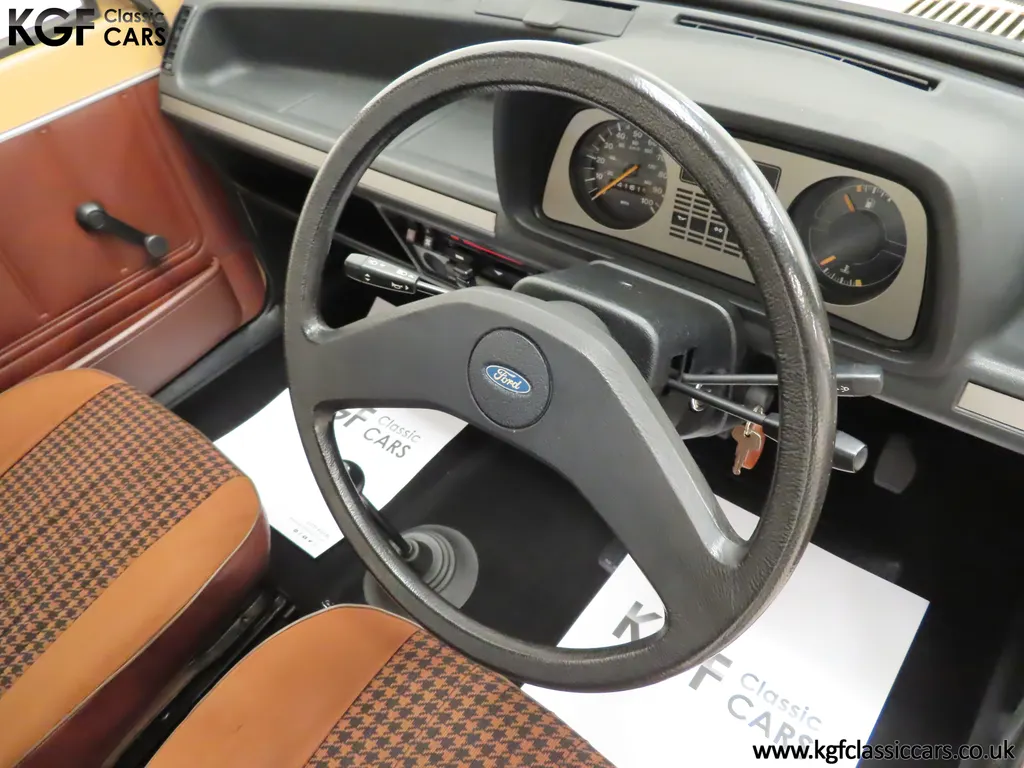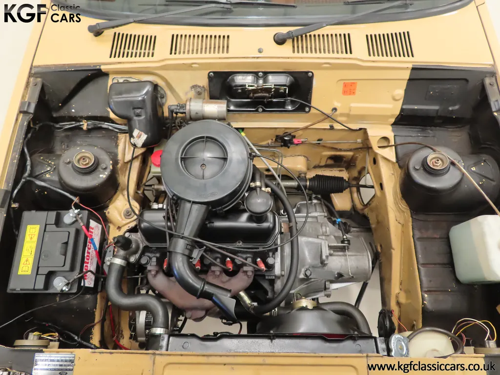 FOR SALE An early Mk1 Ford Fiesta L 950 owned by the same family from new! EQUIPMENT Black louvred design radiator grille, drag-reducing aerofoil section, integral front air dam, bright bumpers with black inserts, bright waist rail, bright driver’s door mirror, bodyside coachline, L badge on rear door, halogen headlamps, reversing lamp, heated rear window, quick action single fold rear bench seat with automatic lock, storage compartment under rear floor, front passenger glove compartment and package shelf, air blending heater with two-speed fan, three ashtrays, two-speed wipers, folding detachable rear package tray, three grab handles. Dealer Options: Endrust preservation treatment. EXTERIOR An early Mk1 Fiesta on a S suffix registration, this wonderfully honest example has remained in the same family since new and covered a mere 44,161 miles! Finished in the deliciously period original colour of Nevada Beige, (Code 8), this unrestored example looks amazing with a deep glossy shine to the body panels which, incredibly, are factory fitment. Amazing preservation, thanks in large to dealer applied Endrust treatment from new and cherished family ownership, has seen the bodywork survive in amazing condition with zero evident rust repairs and an underside in perfect structural condition having never been welded, which is almost unheard of! Close scrutiny reveals nothing other than a few light touched in scratches and slight age tarnishing to the badges. Trim sections, lenses and bumpers are in fantastic condition and the original coachline and factory glass throughout remains, as do the supplying dealer steel number plates and rear screen sticker. Lack of rear screen wiper denote an earlier car and this brilliant example is among the best you will ever find. INTERIOR The original L specification Houndstooth Fabric Trim in Black and Chocolate, (Code J I), is wonderfully retro and remains beautifully unspoilt. The fabric and structure to the seats is superb and spotlessly clean, and the doors cards, carpets and headlining are immaculate. Very slight fading to the top of the rear bench seat is forgiven considering the originality, and even factory stickers remain on the seat belt buckles! The wonderfully sparse fascia is fully intact with no cracks or damage and all equipment and functions, albeit minimal, operate perfectly. The foot operated manual pump for the windscreen washers is a feature of only the very early cars, yet on this example this has been bypassed for a discreet and far more effective electric button on the steering column. One rear ashtray is missing. The luggage space is very clean and complete with the original jack and brace as well as factory foam insulation intact. An unspoilt reflection of a bygone simplistic motoring era, this incredible early Fiesta interior is just lovely! ENGINE & TRANSMISSION This frugal Fiesta L 950 is powered by the 957cc four-cylinder OHV unit developing a blistering 45bhp! Fabulously robust and simple, the engine still has the original single-choke carburettor with Ford fuel pump and the car jumps into life effortlessly. The instantly recognisable engine hum is hugely nostalgic, and car performs brilliantly. The engine bay still wears the extensive Endrust treatment which has done its job entirely in preserving the structure. The original inner wings, strut tops and bulkhead are absolutely solid. The engine bay presents very well with factory PDI dabs visible as well as Ford plug leads. Further early car features include lack of brake servo, slam panel mounted VIN plate and the radiator overflow sited next to the radiator as opposed to the bulkhead. The four-speed gearbox operates well and this lively little Fiesta is great fun to drive! WHEELS, TYRES & BRAKES The factory steel wheels of size 4 x 12 are in perfect order with all black centre caps intact. Matching branded 145/80 R12 tyres have plenty of tread and the spare wheel is shod in a Pirelli Cinturato P3 tyre. The diagonally split brakes with discs up front and self-adjusting drums at the rear operate correctly having been subject to full overhaul in October 2025. HISTORY FILE Registered new on the 13th June 1978 by Ford Main Dealer, Sopers of South Brent Ltd, this exceptional example was purchased by first owner Mr Goss. The new car sales invoice in the history file shows he paid £2,667.19 having opted for Endrust preservation treatment and with a part exchange allowance of £150.19 for his 1964 Ford Anglia. Incredibly, this Fiesta has remained in the Goss family since new with ownership passing to his wife in 1992 and then son in 2001. The history file is equally amazing and huge, with the original service book stamped with annual servicing by the supplying dealer until the late 1980’s and since then up to 2021 the same independent garage has serviced the car virtually every year! There are no less than 50 invoices from Wrangaton Motors in South Brent for servicing and maintenance spanning from the first in 1986 right up to 2021, 35 years! Furthermore, all MOT certificates from the 1980’s to present are neatly filed and the mere 44,161 miles from new is fully warranted. A full service and mechanical inspection was carried out in October 2025 and maintenance items such as the water pump, belt and brakes have been replaced/overhauled at this time. The handbook, spare keys and even an original Ford range brochure from 1978 are present. The condition, originality, ownership history and colossal history file are equally amazing and there is no doubt this is one of the best cared for Fiesta’s in existence! MOT August 2026, HPI Clear.
