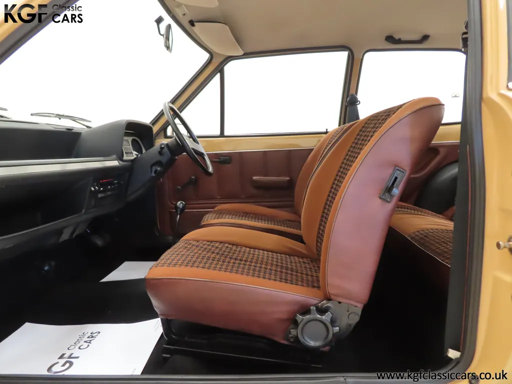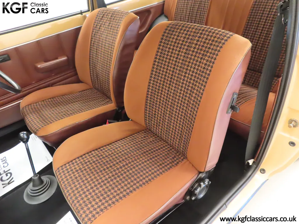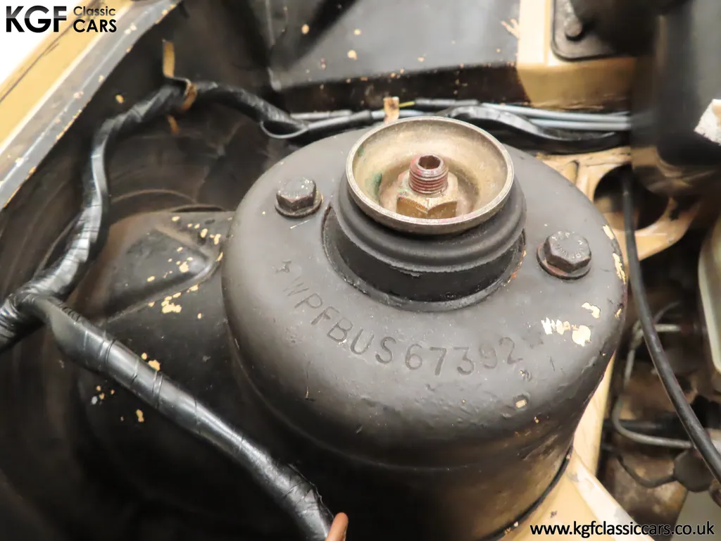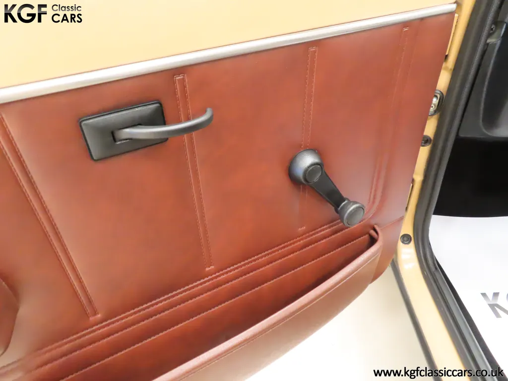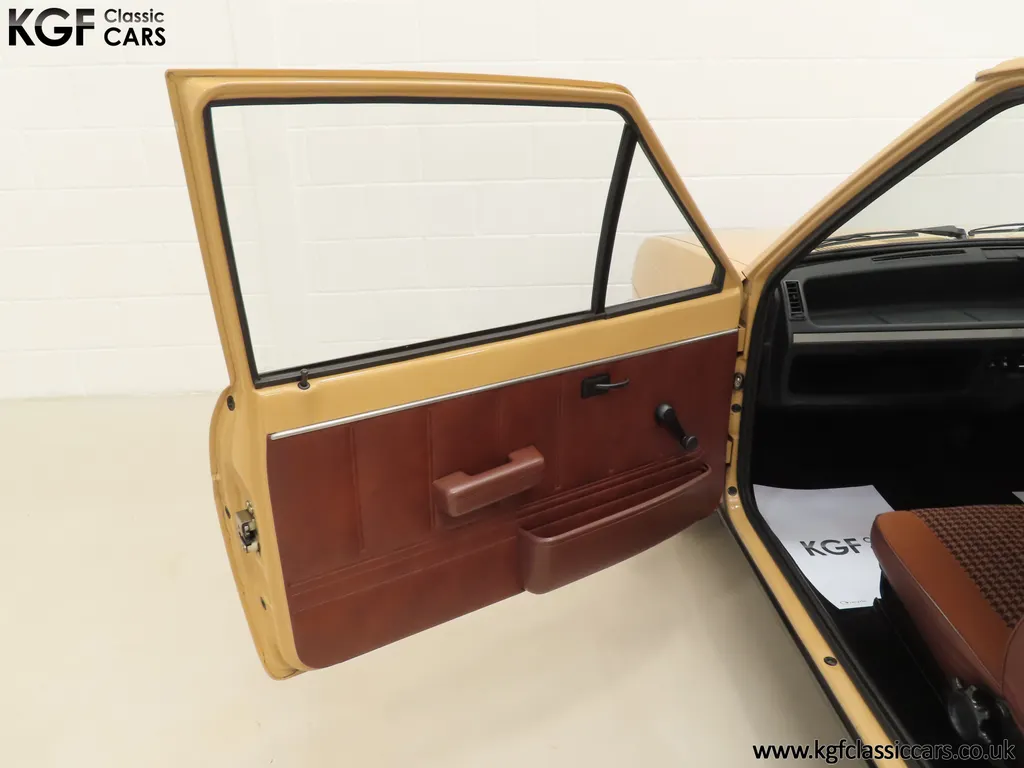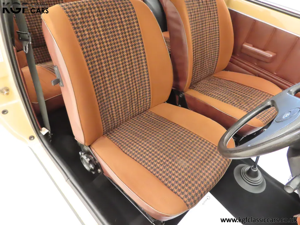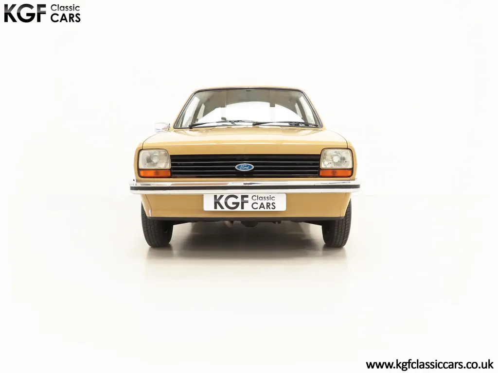 FOR SALE An early Mk1 Ford Fiesta L 950 owned by the same family from new! EQUIPMENT Black louvred design radiator grille, drag-reducing aerofoil section, integral front air dam, bright bumpers with black inserts, bright waist rail, bright driver’s door mirror, bodyside coachline, L badge on rear door, halogen headlamps, reversing lamp, heated rear window, quick action single fold rear bench seat with automatic lock, storage compartment under rear floor, front passenger glove compartment and package shelf, air blending heater with two-speed fan, three ashtrays, two-speed wipers, folding detachable rear package tray, three grab handles. Dealer Options: Endrust preservation treatment. EXTERIOR An early Mk1 Fiesta on a S suffix registration, this wonderfully honest example has remained in the same family since new and covered a mere 44,161 miles! Finished in the deliciously period original colour of Nevada Beige, (Code 8), this unrestored example looks amazing with a deep glossy shine to the body panels which, incredibly, are factory fitment. Amazing preservation, thanks in large to dealer applied Endrust treatment from new and cherished family ownership, has seen the bodywork survive in amazing condition with zero evident rust repairs and an underside in perfect structural condition having never been welded, which is almost unheard of! Close scrutiny reveals nothing other than a few light touched in scratches and slight age tarnishing to the badges. Trim sections, lenses and bumpers are in fantastic condition and the original coachline and factory glass throughout remains, as do the supplying dealer steel number plates and rear screen sticker. Lack of rear screen wiper denote an earlier car and this brilliant example is among the best you will ever find. INTERIOR The original L specification Houndstooth Fabric Trim in Black and Chocolate, (Code J I), is wonderfully retro and remains beautifully unspoilt. The fabric and structure to the seats is superb and spotlessly clean, and the doors cards, carpets and headlining are immaculate. Very slight fading to the top of the rear bench seat is forgiven considering the originality, and even factory stickers remain on the seat belt buckles! The wonderfully sparse fascia is fully intact with no cracks or damage and all equipment and functions, albeit minimal, operate perfectly. The foot operated manual pump for the windscreen washers is a feature of only the very early cars, yet on this example this has been bypassed for a discreet and far more effective electric button on the steering column. One rear ashtray is missing. The luggage space is very clean and complete with the original jack and brace as well as factory foam insulation intact. An unspoilt reflection of a bygone simplistic motoring era, this incredible early Fiesta interior is just lovely! ENGINE & TRANSMISSION This frugal Fiesta L 950 is powered by the 957cc four-cylinder OHV unit developing a blistering 45bhp! Fabulously robust and simple, the engine still has the original single-choke carburettor with Ford fuel pump and the car jumps into life effortlessly. The instantly recognisable engine hum is hugely nostalgic, and car performs brilliantly. The engine bay still wears the extensive Endrust treatment which has done its job entirely in preserving the structure. The original inner wings, strut tops and bulkhead are absolutely solid. The engine bay presents very well with factory PDI dabs visible as well as Ford plug leads. Further early car features include lack of brake servo, slam panel mounted VIN plate and the radiator overflow sited next to the radiator as opposed to the bulkhead. The four-speed gearbox operates well and this lively little Fiesta is great fun to drive! WHEELS, TYRES & BRAKES The factory steel wheels of size 4 x 12 are in perfect order with all black centre caps intact. Matching branded 145/80 R12 tyres have plenty of tread and the spare wheel is shod in a Pirelli Cinturato P3 tyre. The diagonally split brakes with discs up front and self-adjusting drums at the rear operate correctly having been subject to full overhaul in October 2025. HISTORY FILE Registered new on the 13th June 1978 by Ford Main Dealer, Sopers of South Brent Ltd, this exceptional example was purchased by first owner Mr Goss. The new car sales invoice in the history file shows he paid £2,667.19 having opted for Endrust preservation treatment and with a part exchange allowance of £150.19 for his 1964 Ford Anglia. Incredibly, this Fiesta has remained in the Goss family since new with ownership passing to his wife in 1992 and then son in 2001. The history file is equally amazing and huge, with the original service book stamped with annual servicing by the supplying dealer until the late 1980’s and since then up to 2021 the same independent garage has serviced the car virtually every year! There are no less than 50 invoices from Wrangaton Motors in South Brent for servicing and maintenance spanning from the first in 1986 right up to 2021, 35 years! Furthermore, all MOT certificates from the 1980’s to present are neatly filed and the mere 44,161 miles from new is fully warranted. A full service and mechanical inspection was carried out in October 2025 and maintenance items such as the water pump, belt and brakes have been replaced/overhauled at this time. The handbook, spare keys and even an original Ford range brochure from 1978 are present. The condition, originality, ownership history and colossal history file are equally amazing and there is no doubt this is one of the best cared for Fiesta’s in existence! MOT August 2026, HPI Clear.