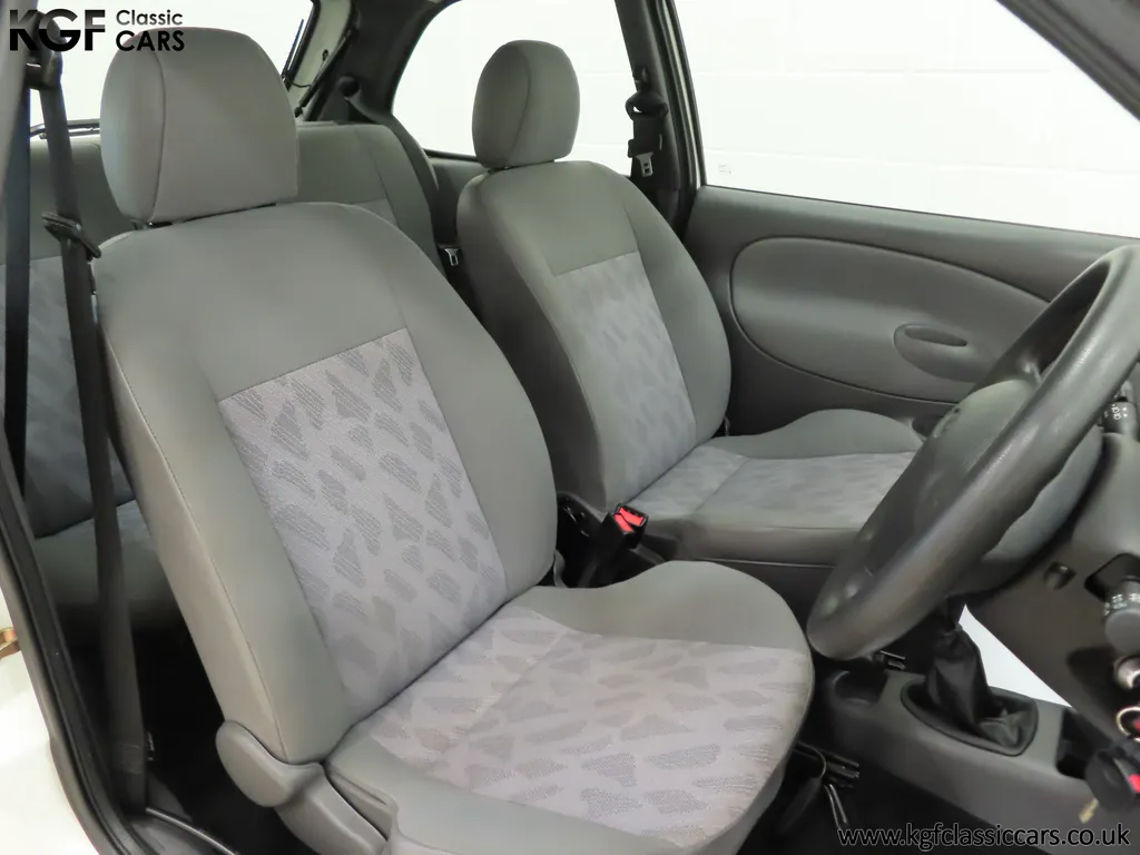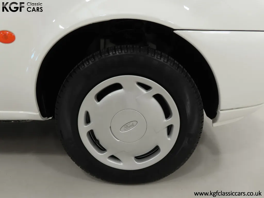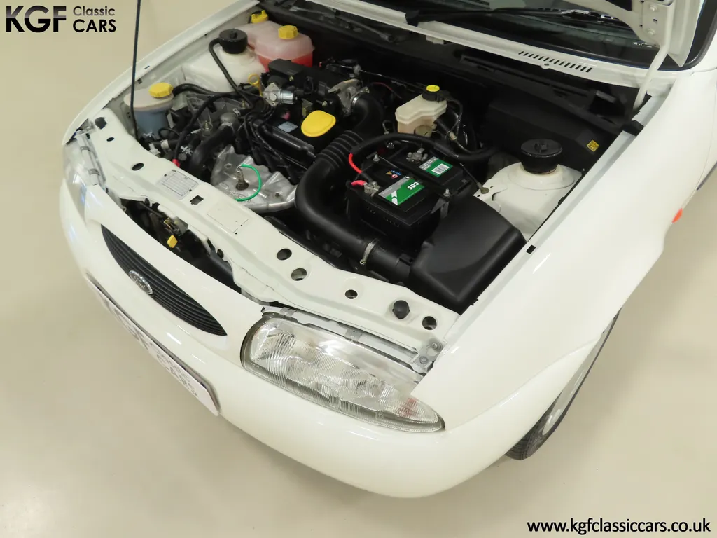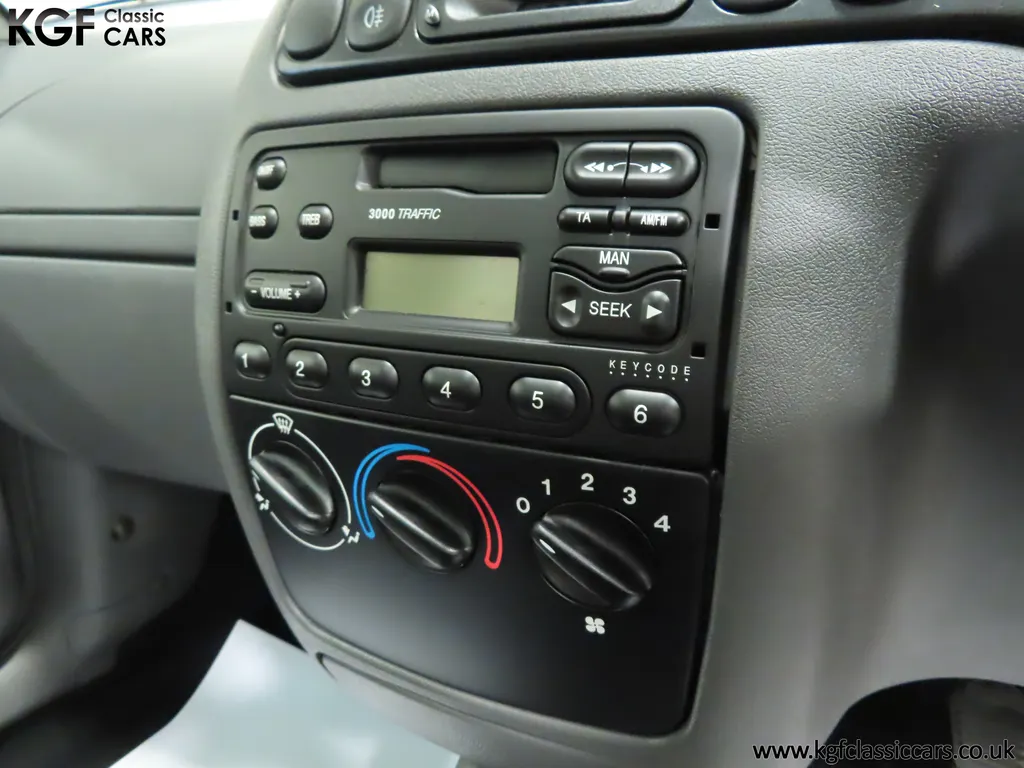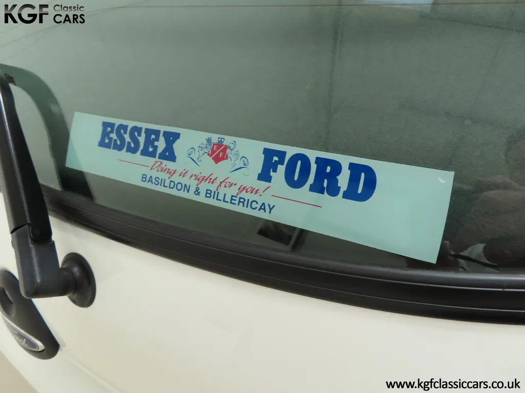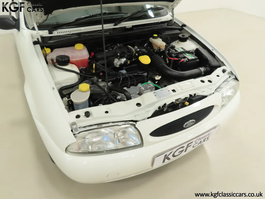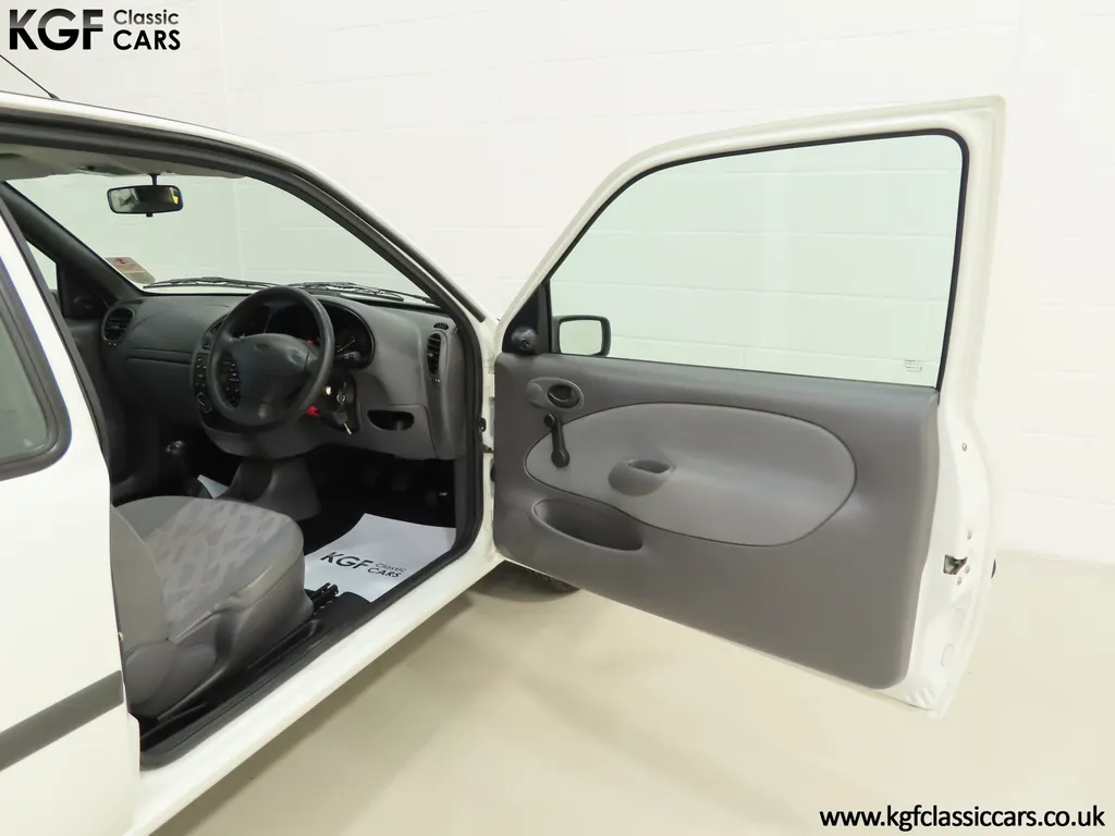 FOR SALE A time warp Ford Fiesta Mk4 Finesse with a miniscule 4,059 miles from new! EQUIPMENT Colour coded moulded bumpers, bodyside rubbing strip, sunroof, power assisted steering, front wipers with intermittent function, rear wash/wipe, halogen headlights, laminated windscreen, locking fuel filler, driver’s airbag, heated rear window, remote door mirrors, digital clock, centre console, 4-speed heating and cooling fan, Ford self-seek Model 3000 Traffic stereo with cassette, courtesy light. EXTERIOR With an astonishing and genuine 4,059 miles from new, this delightful billy basic Finesse model embodies the original Fiesta ethos of simplistic low-cost motoring. In factory original Diamond White, (Code B X), the paintwork to all factory panels is incredible commensurate with the exceptionally low mileage. A small rub mark to the nearside rear bumper corner is barely noticeable. The trim sections are fully intact and supplying Ford dealer number plates, rear screen sticker and tax disc holder remain fitted! The underside is in perfect structural condition and even the fragile label to the rear beam and PDI markings remain. This is a real collector’s car and a worthy Festival Of The Unexceptional contender! INTERIOR An interior entirely reflective or a 4,059-mile car. The cabin space with Midnight Opal fabric trim, (Code 0 0), could be described as showroom fresh! Seats, door cards, headlining and carpets are spotless, and the controls and switchgear have bright clear symbols and fresh feel having been used no more than most new cars have in the first few months! All functions operate flawlessly including the Ford self-seek model 3000 Traffic stereo cassette player. The pristine boot area still has bright yellow jack location labels and a perfect parcel shelf. The new car smell has been retained, instantly familiar as a Ford and ready to transport you back to a Ford showroom in 1999! An astonishing example of an iconic Ford Fiesta with all your basic luxuries! ENGINE & TRANSMISSION The 1.3 litre four-cylinder Endura engine is renowned for its simplicity and durability if not blistering performance! With 60bhp and 103Nm of torque, a respectable top speed of 96mph and 0-60mph in 14.8 seconds is achieved. The absolutely pristine engine bay has original plates, fragile paper stickers/labels, PDI dabs and factory panel stampings clearly visible. The 5-speed gearbox is light and precise, and the 5th gear offers much more relaxed motorway cruising than previous generations of base model Fiesta. WHEELS, TYRES & BRAKES The factory steel wheels wear the original 13in full wheel covers which are as new with no damage whatsoever. The originality seeking collector with be pleased to see factory fitted Pirelli 3000 165/70 R13 tyres all-round which should be renewed if the car is to be put into regular use. The immaculate underslung spare wheel wears the virgin spare tyre which even has the colour banding and rubber nobbles intact. The servo-assisted diagonally split brakes with discs up front and drums at the rear are fully up to date in terms of maintenance and perform well. HISTORY FILE Registered new on the 29th June 1999 by Essex Ford in Basildon, this exceptional example was purchased by Mr Eva who owned the car until 2022 at which time ownership passed to his Nephew. The car has covered a genuine 4,059 miles from new with just two family owners. The vehicle sales invoice is made out to Mr Eva illustrating a price paid of £8,200 less part exchange allowance for his 1987 Citron BX. The history file has the point-of-sale documentation as well as MOT and service records including the most recent service in October 2025 carried out using genuine Ford parts. The original Essex Ford document pack holds the service pack and all handbooks. There are two Ford keys, a Fiesta Finesse brochure and a Fiesta accessories brochure. The ideal entry to modern classic car ownership with this pristine and preserved Fiesta Finesse! MOT July 2026, HPI Clear.