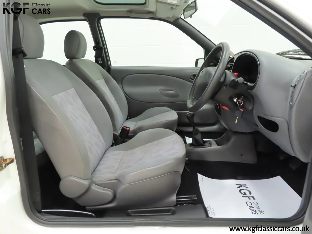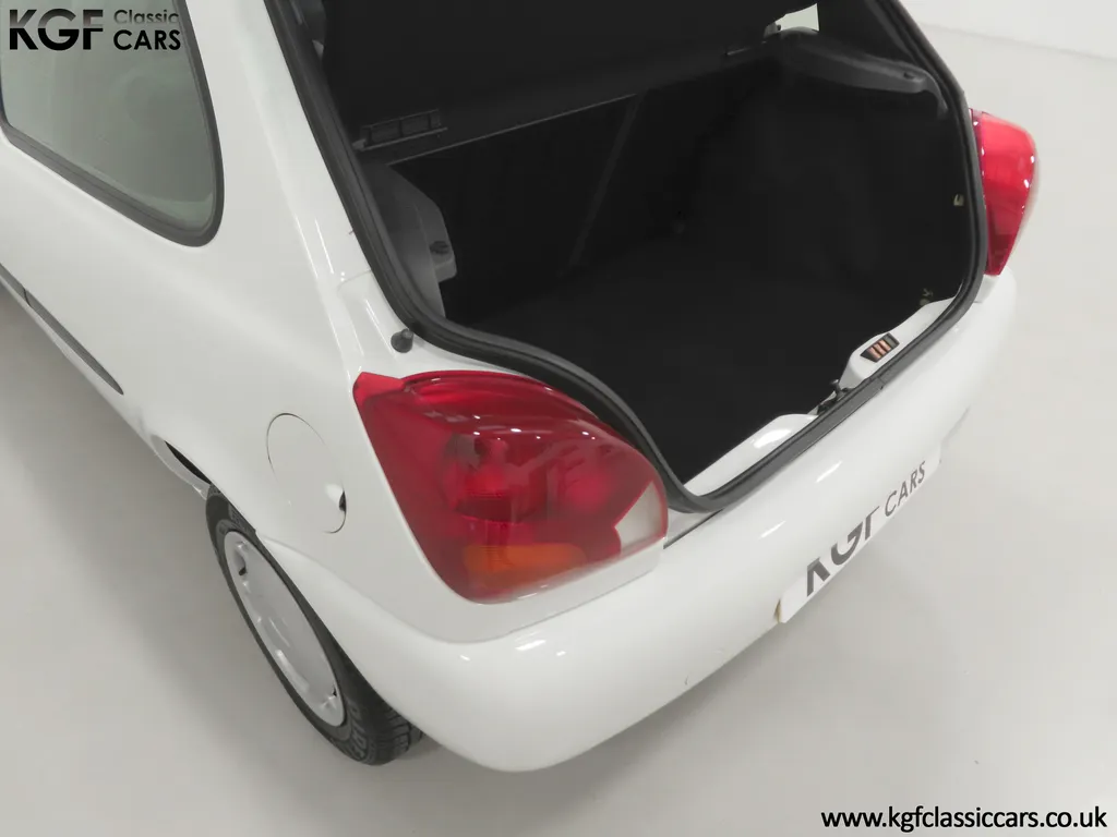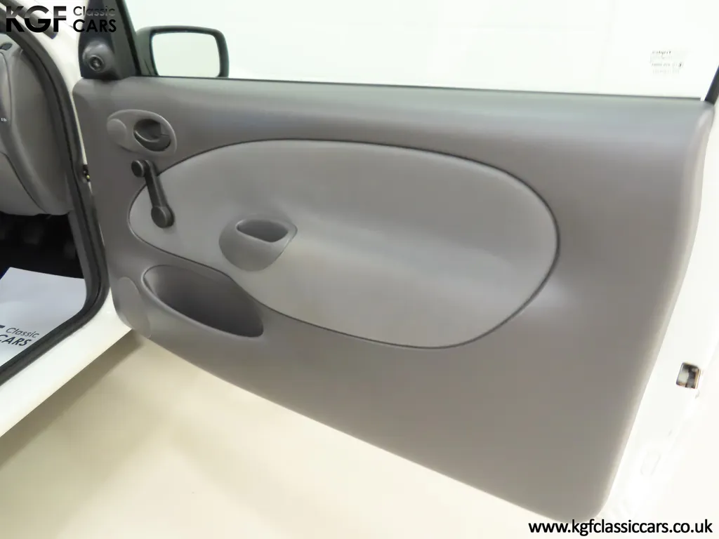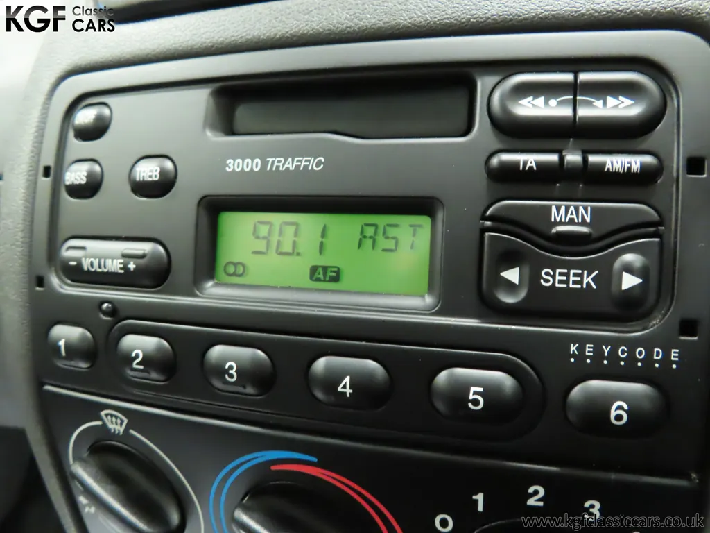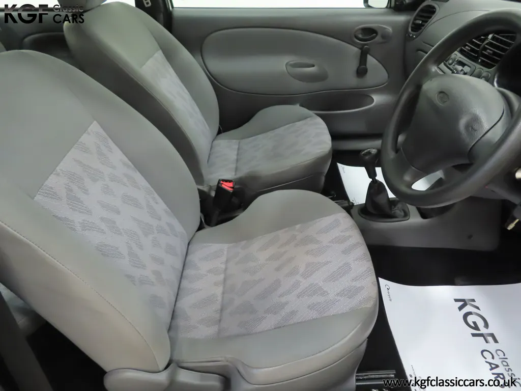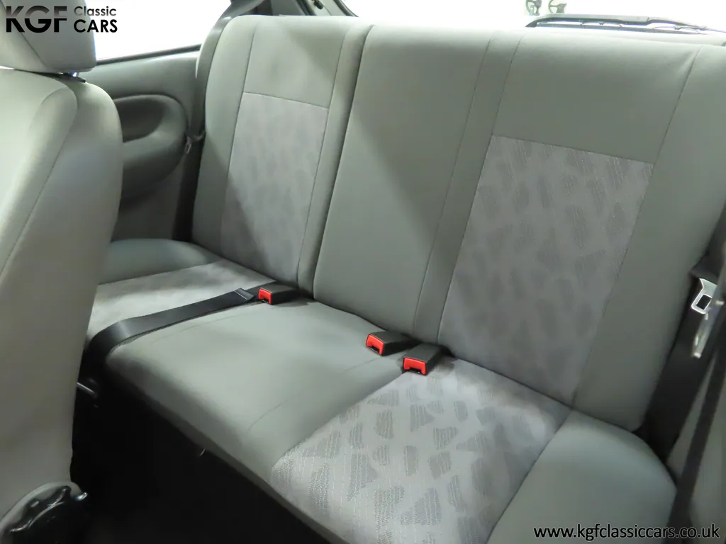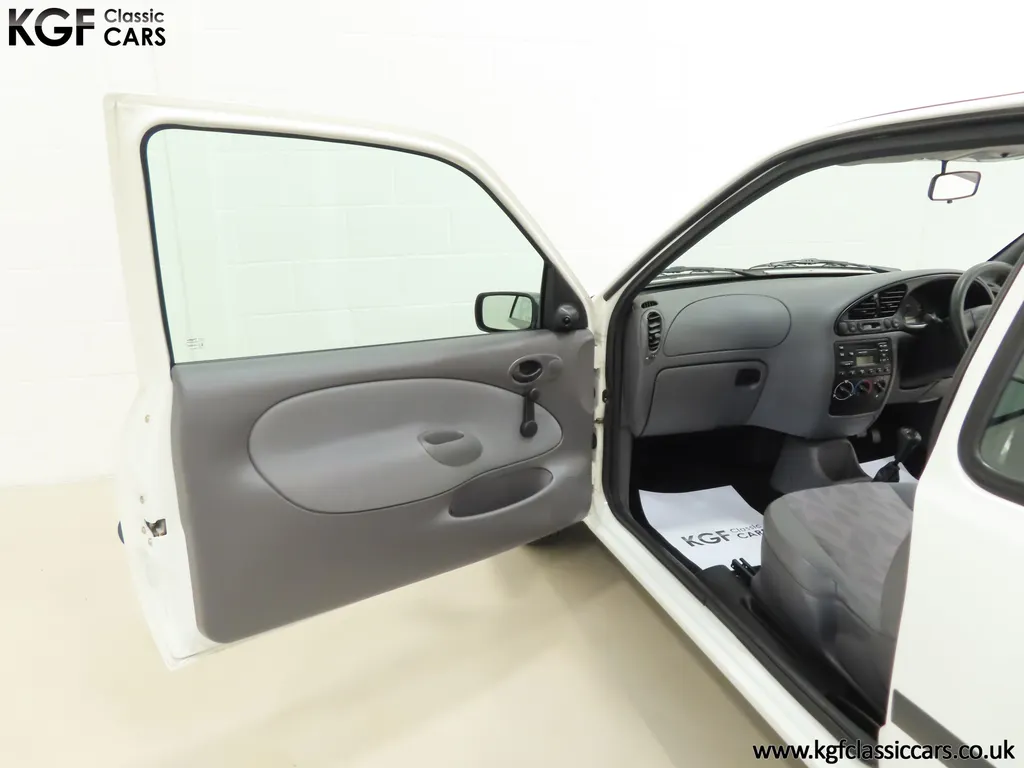 FOR SALE A time warp Ford Fiesta Mk4 Finesse with a miniscule 4,059 miles from new! EQUIPMENT Colour coded moulded bumpers, bodyside rubbing strip, sunroof, power assisted steering, front wipers with intermittent function, rear wash/wipe, halogen headlights, laminated windscreen, locking fuel filler, driver’s airbag, heated rear window, remote door mirrors, digital clock, centre console, 4-speed heating and cooling fan, Ford self-seek Model 3000 Traffic stereo with cassette, courtesy light. EXTERIOR With an astonishing and genuine 4,059 miles from new, this delightful billy basic Finesse model embodies the original Fiesta ethos of simplistic low-cost motoring. In factory original Diamond White, (Code B X), the paintwork to all factory panels is incredible commensurate with the exceptionally low mileage. A small rub mark to the nearside rear bumper corner is barely noticeable. The trim sections are fully intact and supplying Ford dealer number plates, rear screen sticker and tax disc holder remain fitted! The underside is in perfect structural condition and even the fragile label to the rear beam and PDI markings remain. This is a real collector’s car and a worthy Festival Of The Unexceptional contender! INTERIOR An interior entirely reflective or a 4,059-mile car. The cabin space with Midnight Opal fabric trim, (Code 0 0), could be described as showroom fresh! Seats, door cards, headlining and carpets are spotless, and the controls and switchgear have bright clear symbols and fresh feel having been used no more than most new cars have in the first few months! All functions operate flawlessly including the Ford self-seek model 3000 Traffic stereo cassette player. The pristine boot area still has bright yellow jack location labels and a perfect parcel shelf. The new car smell has been retained, instantly familiar as a Ford and ready to transport you back to a Ford showroom in 1999! An astonishing example of an iconic Ford Fiesta with all your basic luxuries! ENGINE & TRANSMISSION The 1.3 litre four-cylinder Endura engine is renowned for its simplicity and durability if not blistering performance! With 60bhp and 103Nm of torque, a respectable top speed of 96mph and 0-60mph in 14.8 seconds is achieved. The absolutely pristine engine bay has original plates, fragile paper stickers/labels, PDI dabs and factory panel stampings clearly visible. The 5-speed gearbox is light and precise, and the 5th gear offers much more relaxed motorway cruising than previous generations of base model Fiesta. WHEELS, TYRES & BRAKES The factory steel wheels wear the original 13in full wheel covers which are as new with no damage whatsoever. The originality seeking collector with be pleased to see factory fitted Pirelli 3000 165/70 R13 tyres all-round which should be renewed if the car is to be put into regular use. The immaculate underslung spare wheel wears the virgin spare tyre which even has the colour banding and rubber nobbles intact. The servo-assisted diagonally split brakes with discs up front and drums at the rear are fully up to date in terms of maintenance and perform well. HISTORY FILE Registered new on the 29th June 1999 by Essex Ford in Basildon, this exceptional example was purchased by Mr Eva who owned the car until 2022 at which time ownership passed to his Nephew. The car has covered a genuine 4,059 miles from new with just two family owners. The vehicle sales invoice is made out to Mr Eva illustrating a price paid of £8,200 less part exchange allowance for his 1987 Citron BX. The history file has the point-of-sale documentation as well as MOT and service records including the most recent service in October 2025 carried out using genuine Ford parts. The original Essex Ford document pack holds the service pack and all handbooks. There are two Ford keys, a Fiesta Finesse brochure and a Fiesta accessories brochure. The ideal entry to modern classic car ownership with this pristine and preserved Fiesta Finesse! MOT July 2026, HPI Clear.
