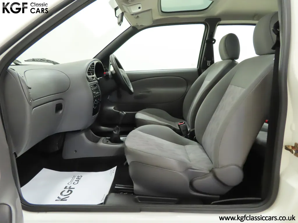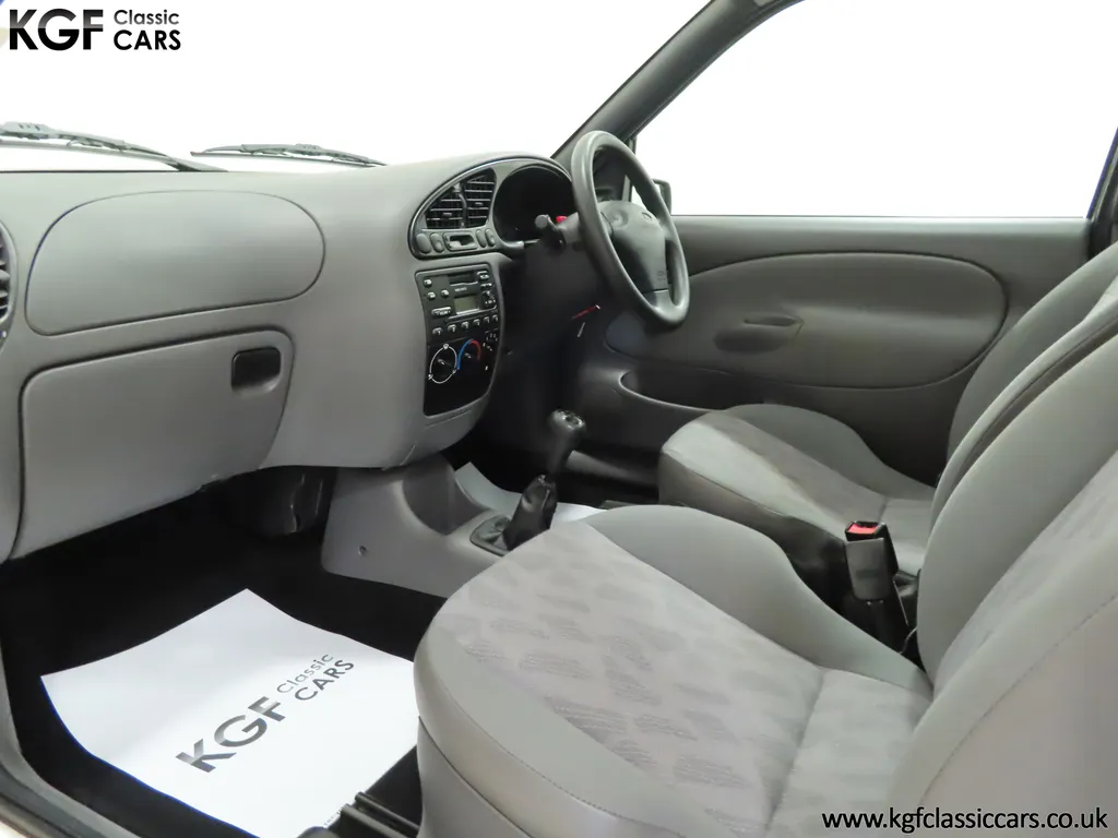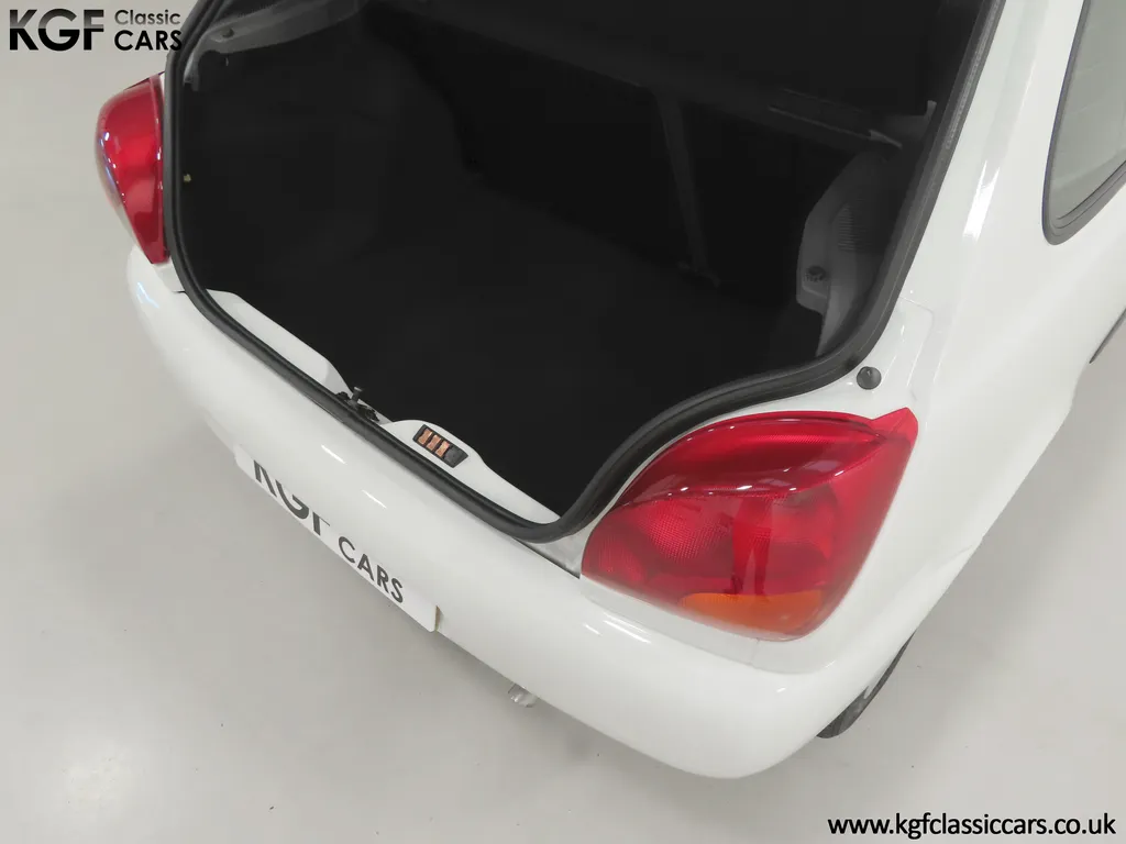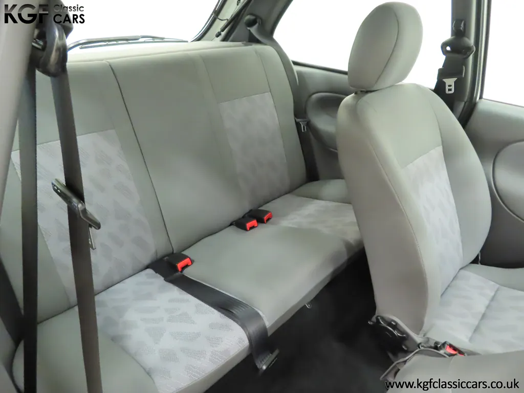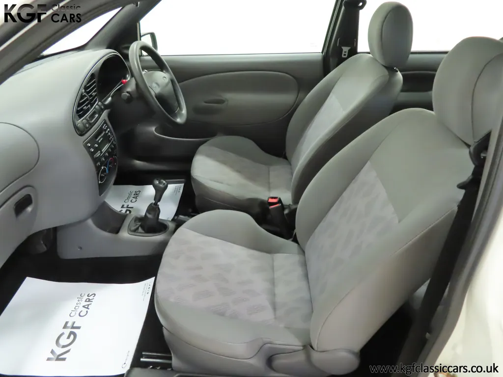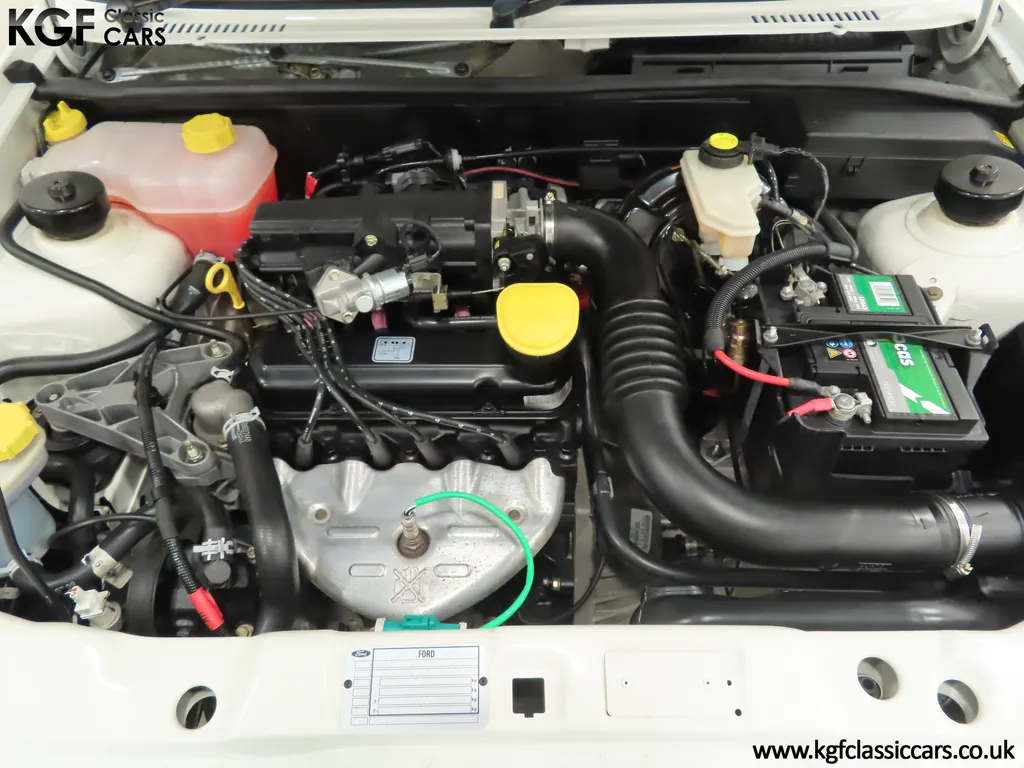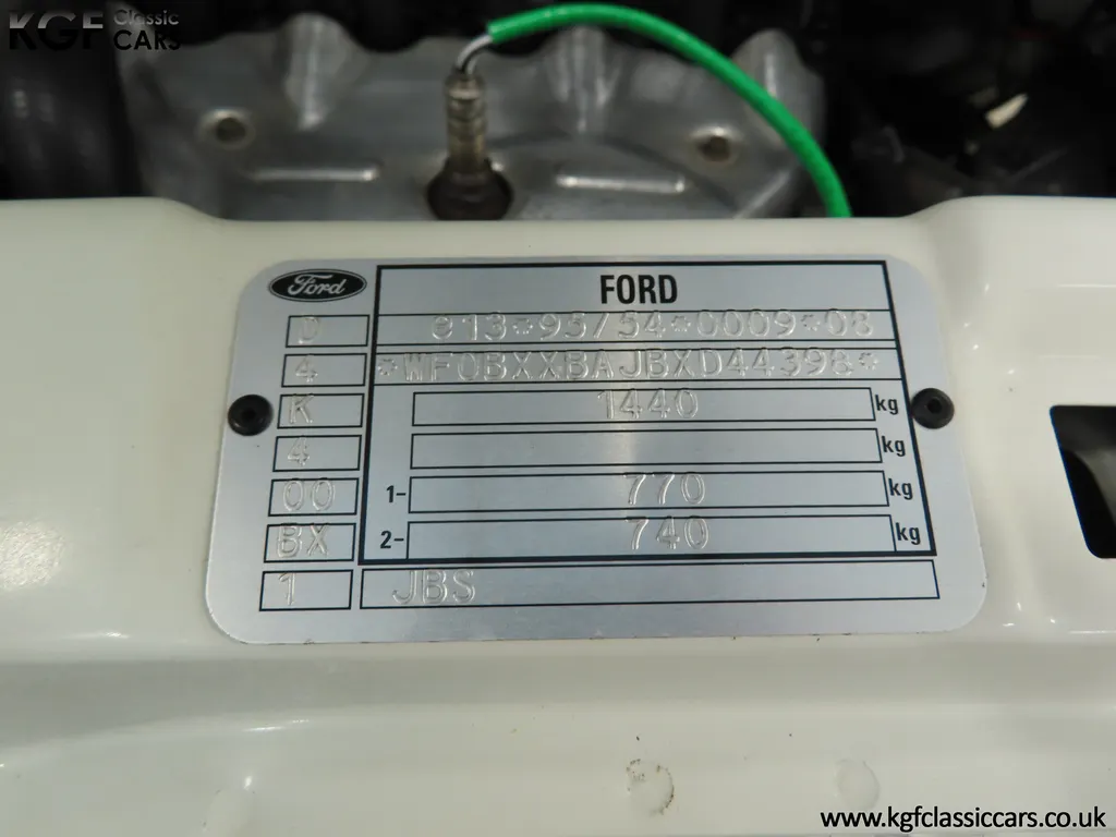 FOR SALE A time warp Ford Fiesta Mk4 Finesse with a miniscule 4,059 miles from new! EQUIPMENT Colour coded moulded bumpers, bodyside rubbing strip, sunroof, power assisted steering, front wipers with intermittent function, rear wash/wipe, halogen headlights, laminated windscreen, locking fuel filler, driver’s airbag, heated rear window, remote door mirrors, digital clock, centre console, 4-speed heating and cooling fan, Ford self-seek Model 3000 Traffic stereo with cassette, courtesy light. EXTERIOR With an astonishing and genuine 4,059 miles from new, this delightful billy basic Finesse model embodies the original Fiesta ethos of simplistic low-cost motoring. In factory original Diamond White, (Code B X), the paintwork to all factory panels is incredible commensurate with the exceptionally low mileage. A small rub mark to the nearside rear bumper corner is barely noticeable. The trim sections are fully intact and supplying Ford dealer number plates, rear screen sticker and tax disc holder remain fitted! The underside is in perfect structural condition and even the fragile label to the rear beam and PDI markings remain. This is a real collector’s car and a worthy Festival Of The Unexceptional contender! INTERIOR An interior entirely reflective or a 4,059-mile car. The cabin space with Midnight Opal fabric trim, (Code 0 0), could be described as showroom fresh! Seats, door cards, headlining and carpets are spotless, and the controls and switchgear have bright clear symbols and fresh feel having been used no more than most new cars have in the first few months! All functions operate flawlessly including the Ford self-seek model 3000 Traffic stereo cassette player. The pristine boot area still has bright yellow jack location labels and a perfect parcel shelf. The new car smell has been retained, instantly familiar as a Ford and ready to transport you back to a Ford showroom in 1999! An astonishing example of an iconic Ford Fiesta with all your basic luxuries! ENGINE & TRANSMISSION The 1.3 litre four-cylinder Endura engine is renowned for its simplicity and durability if not blistering performance! With 60bhp and 103Nm of torque, a respectable top speed of 96mph and 0-60mph in 14.8 seconds is achieved. The absolutely pristine engine bay has original plates, fragile paper stickers/labels, PDI dabs and factory panel stampings clearly visible. The 5-speed gearbox is light and precise, and the 5th gear offers much more relaxed motorway cruising than previous generations of base model Fiesta. WHEELS, TYRES & BRAKES The factory steel wheels wear the original 13in full wheel covers which are as new with no damage whatsoever. The originality seeking collector with be pleased to see factory fitted Pirelli 3000 165/70 R13 tyres all-round which should be renewed if the car is to be put into regular use. The immaculate underslung spare wheel wears the virgin spare tyre which even has the colour banding and rubber nobbles intact. The servo-assisted diagonally split brakes with discs up front and drums at the rear are fully up to date in terms of maintenance and perform well. HISTORY FILE Registered new on the 29th June 1999 by Essex Ford in Basildon, this exceptional example was purchased by Mr Eva who owned the car until 2022 at which time ownership passed to his Nephew. The car has covered a genuine 4,059 miles from new with just two family owners. The vehicle sales invoice is made out to Mr Eva illustrating a price paid of £8,200 less part exchange allowance for his 1987 Citron BX. The history file has the point-of-sale documentation as well as MOT and service records including the most recent service in October 2025 carried out using genuine Ford parts. The original Essex Ford document pack holds the service pack and all handbooks. There are two Ford keys, a Fiesta Finesse brochure and a Fiesta accessories brochure. The ideal entry to modern classic car ownership with this pristine and preserved Fiesta Finesse! MOT July 2026, HPI Clear.