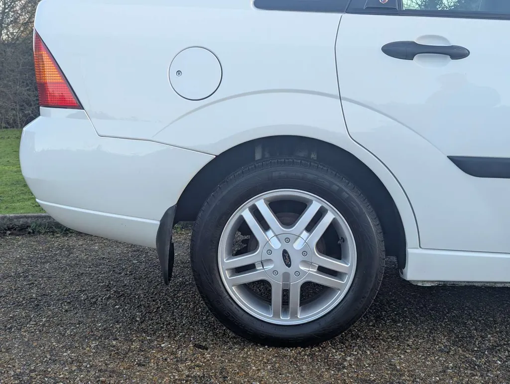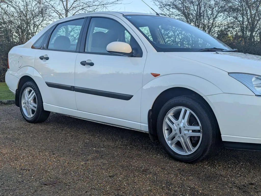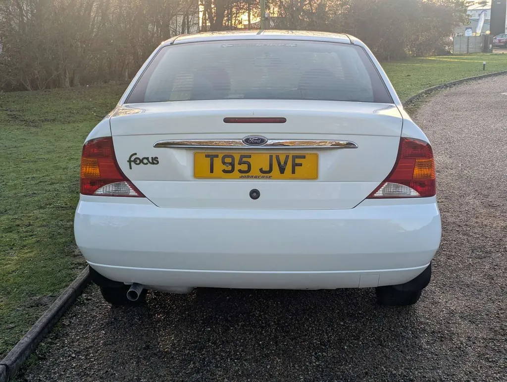 This well preserved Mk1 Ford Focus saloon is a high-spec Ghia example, finished in Diamond White, with a dark grey interior equipped with air conditioning, electric seats and heated screen. It has been owned by a grandfather and grandson from nearly new, and the V5C shows only 2 former keepers. The car was originally sold by John Grose Ford Centre in Kings Lynn, first registered on 31st March 1999. It is accompanied by a few recent MoTs, spare keys and original handbook pack, including service logbook. This contains 12 service stamps up to 58,913 miles in 2023, including a cambelt change at 32k miles in 2011. Today the odometer is showing 58,948 miles.We're told the Focus has had a recent service, and its only MoT advisory has been attended to. The MoT certificate is valid to 17th August 2026, and the vendor describes the car as "driving perfectly". Not specified