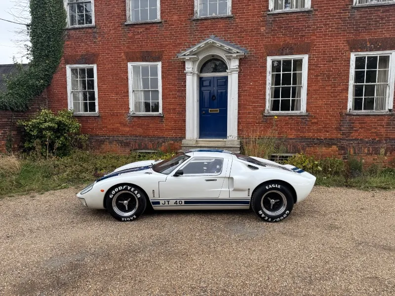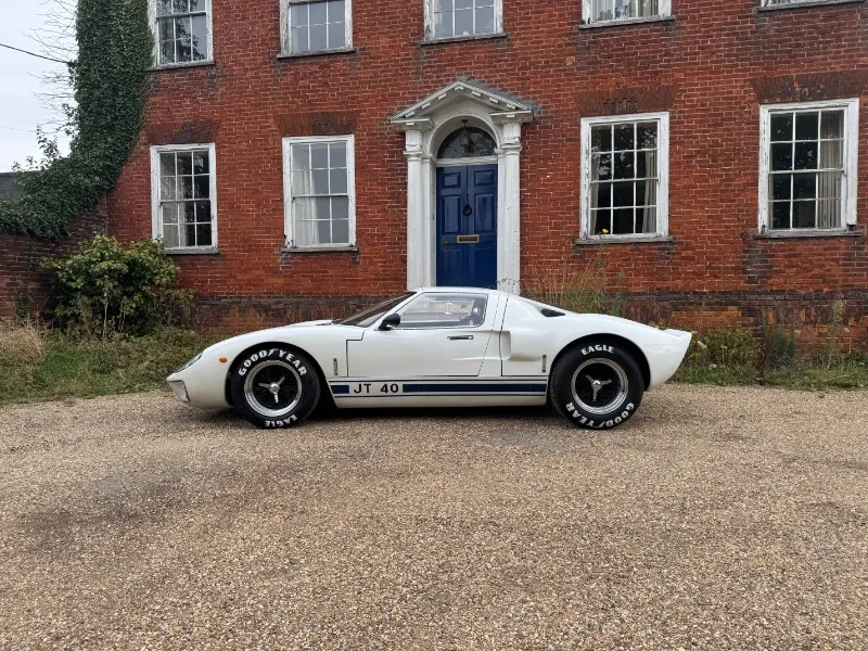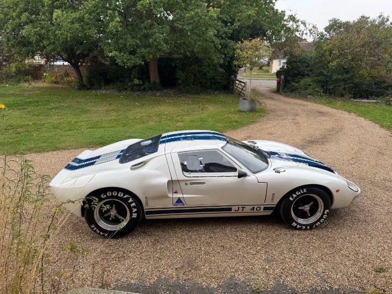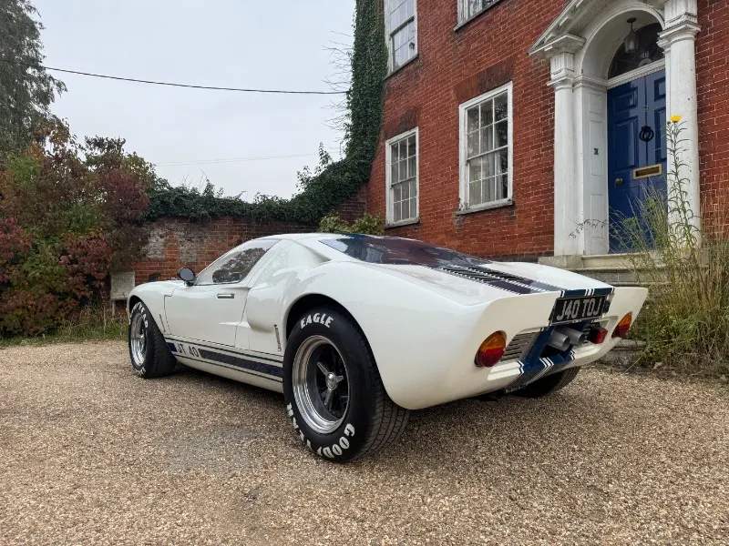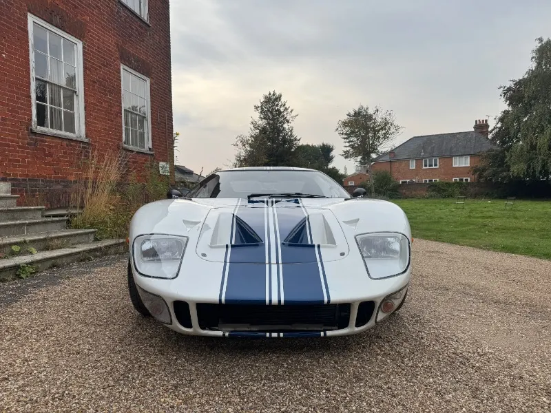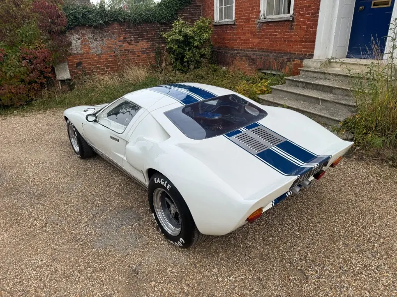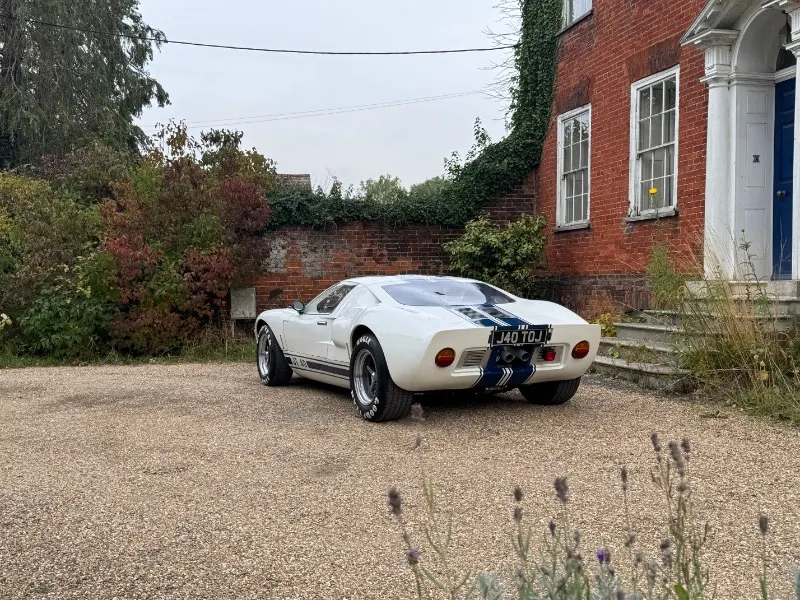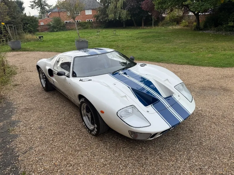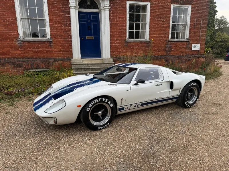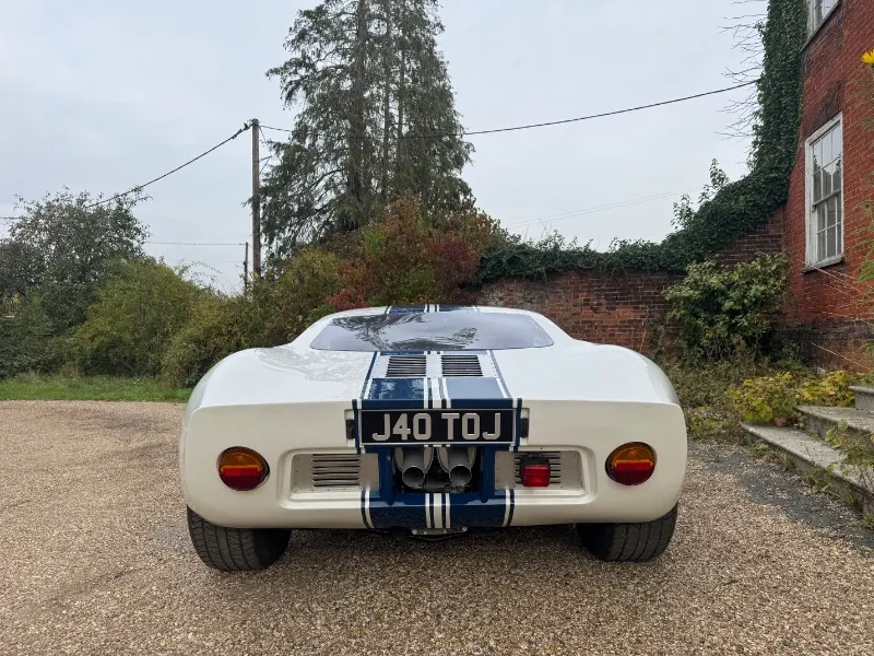 GT40 MK1 by Tojeiro This amazing and rare GT40 was correctly registered 19/05/1992 Only 5629 recorded miles John Tojeiro is famous as a engineer, chassis and race car designer, Involved in the design of the AC Ace chassis that became the AC / Shelby Cobra, and one of the first mid engined race car designs , the Tojeiro EE that lead the way for the Lola MK6 and after the GT40 In later years John worked alongside DAX cars designing the famous DAX Tojeiro Cobra chassis and a GT40 Chassis This is one of only a very small number of Tojeiro GT40s that were built. And this one was built, tweaked and modified by John Tojiero himself . Th unique design allows for more space for the taller driver. Finished in classic white with blue stripes Detailed with twin aluminium fuel fillers, Aluminium grills, Period lights, Race mirrors etc 15” Hallibrand alloy wheels with black inserts and Faux aluminium spinners Classic black GT40 style seats with black carpets, Alcantara dashboard with classic instruments and switches, Moto-lita steering wheel, Willans Harness seat belts, Battery cut off switch, Immobiliser, etc Air conditioning ! Right Hand gear change Twin fuel tanks with twin fuel pumps Powered by a Ford 5000cc 302ci V8, Spec includes Edelbrock air filter with performance element, Holley 4 barrel carburettor, Edelbrcok performance inlet manifold, Edelbrock rocker covers, Morosso winged sump, Alloy header tank etc Bundle of snakes crossover tubular exhaust system . Recent engine rebuild and upgrades Rolling road set up by Knight Racing Uprated UN1 Gear box with Quaif LSD and High ratio 5th gear Black powder coated Tojiero Chassis Coil over shock adjustable suspension Upgraded Disc brakes with Wildwood front calibers and drilled discs Huge history files with all receipts and invoices, MOT history , Upgrade receipts for over £28000gbp , Photo build pictures including pictures of John Tojeiro working on this car etc This GT40 is a rare piece of Motoring history with stunning looks and performance and more space for a taller driver. £74995