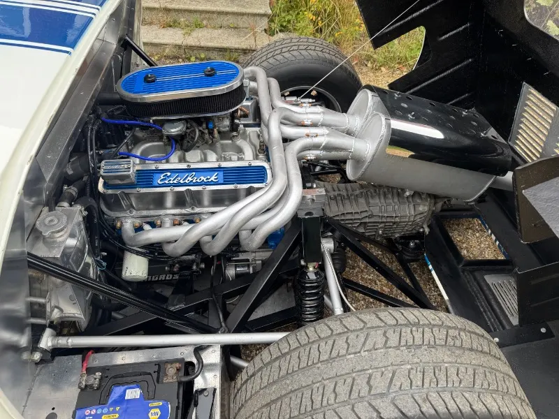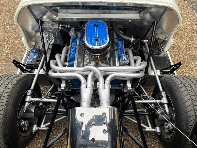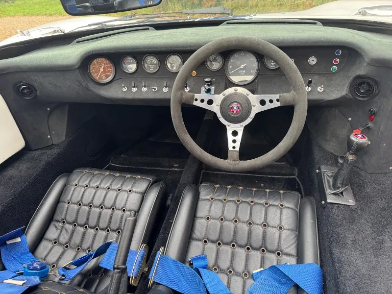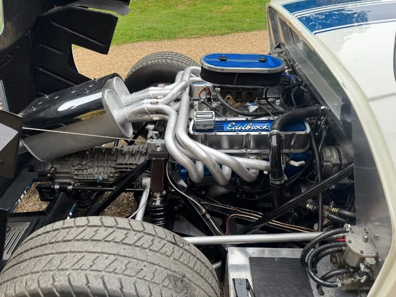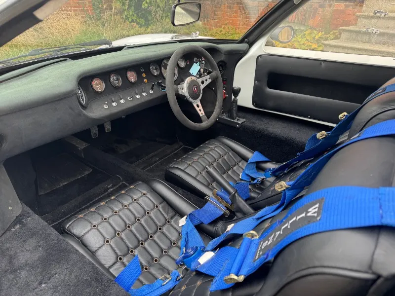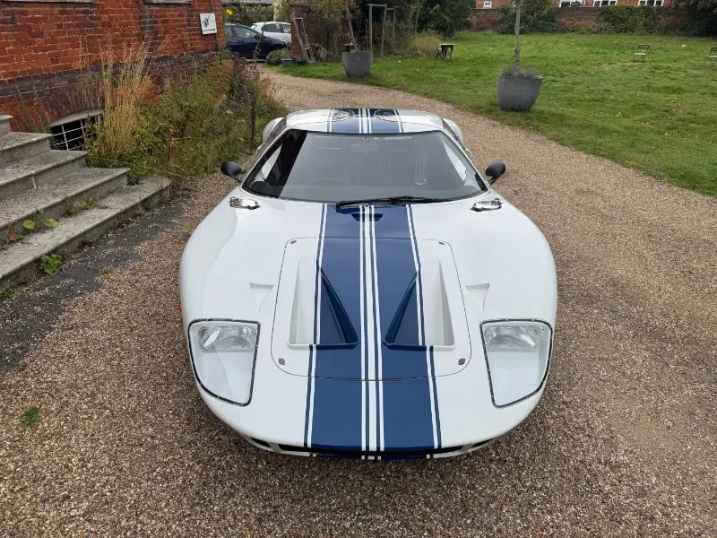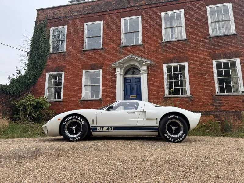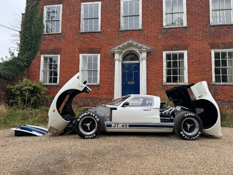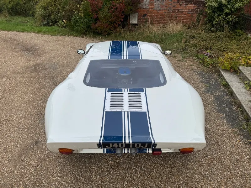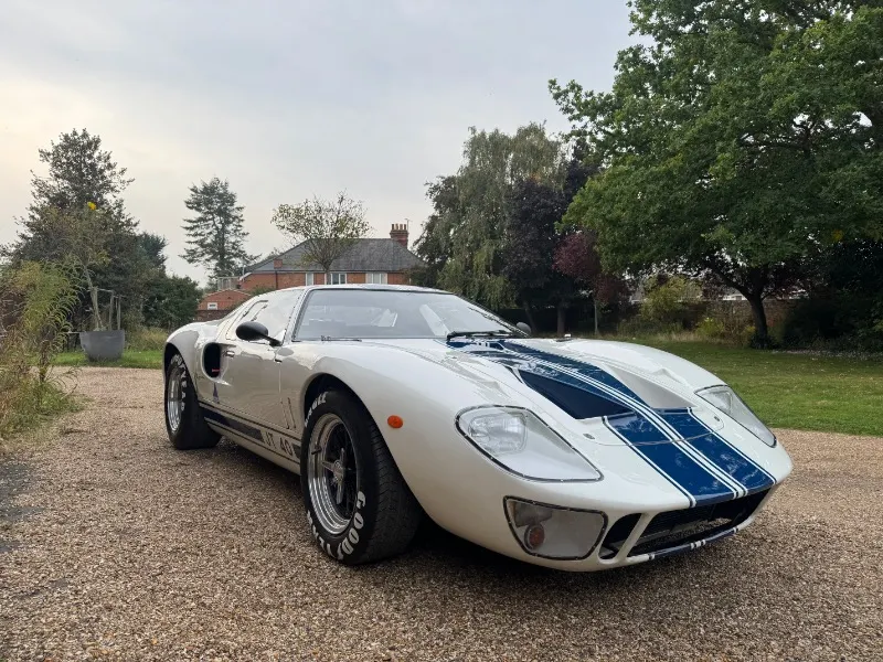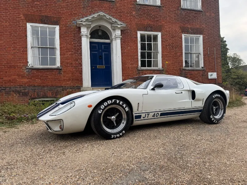 GT40 MK1 by Tojeiro This amazing and rare GT40 was correctly registered 19/05/1992 Only 5629 recorded miles John Tojeiro is famous as a engineer, chassis and race car designer, Involved in the design of the AC Ace chassis that became the AC / Shelby Cobra, and one of the first mid engined race car designs , the Tojeiro EE that lead the way for the Lola MK6 and after the GT40 In later years John worked alongside DAX cars designing the famous DAX Tojeiro Cobra chassis and a GT40 Chassis This is one of only a very small number of Tojeiro GT40s that were built. And this one was built, tweaked and modified by John Tojiero himself . Th unique design allows for more space for the taller driver. Finished in classic white with blue stripes Detailed with twin aluminium fuel fillers, Aluminium grills, Period lights, Race mirrors etc 15” Hallibrand alloy wheels with black inserts and Faux aluminium spinners Classic black GT40 style seats with black carpets, Alcantara dashboard with classic instruments and switches, Moto-lita steering wheel, Willans Harness seat belts, Battery cut off switch, Immobiliser, etc Air conditioning ! Right Hand gear change Twin fuel tanks with twin fuel pumps Powered by a Ford 5000cc 302ci V8, Spec includes Edelbrock air filter with performance element, Holley 4 barrel carburettor, Edelbrcok performance inlet manifold, Edelbrock rocker covers, Morosso winged sump, Alloy header tank etc Bundle of snakes crossover tubular exhaust system . Recent engine rebuild and upgrades Rolling road set up by Knight Racing Uprated UN1 Gear box with Quaif LSD and High ratio 5th gear Black powder coated Tojiero Chassis Coil over shock adjustable suspension Upgraded Disc brakes with Wildwood front calibers and drilled discs Huge history files with all receipts and invoices, MOT history , Upgrade receipts for over £28000gbp , Photo build pictures including pictures of John Tojeiro working on this car etc This GT40 is a rare piece of Motoring history with stunning looks and performance and more space for a taller driver. £74995