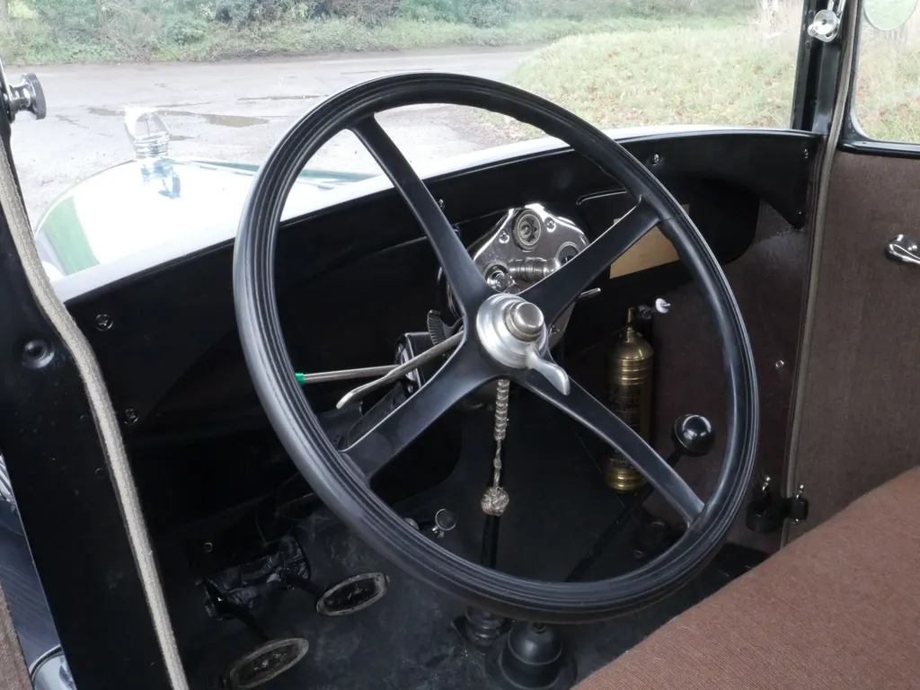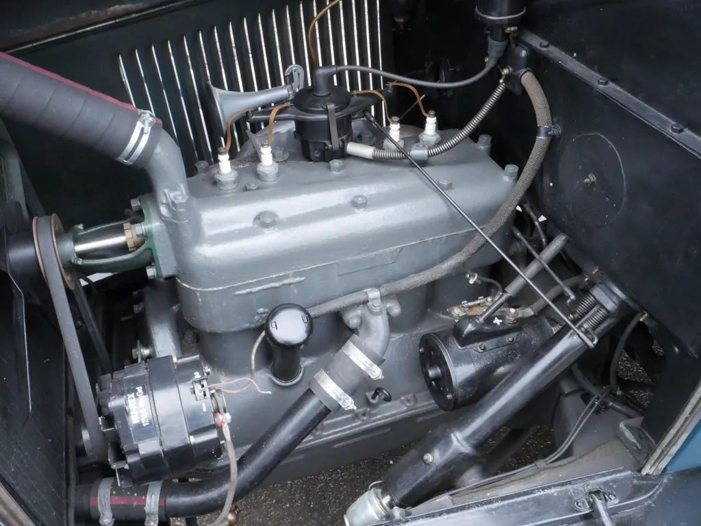 Lovely in blue and black, excellent body, paint and chrome, very tidy engine bay, lovely refurbished cloth interior, rubber floor mat, starts easily, stops and drives very well. Was imported from the US in 2017 where it belonged to the ex-resident of the AACA (Antique Automobile Club of America), restored in USA including engine re-build, radiator, hoses and battery all look newish, good tyres, flashing indicators, recent ignition components and rebuilt petrol gauge. Seen service with a film hire company, comes with V5, Instruction Book, wiring diagram, vintage petrol can, brass fire extinguisher and a few tools. Great fun.