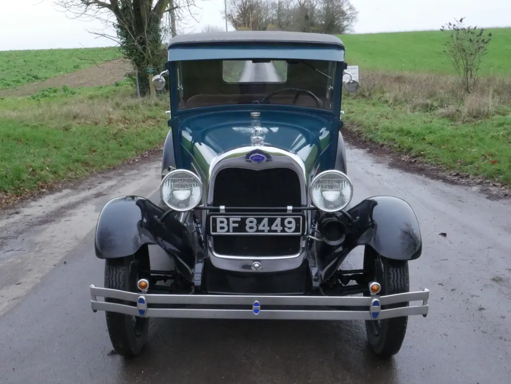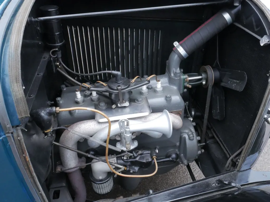 Lovely in blue and black, excellent body, paint and chrome, very tidy engine bay, lovely refurbished cloth interior, rubber floor mat, starts easily, stops and drives very well. Was imported from the US in 2017 where it belonged to the ex-resident of the AACA (Antique Automobile Club of America), restored in USA including engine re-build, radiator, hoses and battery all look newish, good tyres, flashing indicators, recent ignition components and rebuilt petrol gauge. Seen service with a film hire company, comes with V5, Instruction Book, wiring diagram, vintage petrol can, brass fire extinguisher and a few tools. Great fun.