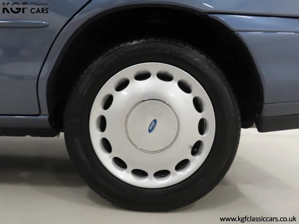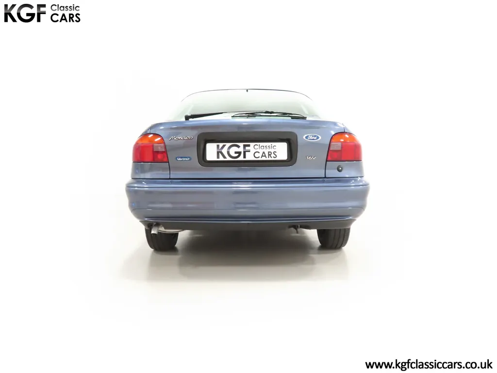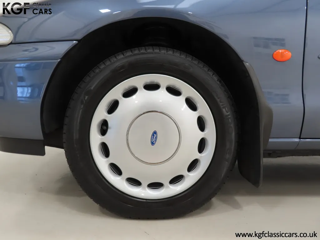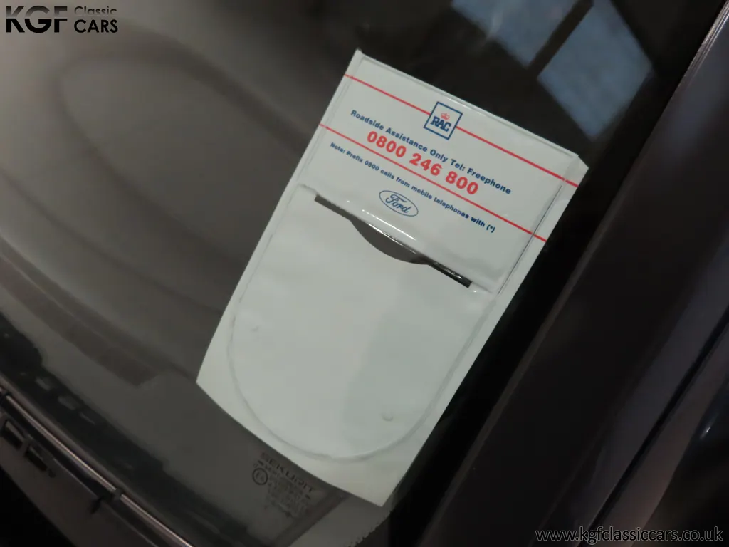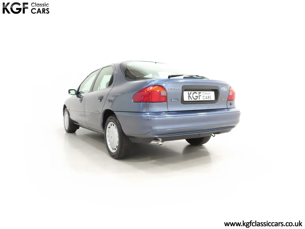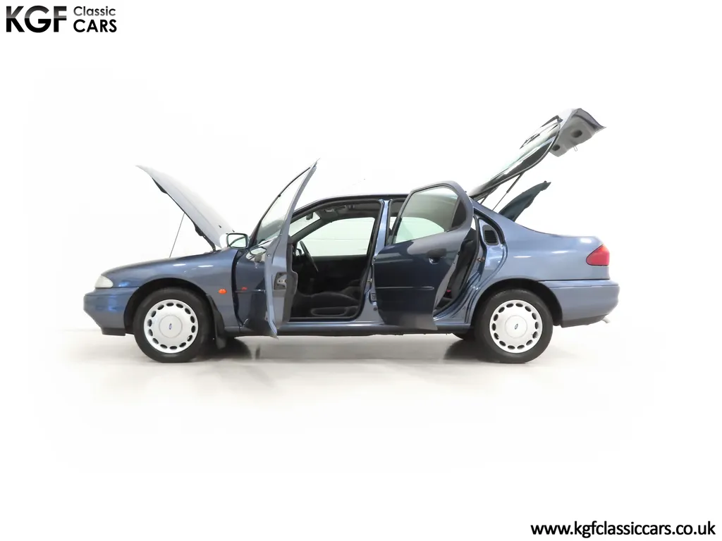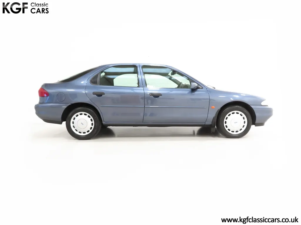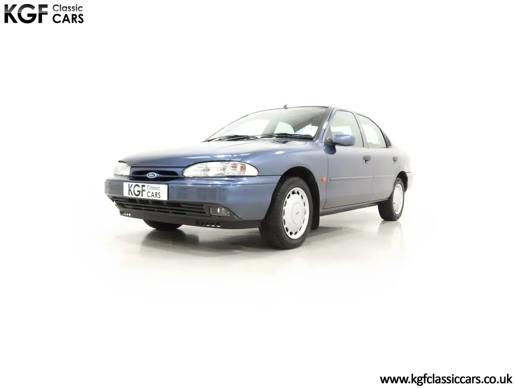 FOR SALE An outstanding Ford Mondeo Mk1 Verona with 27,486 miles and two owners. EQUIPMENT Special Mistral Blue metallic paintwork, unique wheel covers, bodyside mouldings, rear license plate appliqué, halogen headlamps, front and rear fog lamps, reinforced steel safety cage, power steering, driver’s airbag, side impact door beams, front seat belt grabbers, perimeter alarm and safeguard immobiliser, remote central double locking, tinted glass, heated rear window, electric front windows, electrically operated and heated door mirrors, illuminated interior door handles, driver’s seat height adjust, tailgate and fuel flap remote release, courtesy and luggage compartment lighting, tilt/slide sunroof. Factory Options: ‘Quickclear’ heated front screen with heated washer jets. Dealer Options: Supplying dealership branded carpet mats, Protection Pack. Accessories: Blaupunkt Frankfurt RCM DAB retro stereo with Bluetooth phone and audio streaming. (The original Ford Model 2006 Keycode RDS stereo cassette has been retained). EXTERIOR Launched in Europe in 1992 by The Ford Motor Company, the first-generation Mondeo was once a very common sight on UK roads, and with this late Verona Special Edition model fast approaching 30 years old, modern classic status is affirmed. This two owner car has covered a fully verified 27,486 miles from new and boasts total originality and outstanding condition. The factory applied Mistral Blue paintwork, (Code 8 4), is virtually flawless and even close scrutiny fails to reveal any imperfections worthy of mention. All trim, plastics, rubbers and badges are pristine and the underside is factory original with perfect structural integrity. Further wonderful originality is found in the supplying Ford dealer number plates, rear screen sticker and even period Radio station stickers that are brilliantly 90’s and very retro! Astonishing both in condition and complete originality, an absolute credit to its two owners. INTERIOR The interior of this cossetted example is simply perfect. The original Triangles velour fabric Raven upholstery to the sporty wing-back seats, (Code SH), is spotless with no wear or damage to the material whatsoever. The cut pile carpets are pristine having been protected by two sets of floor mats, one being the original supplying dealership branded set. The headlining is perfect and touch points such as the steering wheel and gear knob show no noticable wear. The driver inclined fascia and incorporated switchgear is as new, and all functions operate seamlessly. The very expensive Blaupunkt Frankfurt stereo, a superb piece of kit, is professionally fitted with no alterations to the dashboard and the original Ford stereo has been kept should the new owner wish to reinstall. An enormously comfortable interior and every inch representative of a 1996 showroom example, truly exceptional. ENGINE & TRANSMISSION The 1.8i DOHC 16v engine produces a power output of 115bhp and 158Nm of torque allowing a top speed of 121mph and 0-60mph in 10.5 seconds. The pristine engine bay features all factory stickers, plates, panel stamps, PDI markings and even fragile paper labels fully intact. Fastidiously maintained from new and having covered such low mileage, the car performs beautifully and is a joy to drive. The five-speed gearbox is perfect. WHEELS, TYRES & BRAKES The original and unique Verona model wheel trims remain fitted to the steel wheels and are in perfect condition. Replacement matching brand 195/60 R15 tyres have masses of tread, and the pristine boot area houses the unused spare and perfect plywood wheel cover disc. Diagonally split dual line brakes with servo assistance bring the car up straight and steady. HISTORY FILE Registered new on 4th October 1996 by Henlys Ford of Farnborough, this spectacular Special Edition Mondeo Verona has covered a warranted 27,486 miles from new with just two owners. The amazing history file begins with the new vehicle order form and subsequent sales invoice made out to first owner, Mr Page, whereby the purchase price was £12,793.93. All payment receipts and vehicle point of sale documents have been kept. Mr Page was a newly retired engineer, and as such, the Mondeo was a retirement gift from Mr and Mrs Page to themselves and a photograph outside their home with the car on handover day is a wonderful memento in the history file. A large file of service and maintenance invoices as well as all MOT certificates dating back to the first in 1999 is accompanied by a highly detailed maintenance log dating from when the car was new up to 2017. The log was kept as Mr Page, being a retired engineer, carried out much of the vehicle upkeep himself and wanted this to support the service history. The car was owned by Mr Page until September 2022 and there has been just one owner since. Mr Blake purchased the car for nostalgia reasons as his father owned Mondeo’s in the 1990’s and he and his father wanted to recreate journeys they took at the time. The fastidious upkeep has continued with the second owner who now has decided to sell the car with the upcoming birth of his first child and him feeling he will not have the time to give the car the care it deserves. Absolutely all servicing is fully up to date and since April 2025 alone, the car has had cambelt and water pump, gearbox oil, brake fluid, power steering fluid, new exhaust, brake overhaul and engine service. Completing the history file is the full book packs, four Ford keys including the red master and dealer fobs, and an original Mondeo Verona range sales brochure. KGF Classic Cars are privileged to offer this exceptional example that is a true credit to its two owners from new. MOT July 2026, HPI Clear.
