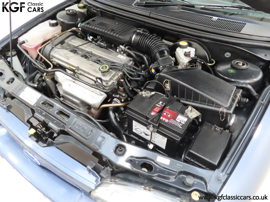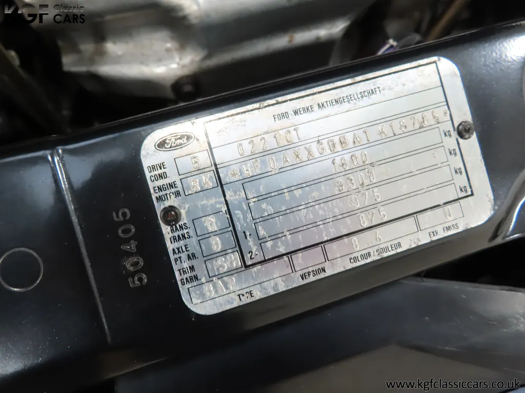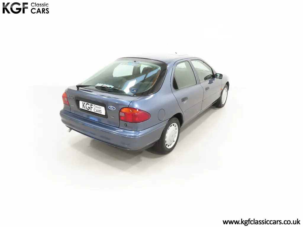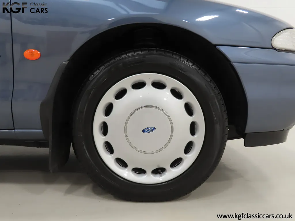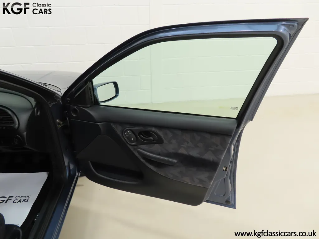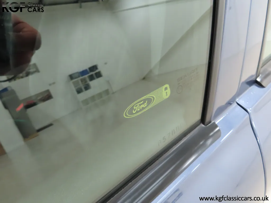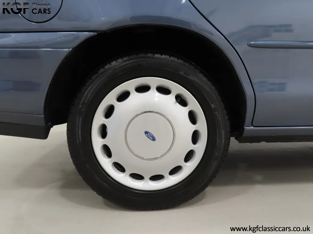 FOR SALE An outstanding Ford Mondeo Mk1 Verona with 27,486 miles and two owners. EQUIPMENT Special Mistral Blue metallic paintwork, unique wheel covers, bodyside mouldings, rear license plate appliqué, halogen headlamps, front and rear fog lamps, reinforced steel safety cage, power steering, driver’s airbag, side impact door beams, front seat belt grabbers, perimeter alarm and safeguard immobiliser, remote central double locking, tinted glass, heated rear window, electric front windows, electrically operated and heated door mirrors, illuminated interior door handles, driver’s seat height adjust, tailgate and fuel flap remote release, courtesy and luggage compartment lighting, tilt/slide sunroof. Factory Options: ‘Quickclear’ heated front screen with heated washer jets. Dealer Options: Supplying dealership branded carpet mats, Protection Pack. Accessories: Blaupunkt Frankfurt RCM DAB retro stereo with Bluetooth phone and audio streaming. (The original Ford Model 2006 Keycode RDS stereo cassette has been retained). EXTERIOR Launched in Europe in 1992 by The Ford Motor Company, the first-generation Mondeo was once a very common sight on UK roads, and with this late Verona Special Edition model fast approaching 30 years old, modern classic status is affirmed. This two owner car has covered a fully verified 27,486 miles from new and boasts total originality and outstanding condition. The factory applied Mistral Blue paintwork, (Code 8 4), is virtually flawless and even close scrutiny fails to reveal any imperfections worthy of mention. All trim, plastics, rubbers and badges are pristine and the underside is factory original with perfect structural integrity. Further wonderful originality is found in the supplying Ford dealer number plates, rear screen sticker and even period Radio station stickers that are brilliantly 90’s and very retro! Astonishing both in condition and complete originality, an absolute credit to its two owners. INTERIOR The interior of this cossetted example is simply perfect. The original Triangles velour fabric Raven upholstery to the sporty wing-back seats, (Code SH), is spotless with no wear or damage to the material whatsoever. The cut pile carpets are pristine having been protected by two sets of floor mats, one being the original supplying dealership branded set. The headlining is perfect and touch points such as the steering wheel and gear knob show no noticable wear. The driver inclined fascia and incorporated switchgear is as new, and all functions operate seamlessly. The very expensive Blaupunkt Frankfurt stereo, a superb piece of kit, is professionally fitted with no alterations to the dashboard and the original Ford stereo has been kept should the new owner wish to reinstall. An enormously comfortable interior and every inch representative of a 1996 showroom example, truly exceptional. ENGINE & TRANSMISSION The 1.8i DOHC 16v engine produces a power output of 115bhp and 158Nm of torque allowing a top speed of 121mph and 0-60mph in 10.5 seconds. The pristine engine bay features all factory stickers, plates, panel stamps, PDI markings and even fragile paper labels fully intact. Fastidiously maintained from new and having covered such low mileage, the car performs beautifully and is a joy to drive. The five-speed gearbox is perfect. WHEELS, TYRES & BRAKES The original and unique Verona model wheel trims remain fitted to the steel wheels and are in perfect condition. Replacement matching brand 195/60 R15 tyres have masses of tread, and the pristine boot area houses the unused spare and perfect plywood wheel cover disc. Diagonally split dual line brakes with servo assistance bring the car up straight and steady. HISTORY FILE Registered new on 4th October 1996 by Henlys Ford of Farnborough, this spectacular Special Edition Mondeo Verona has covered a warranted 27,486 miles from new with just two owners. The amazing history file begins with the new vehicle order form and subsequent sales invoice made out to first owner, Mr Page, whereby the purchase price was £12,793.93. All payment receipts and vehicle point of sale documents have been kept. Mr Page was a newly retired engineer, and as such, the Mondeo was a retirement gift from Mr and Mrs Page to themselves and a photograph outside their home with the car on handover day is a wonderful memento in the history file. A large file of service and maintenance invoices as well as all MOT certificates dating back to the first in 1999 is accompanied by a highly detailed maintenance log dating from when the car was new up to 2017. The log was kept as Mr Page, being a retired engineer, carried out much of the vehicle upkeep himself and wanted this to support the service history. The car was owned by Mr Page until September 2022 and there has been just one owner since. Mr Blake purchased the car for nostalgia reasons as his father owned Mondeo’s in the 1990’s and he and his father wanted to recreate journeys they took at the time. The fastidious upkeep has continued with the second owner who now has decided to sell the car with the upcoming birth of his first child and him feeling he will not have the time to give the car the care it deserves. Absolutely all servicing is fully up to date and since April 2025 alone, the car has had cambelt and water pump, gearbox oil, brake fluid, power steering fluid, new exhaust, brake overhaul and engine service. Completing the history file is the full book packs, four Ford keys including the red master and dealer fobs, and an original Mondeo Verona range sales brochure. KGF Classic Cars are privileged to offer this exceptional example that is a true credit to its two owners from new. MOT July 2026, HPI Clear.