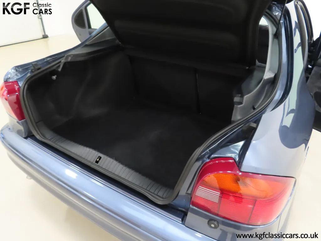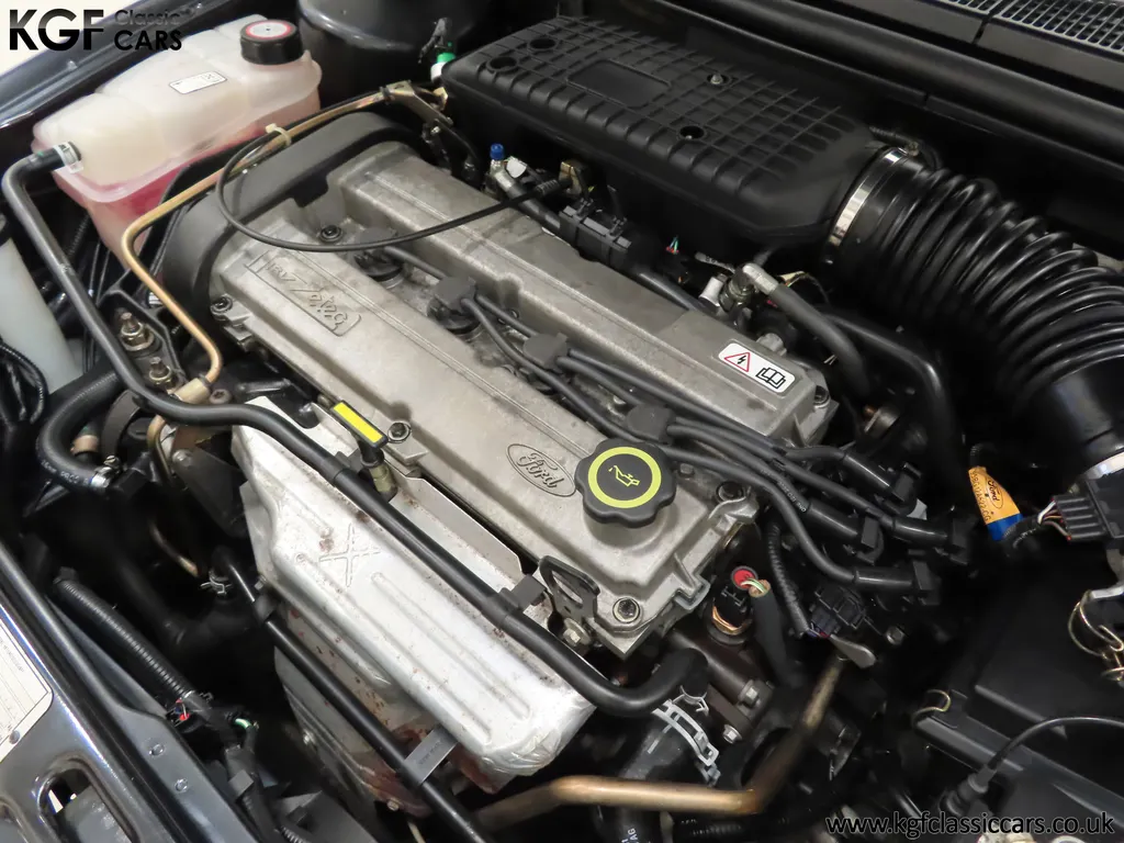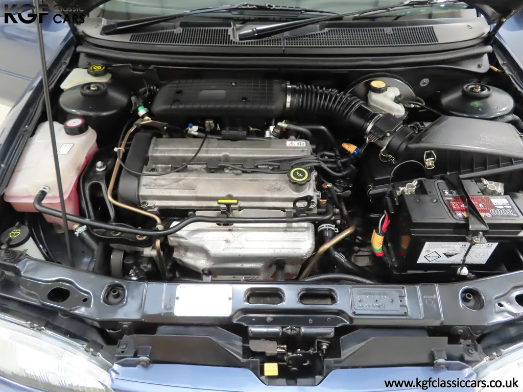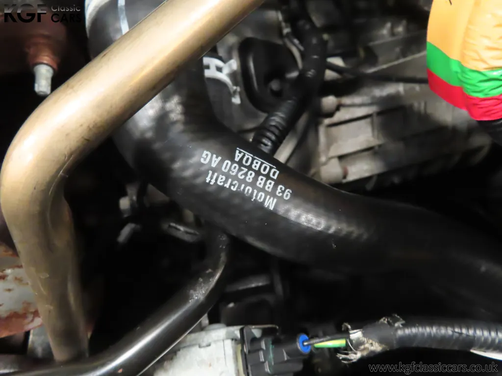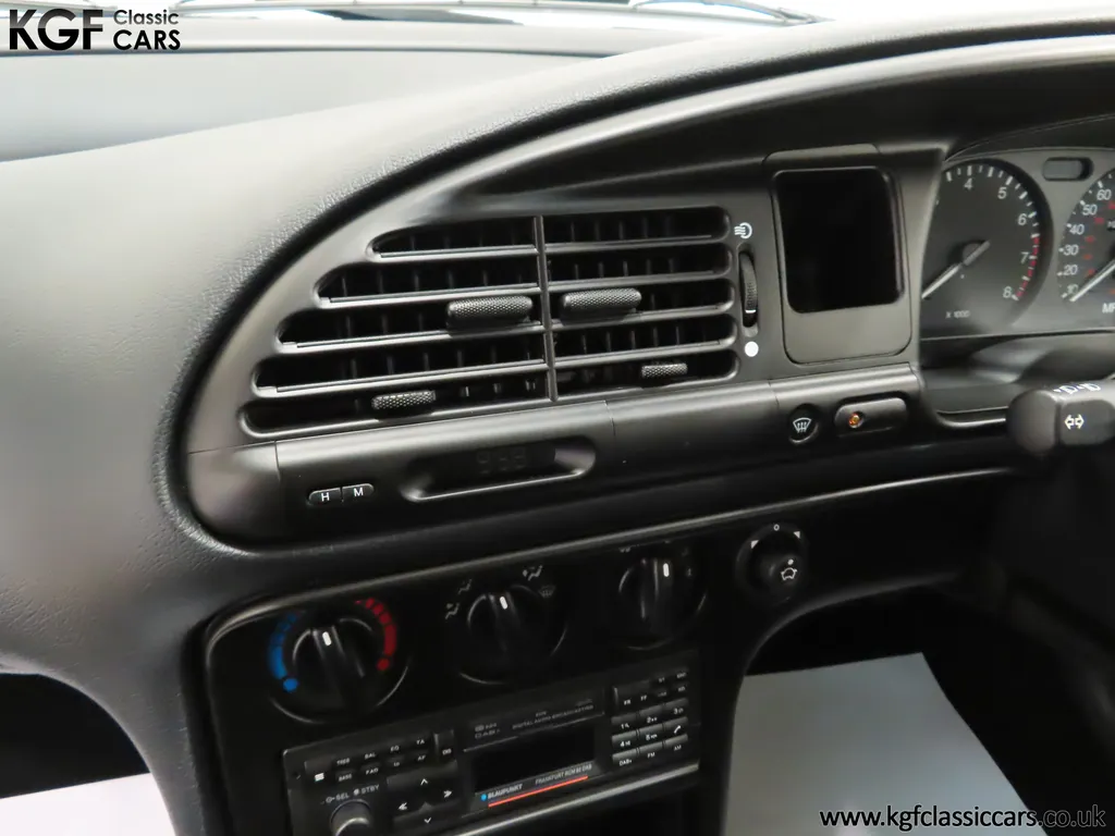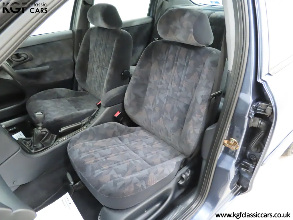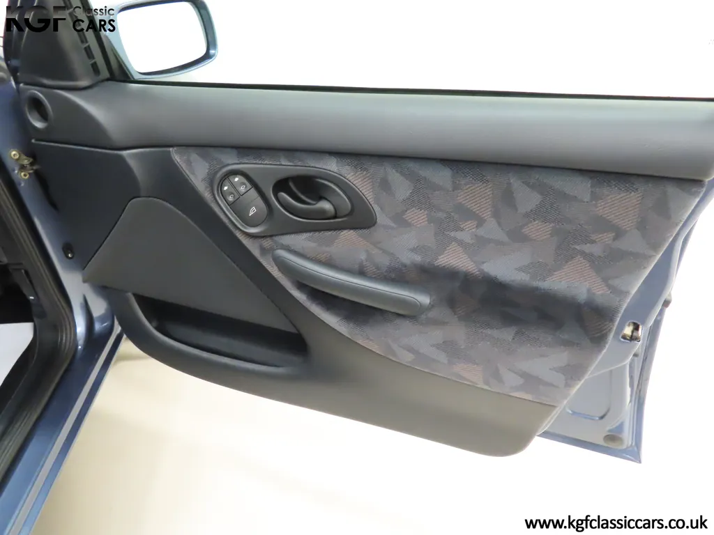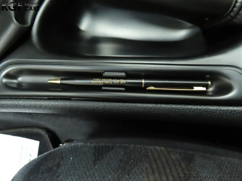 FOR SALE An outstanding Ford Mondeo Mk1 Verona with 27,486 miles and two owners. EQUIPMENT Special Mistral Blue metallic paintwork, unique wheel covers, bodyside mouldings, rear license plate appliqué, halogen headlamps, front and rear fog lamps, reinforced steel safety cage, power steering, driver’s airbag, side impact door beams, front seat belt grabbers, perimeter alarm and safeguard immobiliser, remote central double locking, tinted glass, heated rear window, electric front windows, electrically operated and heated door mirrors, illuminated interior door handles, driver’s seat height adjust, tailgate and fuel flap remote release, courtesy and luggage compartment lighting, tilt/slide sunroof. Factory Options: ‘Quickclear’ heated front screen with heated washer jets. Dealer Options: Supplying dealership branded carpet mats, Protection Pack. Accessories: Blaupunkt Frankfurt RCM DAB retro stereo with Bluetooth phone and audio streaming. (The original Ford Model 2006 Keycode RDS stereo cassette has been retained). EXTERIOR Launched in Europe in 1992 by The Ford Motor Company, the first-generation Mondeo was once a very common sight on UK roads, and with this late Verona Special Edition model fast approaching 30 years old, modern classic status is affirmed. This two owner car has covered a fully verified 27,486 miles from new and boasts total originality and outstanding condition. The factory applied Mistral Blue paintwork, (Code 8 4), is virtually flawless and even close scrutiny fails to reveal any imperfections worthy of mention. All trim, plastics, rubbers and badges are pristine and the underside is factory original with perfect structural integrity. Further wonderful originality is found in the supplying Ford dealer number plates, rear screen sticker and even period Radio station stickers that are brilliantly 90’s and very retro! Astonishing both in condition and complete originality, an absolute credit to its two owners. INTERIOR The interior of this cossetted example is simply perfect. The original Triangles velour fabric Raven upholstery to the sporty wing-back seats, (Code SH), is spotless with no wear or damage to the material whatsoever. The cut pile carpets are pristine having been protected by two sets of floor mats, one being the original supplying dealership branded set. The headlining is perfect and touch points such as the steering wheel and gear knob show no noticable wear. The driver inclined fascia and incorporated switchgear is as new, and all functions operate seamlessly. The very expensive Blaupunkt Frankfurt stereo, a superb piece of kit, is professionally fitted with no alterations to the dashboard and the original Ford stereo has been kept should the new owner wish to reinstall. An enormously comfortable interior and every inch representative of a 1996 showroom example, truly exceptional. ENGINE & TRANSMISSION The 1.8i DOHC 16v engine produces a power output of 115bhp and 158Nm of torque allowing a top speed of 121mph and 0-60mph in 10.5 seconds. The pristine engine bay features all factory stickers, plates, panel stamps, PDI markings and even fragile paper labels fully intact. Fastidiously maintained from new and having covered such low mileage, the car performs beautifully and is a joy to drive. The five-speed gearbox is perfect. WHEELS, TYRES & BRAKES The original and unique Verona model wheel trims remain fitted to the steel wheels and are in perfect condition. Replacement matching brand 195/60 R15 tyres have masses of tread, and the pristine boot area houses the unused spare and perfect plywood wheel cover disc. Diagonally split dual line brakes with servo assistance bring the car up straight and steady. HISTORY FILE Registered new on 4th October 1996 by Henlys Ford of Farnborough, this spectacular Special Edition Mondeo Verona has covered a warranted 27,486 miles from new with just two owners. The amazing history file begins with the new vehicle order form and subsequent sales invoice made out to first owner, Mr Page, whereby the purchase price was £12,793.93. All payment receipts and vehicle point of sale documents have been kept. Mr Page was a newly retired engineer, and as such, the Mondeo was a retirement gift from Mr and Mrs Page to themselves and a photograph outside their home with the car on handover day is a wonderful memento in the history file. A large file of service and maintenance invoices as well as all MOT certificates dating back to the first in 1999 is accompanied by a highly detailed maintenance log dating from when the car was new up to 2017. The log was kept as Mr Page, being a retired engineer, carried out much of the vehicle upkeep himself and wanted this to support the service history. The car was owned by Mr Page until September 2022 and there has been just one owner since. Mr Blake purchased the car for nostalgia reasons as his father owned Mondeo’s in the 1990’s and he and his father wanted to recreate journeys they took at the time. The fastidious upkeep has continued with the second owner who now has decided to sell the car with the upcoming birth of his first child and him feeling he will not have the time to give the car the care it deserves. Absolutely all servicing is fully up to date and since April 2025 alone, the car has had cambelt and water pump, gearbox oil, brake fluid, power steering fluid, new exhaust, brake overhaul and engine service. Completing the history file is the full book packs, four Ford keys including the red master and dealer fobs, and an original Mondeo Verona range sales brochure. KGF Classic Cars are privileged to offer this exceptional example that is a true credit to its two owners from new. MOT July 2026, HPI Clear.