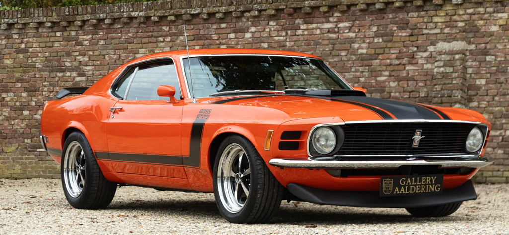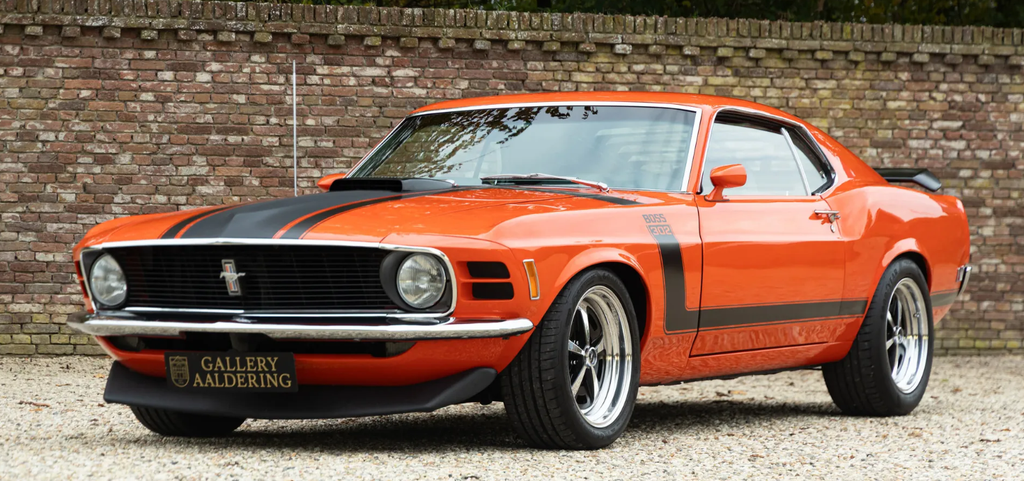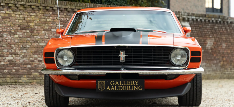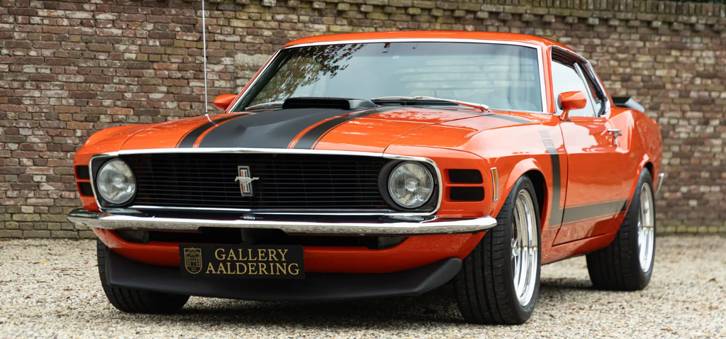 The Ford Mustang Boss 302 is one of the most popular Mustangs out there. The Boss trim was Ford’s way of competing against Chryslers and GM cars in the burgeoning muscle car market of the 1960s and 1970s. The Boss 302 was initially presented in 1969 and a year later the model you see here in the pictures was presented. The Boss 302 has a special place in the hearts of car enthusiasts. The Boss 302 in street trim was a version created by the cars Ford raced in the Trans-American Championship. A class for touring cars of various origins. The first season, 1966, was won by Alfa Romeo with the GTA. Ford presented the Boss 302 as the successor to the Shelby GT350 and it received a specially prepared 5-liter V8 with a short ratio gearbox and a better suspension. The engine was specially developed to handle high revs. The version that was raced could handle about 8,000 revolutions per minute. With the street variant, things were cut off earlier and the spectacle stopped at about 6,100 rpm. Despite that, the V8 managed to squeeze out almost 300 hp, the racing version even 470! In 1970 the title was achieved with the Boss 302 and thus achieved the goal. The principle of ‘Win on Sunday, sell on Monday’ turned out to work great with the Mustang. Most people who ordered a Mustang on Monday, however, did not go for the very exclusive and expensive Boss 302, of which 8,641 were produced. Only a handful also got the close-ratio four-speed gearbox and the unique Drag Pack rear axle with oil cooler. So this blood orange 302 does. To make long journeys more enjoyable, a five-speed gearbox has been installed and larger brakes from Baer have been installed to make the car stop better. As a result, the original 15” wheels no longer fit and the last owner has opted for tasteful replicas in 17”. The same model, only slightly larger. It looks great on the Boss! The Boss 302 is in fantastic condition and has been perfectly maintained. Everything that should be present with the car is present and with this Mustang it is a matter of getting in and driving. With a ‘big smile’ from ear to ear, we can assure you! Gallery Aaldering is Europe’s leading Classic Cars specialist since 1975! Always 400 Classic and Sportscars in stock, please visit www.gallery-aaldering.com for the current stock list (all offered cars are available in our showroom) and further information. We are located near the German border, 95 km from Düsseldorf and 90 km from Amsterdam. So easy traveling by plane, train, taxi and car. Transport and worldwide shipping can be arranged. No duties/import costs within Europe. We buy, sell and provide consignment sales (selling on behalf of the owner). We can arrange/provide registration/papers for our German (H-Kennzeichen, TÜV, Fahrzeugbrief, Wertgutachten usw.) and Benelux customers. Gallery Aaldering, Arnhemsestraat 47, 6971 AP Brummen, The Netherlands. Tel: 0031-575-564055. Quality, experience and transparency is what sets us apart. We look forward to welcoming you in our showroom.