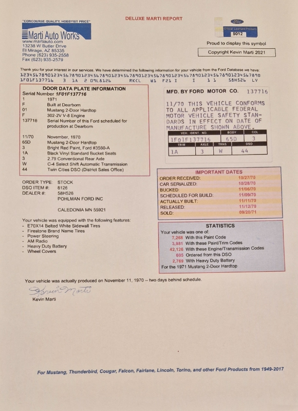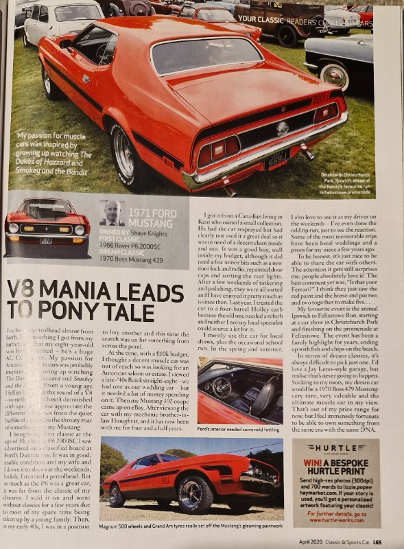 1971 Ford Mustang Coupe, with the Mach 1 livery and ram air hood. 302 CU in (-5.0 V8) engine with Holley carb and Edelbrock inlet manifold. I've owned the car for just over 10 years and have made the difficult decision to sell it on as I've not had the chance to use it so much over the past couple of years. In recent years, I have spent over £2,000 on maintaining the car (many of these receipts are available to view and will come with the car). Here are some of the main items: - Top end rebuild including replaced inlet manifold gasket and carb clean-out in 2025. - New fuel pump in 2025. - New brake shoes and master cylinder in 2024. - New battery in 2024. - New Pertronix electronic ignition and flamethrower coil in 2024. - New drivers window mechanism in 2024. - New screen wash bottle and motor in 2024. - New Holley carburettor in 2018. - Oil and filter replaced annually. It's in good usable condition, but there are a few things which can be improved if desired. Bare in mind it's 54 years old now. It's perfectly usable as a regular show car, prom car or simply something to have fun in on the weekend. It was featured in a magazine in April 2020 (see pics) and a copy of the magazine comes with the car. I also have the Marti report and reproduction care and operating manuals for the car, all included. I'm willing to take any prospective viewer for a test drive, but will only let someone else drive upon proof of fully comp insurance. These are not like modern cars to drive and the steering wheel is on the wrong side. Absolutely no tyre kickers or silly low offers - these will be ignored.