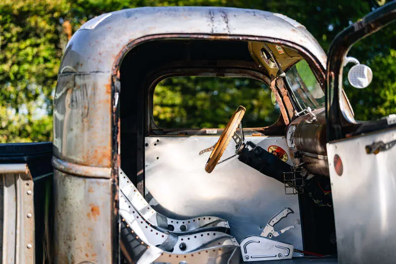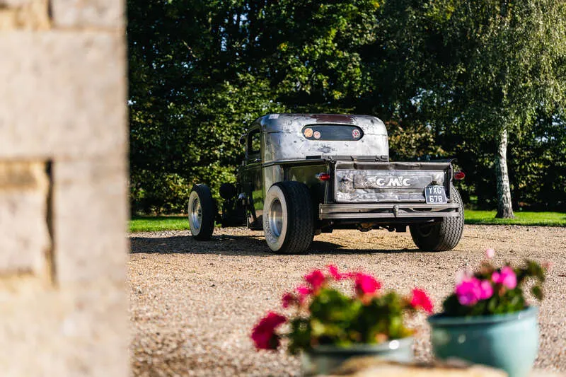 This lot will be auctioned via Iconic Auctioneers, The Classic Sale at the NEC Classic Motor Show 2025 on Sunday the 9th of November, NEC, Birmingham, B40 1NT. Based on a 1946 GMC E-Series Pick-up, this 'Rat Rod' looks like it's led a hard life delivering Moonshine for The Skull Duggery Haulage Company or would equally look at home on the set of Deliverance Imported from San Francisco, retaining its original all steel bodywork throughout with a chassis and underside as clean as the exterior Subtly chopped roofline, So Cal suspension all round and disc brakes to the front New chassis supporting a Chevrolet 350ci (5.7-litre) small block crated engine rated at 330bhp, with only c.1,700 miles covered since installation Equipped with a 4-barrel Holley carburettor and chrome Edelbrock top-mount air intake Heavy-duty TH400 automatic transmission with recently fitted oil cooler Fully serviced very recently – engine oil and filter, gearbox oil and filter, rear differential oil, plus new gaskets fitted throughout New timber bed liner and large capacity fuel tank fitted neatly in the bed Despite the bodywork looking like it had survived a Tornado in Kansas, it was professionally finished in clear coat within Lewis Hamilton’s Formula 1 paint booth at Mercedes-AMG Petronas in Brackley Aircraft-inspired bomber seats fabricated in metal – surprisingly comfortable – with key-start and electronic ignition Sensibly guided considering what it would cost to replicate We appreciate that this 'Rod' will not be to everyone's taste but, if you get it, you get it. There’s cool and then there’s this!