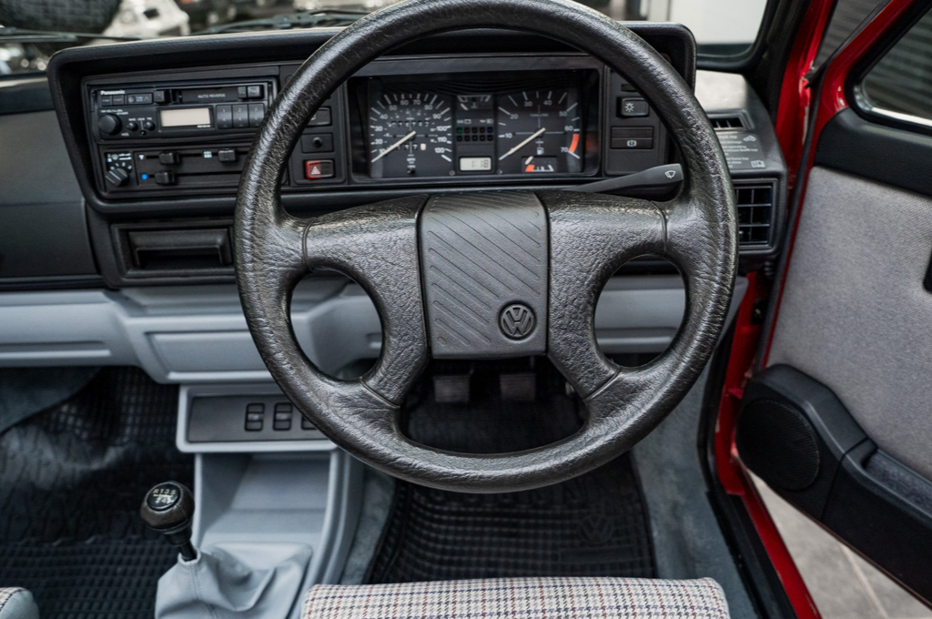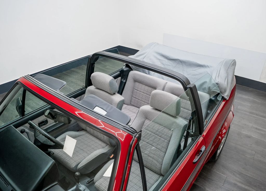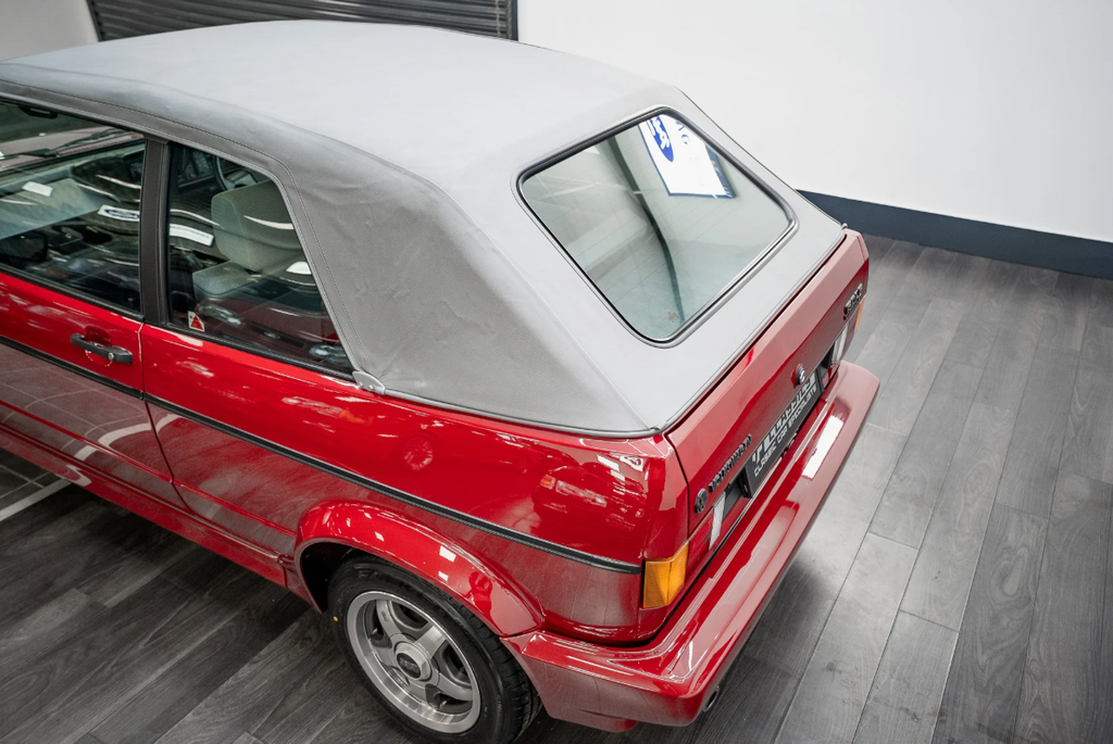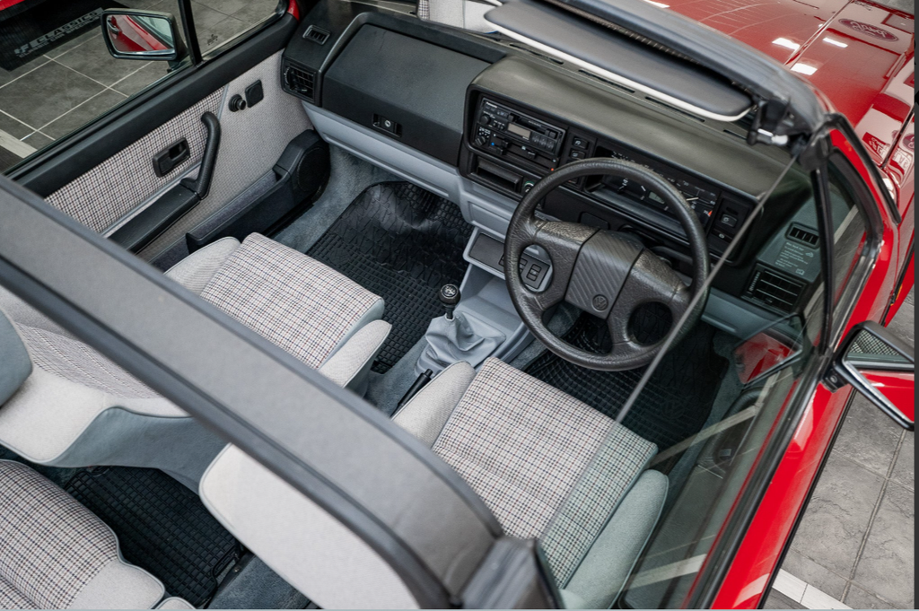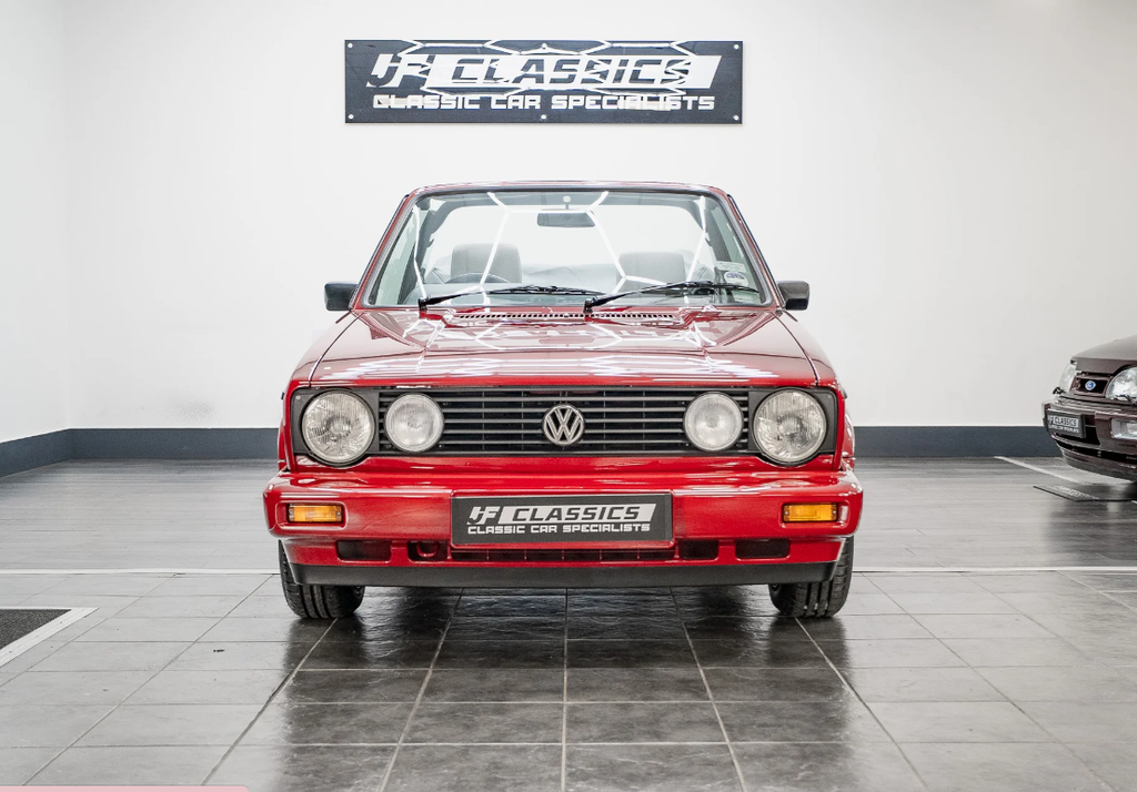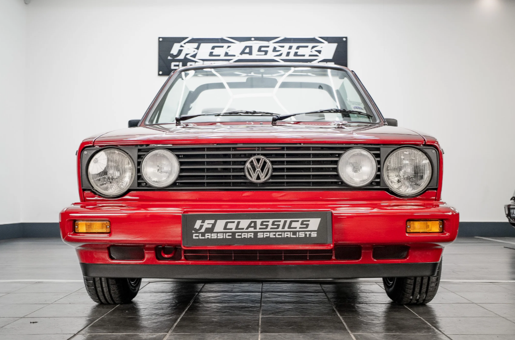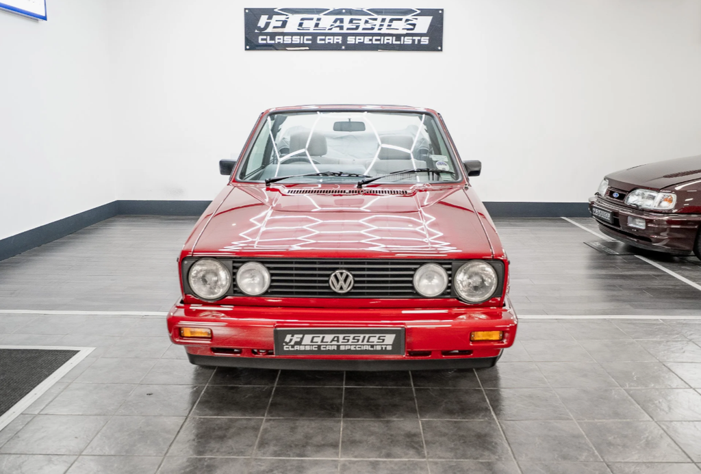 FOR SALE JF CLASSIC CARS proudly present an exceptionally rare opportunity to acquire a 1991 Volkswagen Golf Clipper Cabriolet with 'Karmann' styling, showing incredibly low mileage and boasting just one former keeper from new. Survivor-grade Cabriolets of any Mk are becoming increasingly scarce, and to find a Clipper model in such original, low-owner condition places this example firmly into the “one-off and highly desirable” category. A beautifully preserved modern classic that is ready to be enjoyed or proudly added to any discerning collection DESCRIPTION The 1991 Volkswagen Golf Clipper Cabriolet represents the very best of Volkswagen’s iconic Mk1 open-top motoring. Styling by Karmann renowned for their craftsmanship and coach-building excellence the Clipper was designed to offer a more stylish, refined and luxurious take on the legendary Golf Cabriolet. With its distinctive colour-coded bumpers and side skirts, upgraded interior trim and unmistakable “basket handle” rollover bar, the Clipper quickly became the most desirable variant of the range EXTERNAL From every angle, this Golf Clipper Cabriolet exudes the charm, precision and purity that only a genuinely cherished, low-mileage example can offer. Finished in Volkswagen’s Paprika Red (paint code LK3A), the car presents with a rich, vibrant gloss that flows seamlessly across each panel. The bodywork displays pin-sharp lines and flawless panel alignment, a testament to careful ownership and preservation. The colour-coded wrap-around front and rear bumpers remain beautifully presented, free from scuffs or blemishes, perfectly complementing the immaculate black slatted front grille which houses the original twin Hella headlamps crisp, clear and unmistakeably factory fresh. Subtle, factory-styled colour-coded wheel arches and side skirts further enhance the refined Clipper aesthetic, while the arrow-straight black bodyline running the length of the car adds a touch of precision and elegance to each flank. The original Volkswagen glazing is retained throughout, with window rubbers still supple and unspoilt. At the rear, the factory light lenses remain beautifully preserved clear, bright and completely free from the fading so common on lesser examples. Likewise, all iconic Volkswagen and Karmann badging presents in vibrant, tarnish-free condition. The dove grey convertible hood sits in wonderful order clean, tight and beautifully preserved housing the original heated glass rear screen. With the press of a button, the electrically operated hydraulic roof lowers smoothly and quietly, stowing neatly beneath its matching tonneau cover. Every detail reinforces this car’s originality: from the factory informational sticker above the fuel filler to the supplying dealer number plates that still remain in place. This is not simply a well-kept Golf Cabriolet it is an exceptionally rare, collector-grade example of the beloved Clipper. Presented with remarkable freshness, unspoilt originality and a level of condition seldom seen today, it stands as a highly desirable opportunity for the discerning enthusiast seeking one of the finest Mk1 cabriolets remaining INTERNAL The interior of this Golf Clipper Cabriolet is nothing short of breathtaking a genuine time-warp cabin that appears as though it has never been sat in. The Volkswagen Dove Grey cloth seats are simply immaculate, with the front seats presenting spotlessly and their matching adjustable headrests showing no signs of age or use. The rear bench seat is equally pristine, retaining its factory-fresh texture and definition. Matching Dove Grey door cards, both front and rear, present beautifully with no marks, warping, or fading. Every detail feels untouched: the door handles, door pulls, and manual mirror controls operate with the same precision they would have the day the car left the showroom. To the rear, the manual wind-down windows glide effortlessly, further reinforcing the sense of mechanical purity and low usage. Underfoot, the thick grey pile carpets appear almost new, having been protected since day one by the car’s original Genuine VW waffle mats a rare survival and a hallmark of true collector-grade condition. The black and grey contrasting dashboard looks as though it has just been unwrapped from the factory, free from cracks, sun fade, or age-related wear. To the passenger side, the glovebox sits neatly with an adjustable heater neatly to the side, while centre stage is dominated by the factory-fitted Panasonic Auto Reverse radio cassette system (H05). This rare and desirable unit remains in perfect working order and is complemented by four factory speakers plus two original tweeters positioned high within the front door cards. Below, the three-speed rotary fan control and slider-operated air-direction and temperature controls function precisely as intended, each switch retaining that distinct, tight factory click. The grey centre console is unmarked and houses the push-button controls for the electrically operated front windows and the electrically operated hydraulic hood. The surrounding grey leather gear gaiter, black leather gear knob, and handbrake lever remain beautifully preserved. Ahead of the driver, the binnacle displays a layout so fresh it appears new. Controls for the rear fog light, heated rear screen, hazard warning system, dash dimmer, and lighting functions all operate faultlessly. The speedometer shows just 14,742 miles from new, flanked by a crisp tachometer, central temperature gauge, and lower-right fuel gauge. A central digital multifunction display completes the cluster, glowing brightly with no fading or pixel loss. The four-spoke Volkswagen steering wheel shows virtually no wear and still retains its original grain an unmistakable sign of a car that has led an incredibly gentle life. Original dashboard crests relating to roof operation remain intact, and even the door shuts still hold their factory informational and warning stickers. This