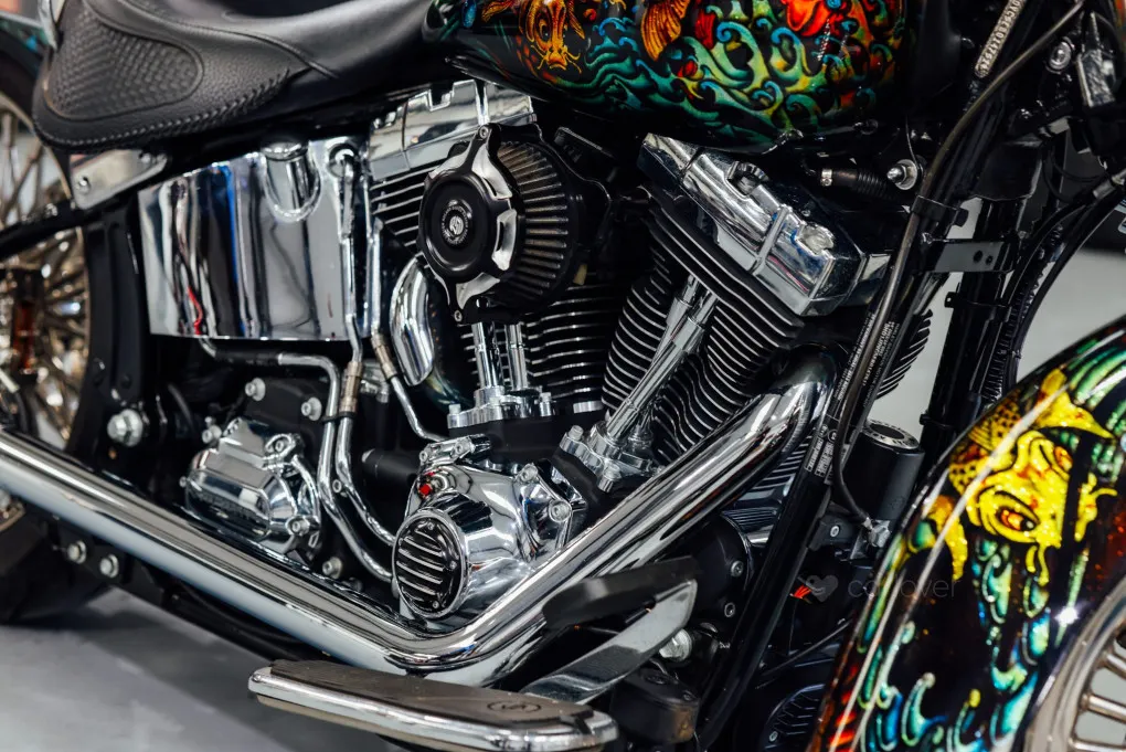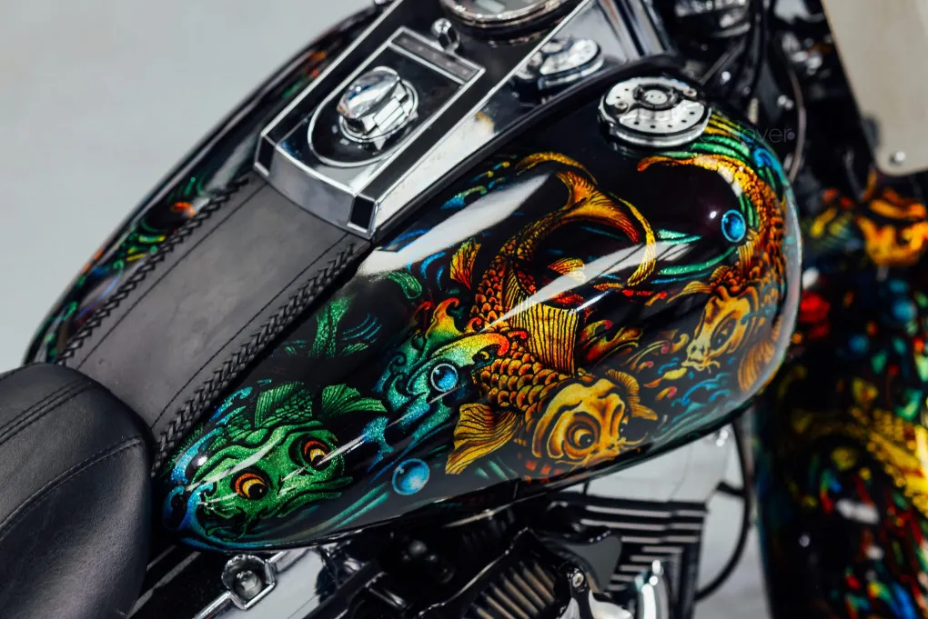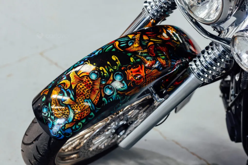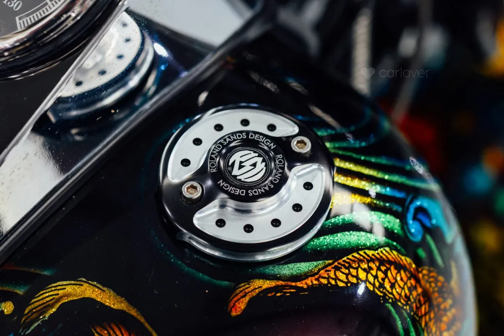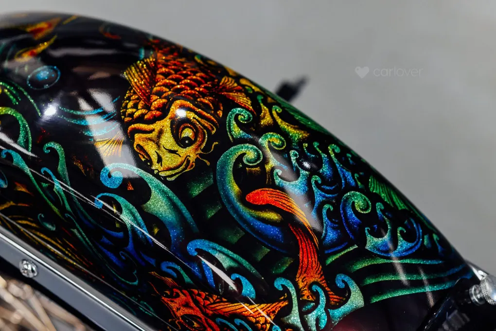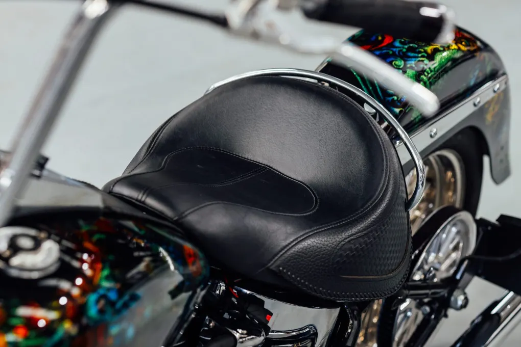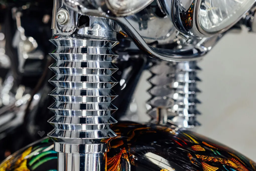 The hidden suspension is another feature of this design which traces it roots back to the 1950s classic motorcycles and with its unique Custom painted Fish Scales paintwork and generous chrome work this machine certainly stands out amongst the crowd, with the Mini-Ape style handlebars completing the picture.
