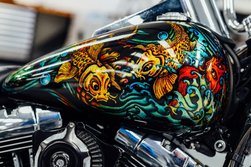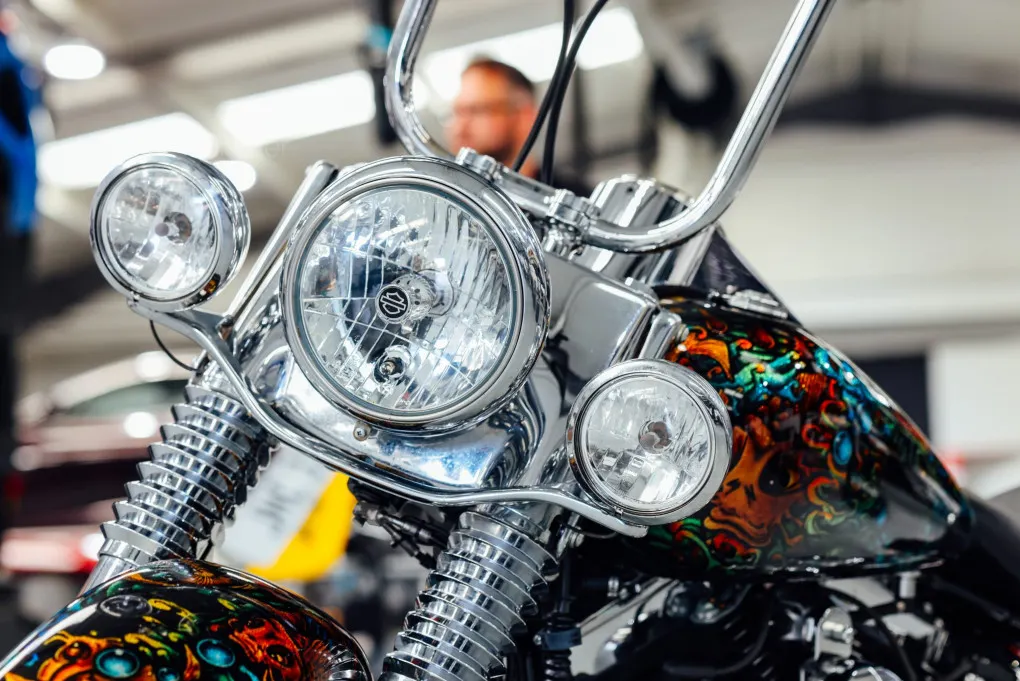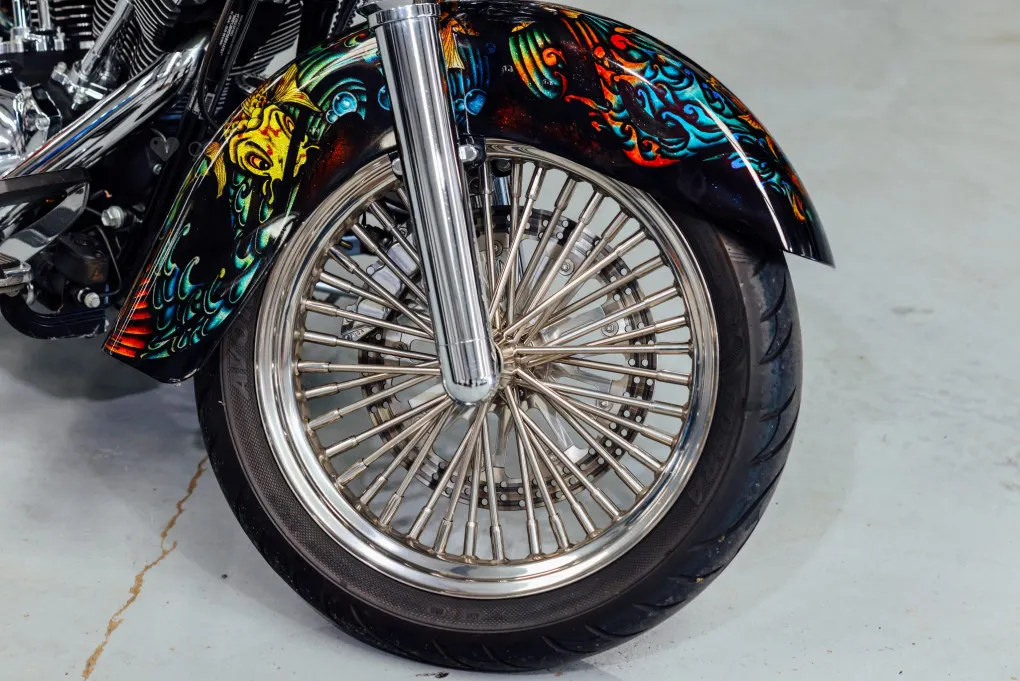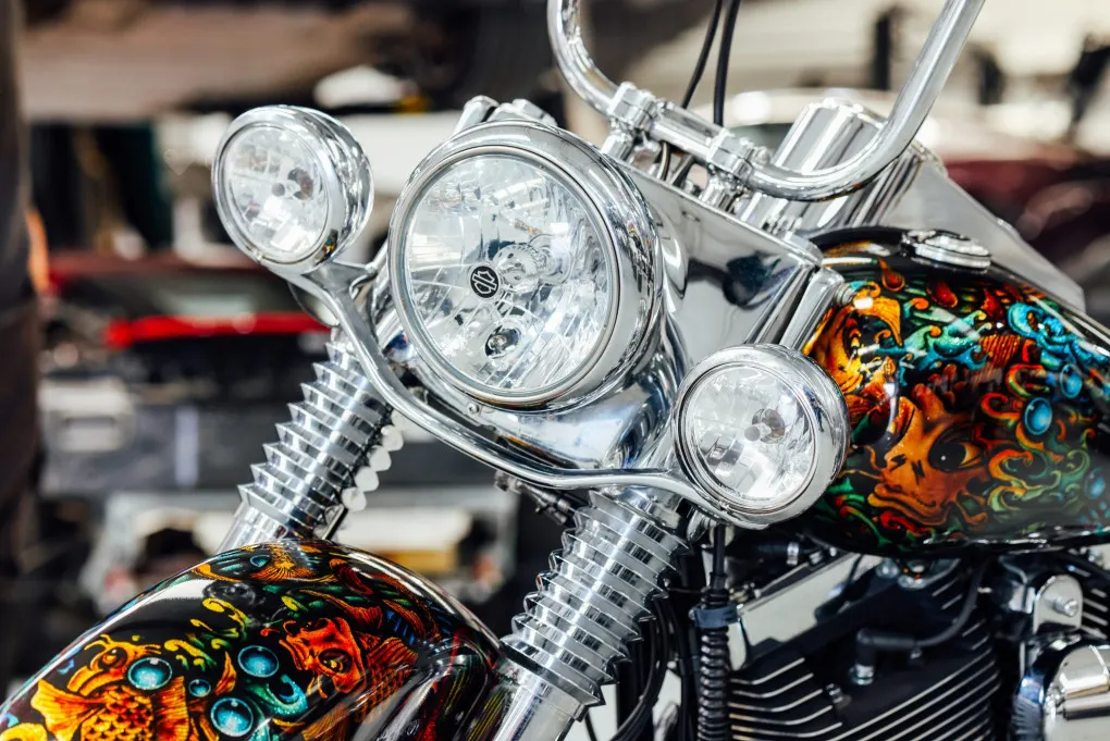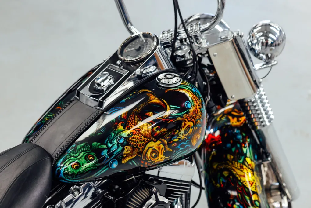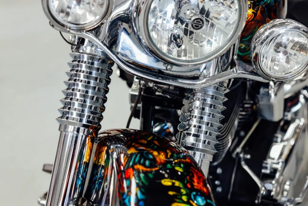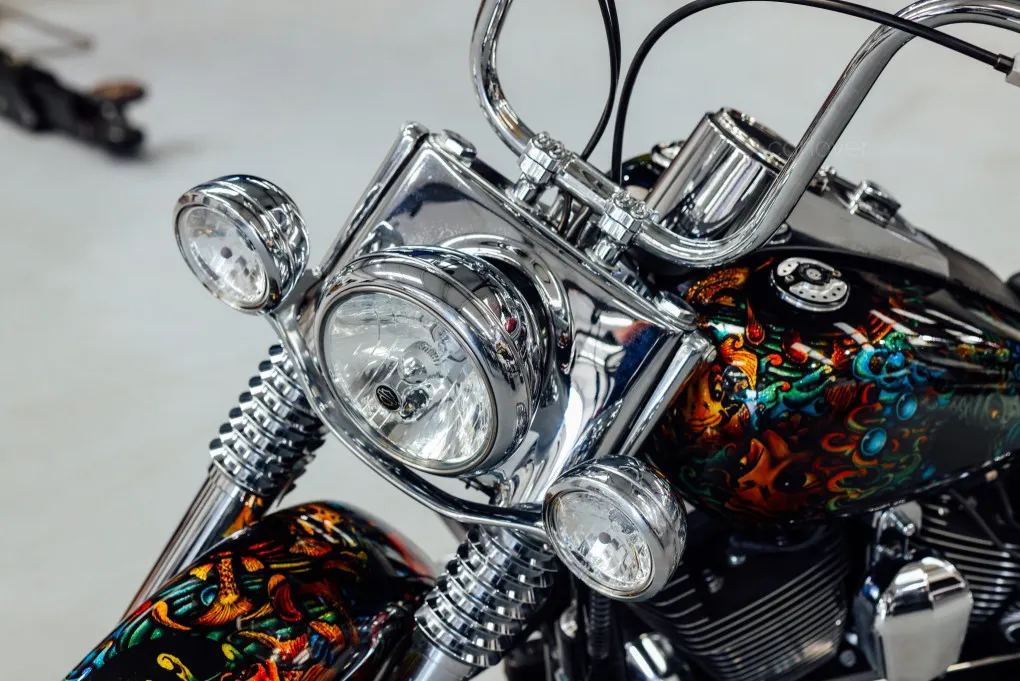 The hidden suspension is another feature of this design which traces it roots back to the 1950s classic motorcycles and with its unique Custom painted Fish Scales paintwork and generous chrome work this machine certainly stands out amongst the crowd, with the Mini-Ape style handlebars completing the picture.