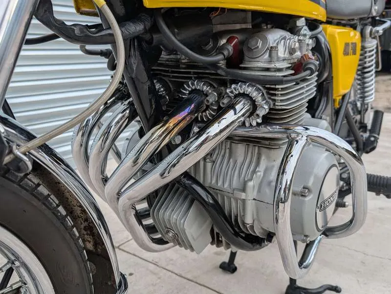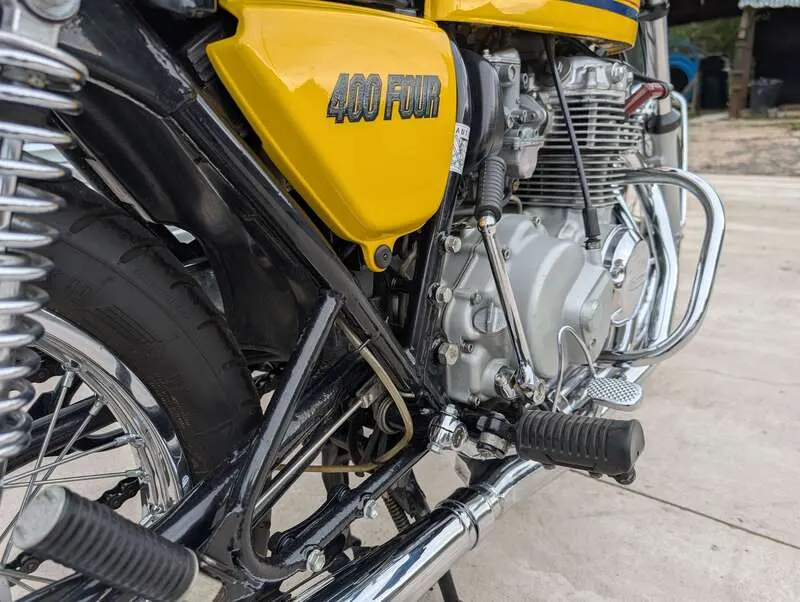 This lot will be auctioned via Iconic Auctioneers, The Iconic Motorcycle Sale at the NEC Classic Motor Show 2025 on Sunday the 9th of November, NEC, Birmingham, B40 1NT. The CB400F (or 400/4) was the very first production Japanese motorcycle with the hardware and aesthetics of a truly modern sporting machine 408cc and four cylinders made it smooth and economical compared to its two-stroke rivals Its European-influenced design included low handlebars, rear-set footrests, and a prominent 4-into-1 exhaust Hailed as a "mini-superbike" upon its release, it offered a blend of modern sporty design with a manageable engine size. This 1978 model has been beautifully restored to the gleaming example it is today Confirmed running the engine was treated to a top-end rebuild around 2,000 miles ago Supplied with a current V5 along with an extensive file of receipts for parts used during the restoration and some service and MOT history