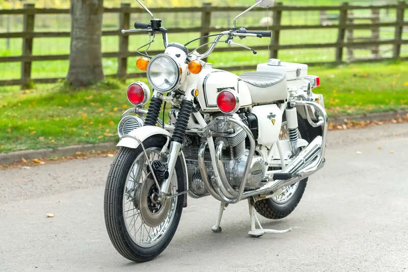 This lot will be auctioned via Iconic Auctioneers, The Iconic Motorcycle Sale at the NEC Classic Motor Show 2025 on Sunday the 9th of November, NEC, Birmingham, B40 1NT. Introduced in 1969, the Honda CB750 Sandcast was the first production superbike and set a new standard for performance and refinement in the 750cc class Presented in Candy Blue Green with correct early features including left-hand horn bracket, 'wrinkle' fuel tank, smooth oil filter housing, double-cut front mudguard, rolled rear rim, red seat foam and sandcast instrument gearboxes Fitted with its 736cc inline-four SOHC engine, 5-speed gearbox and front disc brake, producing around 68bhp and capable of 120mph Retains its original early specification with matching frame number CB750-1001372 and engine number CB750E-1001492 along with all important early sandcast engines cases Restored by Rising Sun Restorations, initially by John Wyatt and completed by Phil Hagon following Wyatt’s passing in September 2001 Freshly UK-registered, fitted with a new battery and reported to be running and riding perfectly