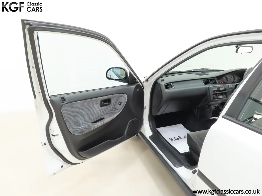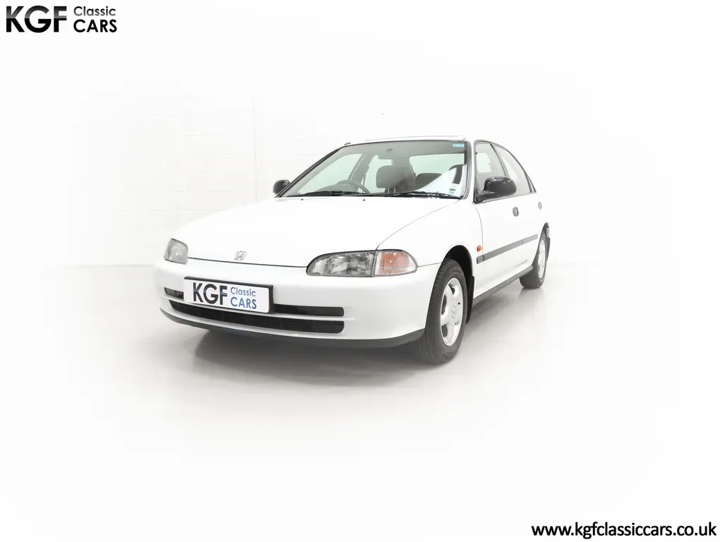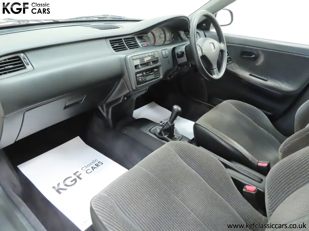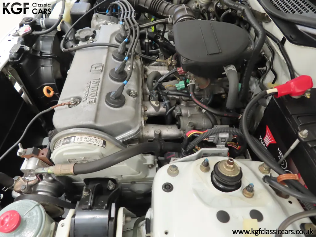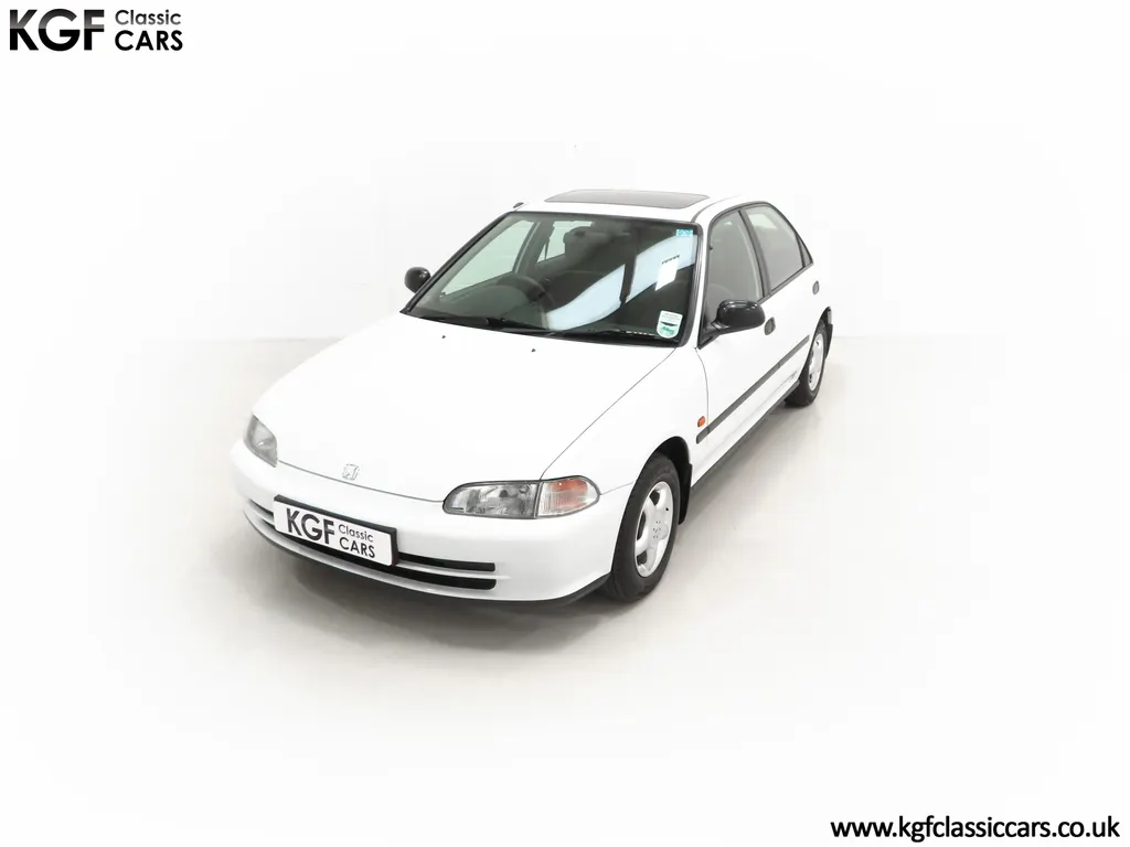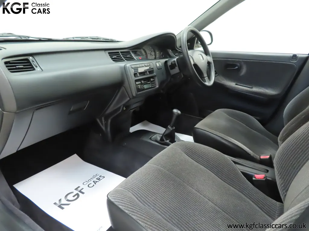 FOR SALE An outstanding Honda Civic 1.5 LSi with colossal history and 22,367 miles. EQUIPMENT Integrated body-coloured bumpers, green tinted windows, side mouldings, electric tilt/slide sunroof, doorbeams, electric windows-auto-up on driver’s side, clock, centre console, interior tailgate release, interior fuel cap release, RDS stereo cassette, adjustable front and rear headrests, passenger seat magazine pocket, folding 60/40 rear seat lockable from interior, height adjustable front seat belt anchors. Factory Options: Alloy wheels. Dealer Options: Mud flaps, Honda Civic carpet mats. New Car Handover Pack: Hepworth Honda branded item to include, paper floor mats, touch up paint pack, Super Lube, car polish, screen wash. EXTERIOR This ultra-rare survivor Fifth Generation Civic has covered just 22,367 miles from new, fully verified with colossal Honda main dealer service history. Finished in Frost White, (Code NH538), the paintwork presents beautifully with a bright polished shine throughout. The factory body panels are straight and free from dings, scuffs, damage and importantly, corrosion! Bumpers, trim and original badges/decals are fully intact as is all factory glass and the black plastics have not faded. Wonderfully, the supplying Honda dealer number plates, front and rear screen stickers and tax disc holder remain fitted. The tax disc even has the first tax disc in the screen! These Civic’s have all but disappeared from our roads and low mileage cosseted examples such as this are even more scarce. INTERIOR A typical Honda interior where everything feels engineered to precision and beautifully made. The spotless interior is trimmed in Charcoal Moquette, (Code Type D), with the seat material remaining tight and free from any notable wear. The carpets are pristine having been protected from new by tailored Honda Civic floor mats and the headlining is perfect. Even small circular PDI dot stickers have remained on the seats, most having been long lost or picked off by small fingers! The front passenger door card material has shrunk slightly. The steering wheel and gear knob display a distinct lack of wear synonymous with the very low mileage. The dashboard is immaculate, and all functions operate seamlessly including the original Honda RDS stereo cassette. The pristine boot space boasts an unmarked carpet underneath which the boot floor is as new with unused jack present. Clean, fresh and totally unspoilt. ENGINE & TRANSMISSION This LSi model features the SOHC VTEC engine displacing 1493cc and developing 89bhp and 119Nm maximum torque. Seamless performance and reliability can be expected from Honda, even more so with this example having been subjected to fastidious Honda main dealer servicing throughout. The engine bay is remarkably clean with all factory stickers, under-bonnet label VIN plate and bulkhead chassis stamping intact. The five-speed gearbox is light, precise and a joy to use. WHEELS, TYRES & BRAKES Factory optional Alloys wheels remain fitted and are in pristine condition with no scratches or rim damage. Replacement matching brand 175/70 R13 tyres have covered approximately 500 miles and the spare is the same and unused. The braking system features ventilated front discs and performance is optimal given the fastidious maintenance throughout the cars life and a full brake service carried out in July 2025. HISTORY FILE Supplied new on 27th August 1994 by Hepworth Honda in Huddersfield, this Civic was registered to first owner, Mr Medwid, with the new car sales invoice confirming the price of £11,850. The car remained within the Medwid family with ownership passing from husband to wife and then to the son, all traceable at the same address. In 2022, the car gained a new owner when the family home was sold with the car in situ inside the garage where it had always been stored. Thankfully the new owner, Mr Free, is a car enthusiast who fully appreciated the cars rarity, condition and remarkably low mileage. It was abundantly clear the Medwid family had cherished their Honda with full Honda main dealer service history throughout their entire ownership up to 2022. The car has remained for the last three years at the same home with Mr Free who has enjoyed the car and attended classic cars shows. Servicing and maintenance have been kept up with a major service and cambelt change in July 2025 with supporting invoice for £760.09. The colossal history file reveals just how well this car has been cared for with 27 evidenced services, 24 of which were the supplying Honda dealership! The Medwid family even had the car on a Honda service plan with the supplying dealer up to 2022 and there has been three further services since. A neatly organized folder has every service invoice and checklist as well as MOT records. The family even kept every single tax disc from the first in 1994! Completing the phenomenal history is the full Honda book pack with stamped service book, both sets of keys with Hepworth Honda leather fobs and an original sales brochure. Furthermore, the Hepworth Honda paper floor mats from new car handover have been kept along with the Hepworth Honda branded handover pack! Immensely reliable, retro, rare, cherished and ever so wonderfully Honda! MOT July 2026, HPI Clear.