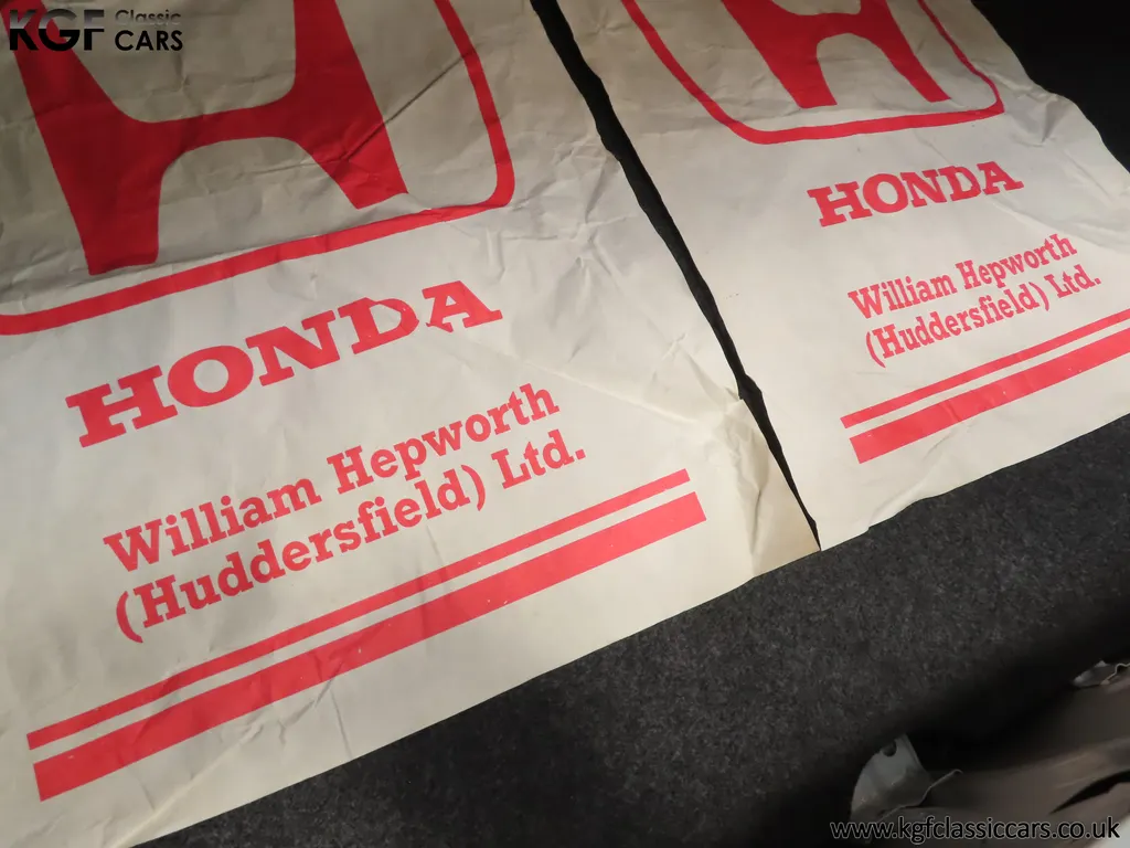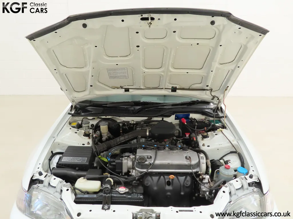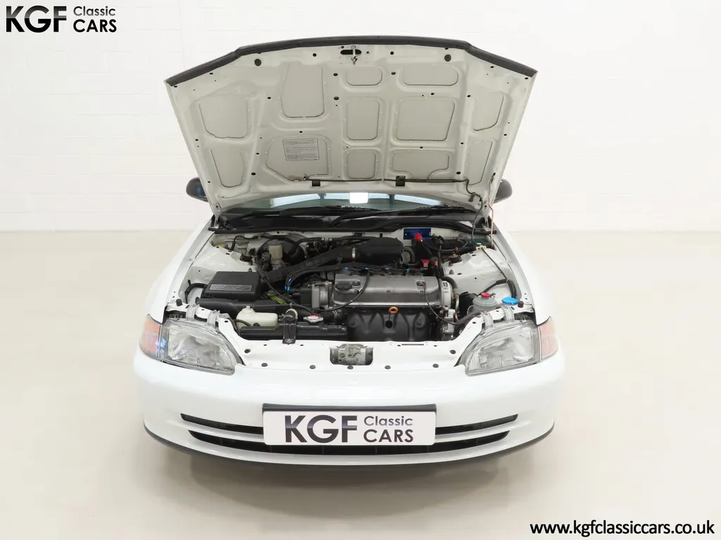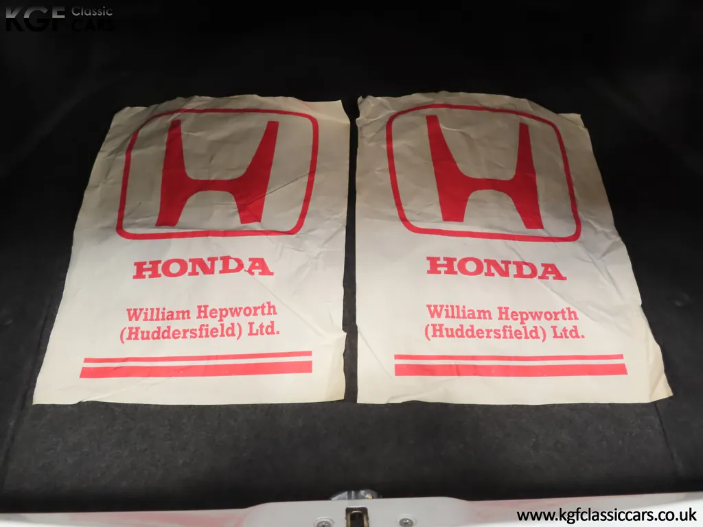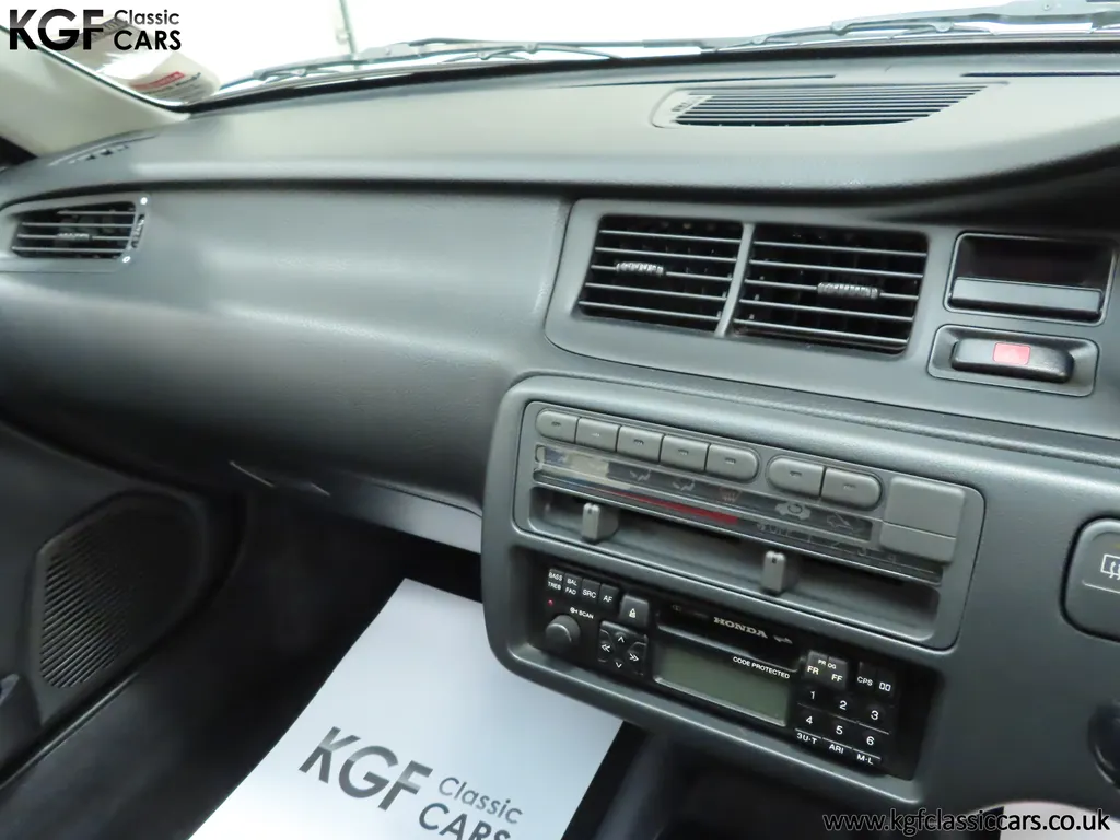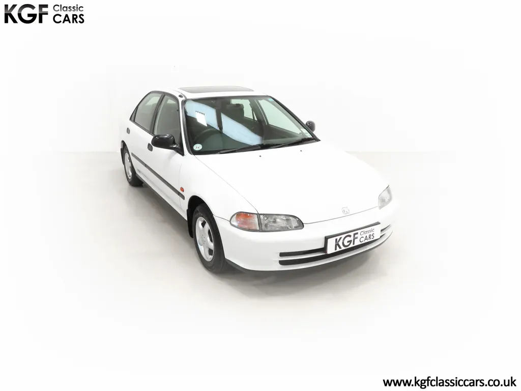 FOR SALE An outstanding Honda Civic 1.5 LSi with colossal history and 22,367 miles. EQUIPMENT Integrated body-coloured bumpers, green tinted windows, side mouldings, electric tilt/slide sunroof, doorbeams, electric windows-auto-up on driver’s side, clock, centre console, interior tailgate release, interior fuel cap release, RDS stereo cassette, adjustable front and rear headrests, passenger seat magazine pocket, folding 60/40 rear seat lockable from interior, height adjustable front seat belt anchors. Factory Options: Alloy wheels. Dealer Options: Mud flaps, Honda Civic carpet mats. New Car Handover Pack: Hepworth Honda branded item to include, paper floor mats, touch up paint pack, Super Lube, car polish, screen wash. EXTERIOR This ultra-rare survivor Fifth Generation Civic has covered just 22,367 miles from new, fully verified with colossal Honda main dealer service history. Finished in Frost White, (Code NH538), the paintwork presents beautifully with a bright polished shine throughout. The factory body panels are straight and free from dings, scuffs, damage and importantly, corrosion! Bumpers, trim and original badges/decals are fully intact as is all factory glass and the black plastics have not faded. Wonderfully, the supplying Honda dealer number plates, front and rear screen stickers and tax disc holder remain fitted. The tax disc even has the first tax disc in the screen! These Civic’s have all but disappeared from our roads and low mileage cosseted examples such as this are even more scarce. INTERIOR A typical Honda interior where everything feels engineered to precision and beautifully made. The spotless interior is trimmed in Charcoal Moquette, (Code Type D), with the seat material remaining tight and free from any notable wear. The carpets are pristine having been protected from new by tailored Honda Civic floor mats and the headlining is perfect. Even small circular PDI dot stickers have remained on the seats, most having been long lost or picked off by small fingers! The front passenger door card material has shrunk slightly. The steering wheel and gear knob display a distinct lack of wear synonymous with the very low mileage. The dashboard is immaculate, and all functions operate seamlessly including the original Honda RDS stereo cassette. The pristine boot space boasts an unmarked carpet underneath which the boot floor is as new with unused jack present. Clean, fresh and totally unspoilt. ENGINE & TRANSMISSION This LSi model features the SOHC VTEC engine displacing 1493cc and developing 89bhp and 119Nm maximum torque. Seamless performance and reliability can be expected from Honda, even more so with this example having been subjected to fastidious Honda main dealer servicing throughout. The engine bay is remarkably clean with all factory stickers, under-bonnet label VIN plate and bulkhead chassis stamping intact. The five-speed gearbox is light, precise and a joy to use. WHEELS, TYRES & BRAKES Factory optional Alloys wheels remain fitted and are in pristine condition with no scratches or rim damage. Replacement matching brand 175/70 R13 tyres have covered approximately 500 miles and the spare is the same and unused. The braking system features ventilated front discs and performance is optimal given the fastidious maintenance throughout the cars life and a full brake service carried out in July 2025. HISTORY FILE Supplied new on 27th August 1994 by Hepworth Honda in Huddersfield, this Civic was registered to first owner, Mr Medwid, with the new car sales invoice confirming the price of £11,850. The car remained within the Medwid family with ownership passing from husband to wife and then to the son, all traceable at the same address. In 2022, the car gained a new owner when the family home was sold with the car in situ inside the garage where it had always been stored. Thankfully the new owner, Mr Free, is a car enthusiast who fully appreciated the cars rarity, condition and remarkably low mileage. It was abundantly clear the Medwid family had cherished their Honda with full Honda main dealer service history throughout their entire ownership up to 2022. The car has remained for the last three years at the same home with Mr Free who has enjoyed the car and attended classic cars shows. Servicing and maintenance have been kept up with a major service and cambelt change in July 2025 with supporting invoice for £760.09. The colossal history file reveals just how well this car has been cared for with 27 evidenced services, 24 of which were the supplying Honda dealership! The Medwid family even had the car on a Honda service plan with the supplying dealer up to 2022 and there has been three further services since. A neatly organized folder has every service invoice and checklist as well as MOT records. The family even kept every single tax disc from the first in 1994! Completing the phenomenal history is the full Honda book pack with stamped service book, both sets of keys with Hepworth Honda leather fobs and an original sales brochure. Furthermore, the Hepworth Honda paper floor mats from new car handover have been kept along with the Hepworth Honda branded handover pack! Immensely reliable, retro, rare, cherished and ever so wonderfully Honda! MOT July 2026, HPI Clear.