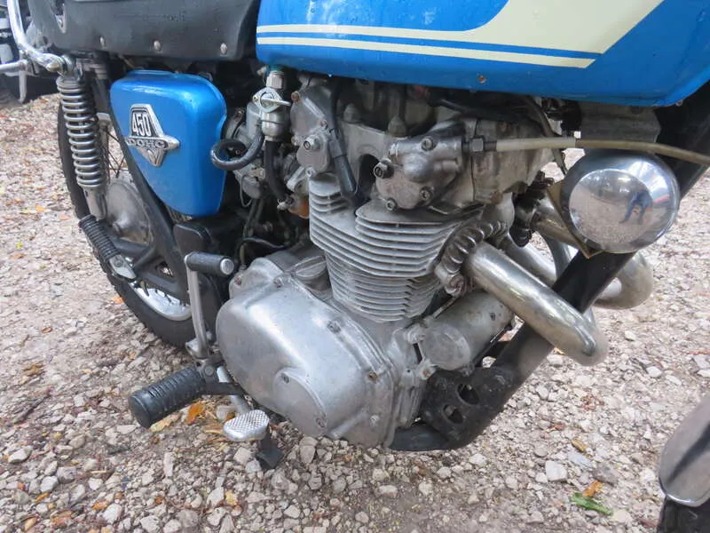This lot will be auctioned via Iconic Auctioneers, The Iconic Motorcycle Sale at the NEC Classic Motor Show 2025 on Sunday the 9th of November, NEC, Birmingham, B40 1NT. The CL450K6 scrambler or dual sport is a variant of the long-running CL Scrambler model range fitted with high-level pipes and braced handlebars Utilising the 444cc DOHC, parallel twin-cylinder engine and introduced in the mid 1960s Fitted with both electric and kick start and aimed very successfully at the lucrative West Coast USA market This K6 variant is presented in very original and unrestored condition and is in good running order Finished in its original colour paint scheme of Candy Sapphire Blue Showing only 13,000 recorded miles Imported from the USA in 2019 and now UK registered Small file containing some photos, import documents and a Honda dating letter Still has its original and complete tool kit Great usable classic Honda scrambler UK-registered on a current V5C