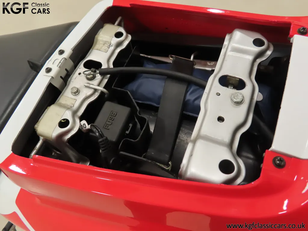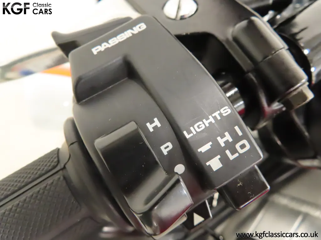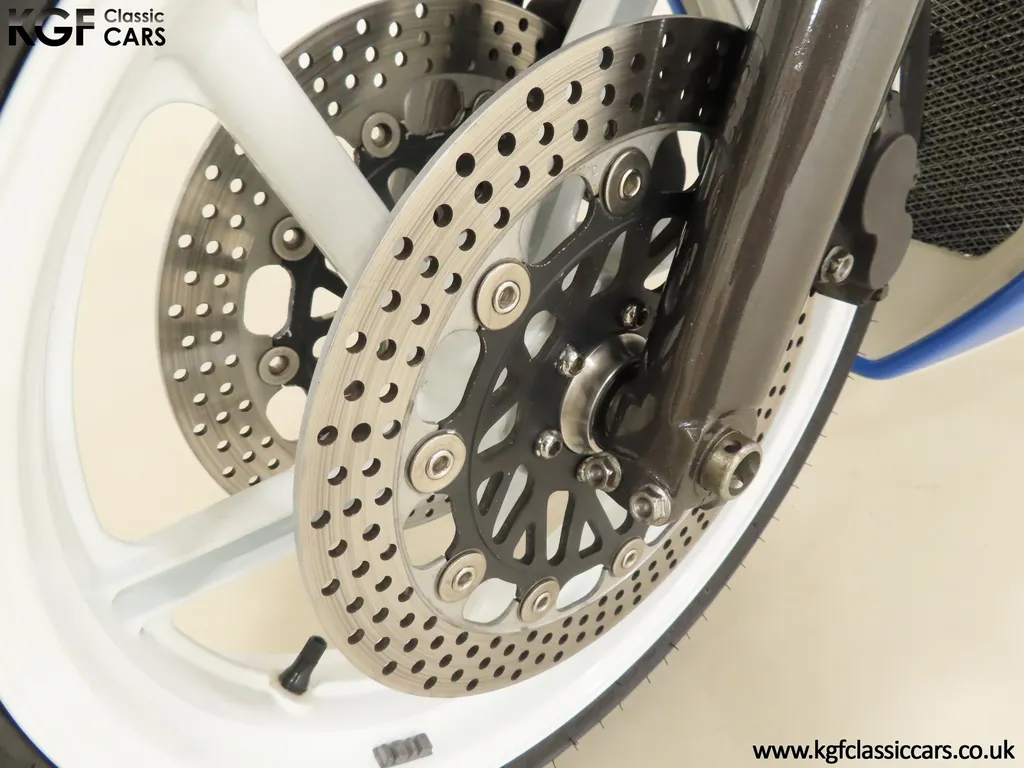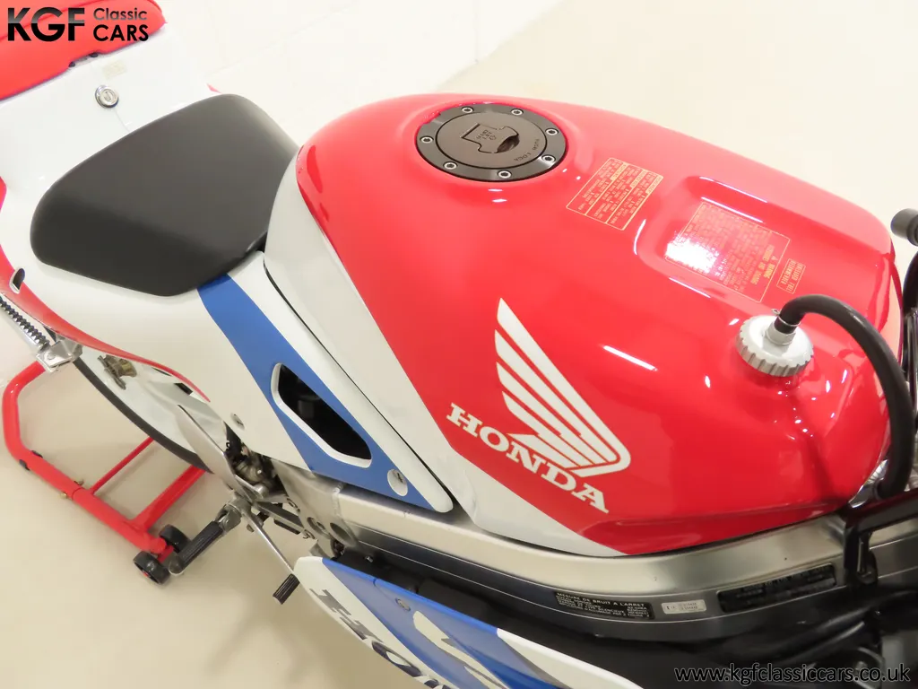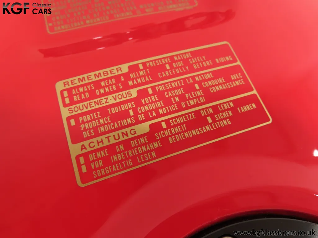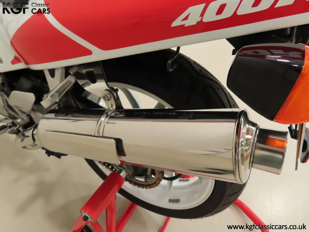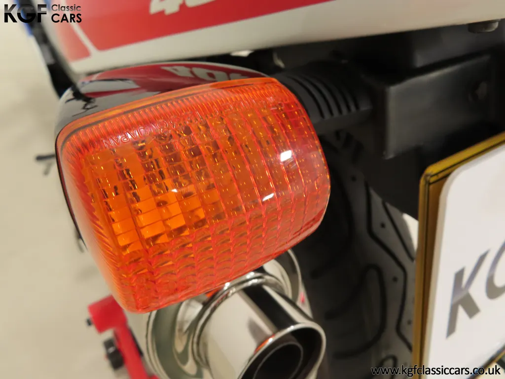 FOR SALE A genuine UK Honda VFR400R NC30 with only 3,946 miles from new. MODEL HISTORY A scaled down version of the larger VFR race models, the UK VFR400R NC30 was horrendously expensive and was similarly priced to 1000cc bikes of the time! Sharing many desirable features of the legendary RC30 homologation model created for World Superbike Championship such as Pro-Arm rear end, endurance style clocks, gear-driven camshafts, close-ratio style gearbox, and 360° firing order (and therefore exhaust note) as its 750cc inspiration. Rare UK bikes differ from their Japanese domestic market examples and are unrestricted with an oil cooler, larger hinged mirrors, separate numberplate lamp and different carbs amongst many more features. With the Honda Racing Corporation (HRC) build quality and rarity, it is no wonder these exotic miniatures are so collectable. EQUIPMENT High-rigidity aluminium frame, aerodynamic faring, twin-headlights, Pro Arm advanced suspension system, centrally fixed wheels, steering lock, lockable seat compartment, helmet holder, side stand down, electric start, mph speedo, coolant temperature gauge, headlight and dimmer switch, passing switch, horn button, oil, neutral, high beam and turn signal lamps, manual choke, tool kit. EXTERIOR To see a pristine and original UK supplied NC30 in the iconic Ross White, Fighting Red, Dakar Blue colour scheme, (Code NH196H), is a wonderful sight. Quality components and exemplary build quality are clearly apparent and more so in this beautifully preserved low mileage example. Factory standard aerodynamic faring remains untouched with original paint and decals, glossy bright and vibrant. The correct olive-green drab plating to components and delicate warning stickers remain attached, even to the chain guard and clear Perspex front screen. The mesh grille behind the front wheel has been dipped and zinc plated to factory specification and the original rear shock has the addition of a small Schrader valve to allow it to be re-gassed. The standard factory supplied Honda HM MR8 exhaust system remains fitted with no marks or dings and the supplying Motorcycle City number plates and front mudguard sticker are still attached. This UK bike is difficult to fault and must be one of the best available. ENGINE & TRANSMISSION The VFR400R’s compact liquid cooled V4 engine has smooth power with full torque to produce exhilarating performance. Being a matching numbers UK example, it is a full power unrestricted model with 63bhp and standard in all respects. Recent and expensive works by renown NC30 specialists, JTR Technica Ltd confirm UK standard E3FA carburettor, needles and jets and optimal running. Advanced features such as two-part radiator to assist cooling, oil cooler and 360° firing order producing a wonderful exhaust note, all add to the thrill on a bike only weighing 176kg. The Race-inspired close-ratio six-speed gearbox utilises every ounce of power. WHEELS, TYRES & BRAKES Pure white cast aluminium wheels are unmarked and are fitted with new, difficult to source and correctly sized, 120/60 R17 front and 150/60 R18 rear tyres to ensure the perfect ride as Honda intended. Powerful hydraulic twin-floating 296mm front discs with 4-pot callipers up front and a single disc to the rear provide controllable braking. HISTORY FILE This rare UK supplied matching numbers VFR400R NC30 was supplied by Motorcycle City (Sales) Ltd in Farnborough on the 11th September 1992 to a Mr Cooper. The New Bike invoice reveals the large sum paid for this model when new along with all other purchase documentation at handover. Mr Cooper enjoyed the bike for a few years before placing it in storage where it remained until he gifted it to his son in April 2019. Father and son lived at the same address as evidenced by issued registration documents. At this point the bike had covered just 3,876 miles and having briefly been put back on the road it was placed back into storage until the third and final keeper purchased it in May 2025. A passionate motorcycle collector, the bike went to NC30 specialists to be fully recommissioned and made roadworthy to enjoy once more. Only made available along with other bikes, cars and a Sinclair C5 that KGF Classic Cars also purchased due to a property investment opportunity. Supplied with all UK handbooks, service book, A4 history file and two sets of keys, (one unused and still its plastic sheaf), this rare and iconic superbike will satisfy the most demanding of connoisseurs and fanatical bike collectors. MOT October 2026, HPI Clear