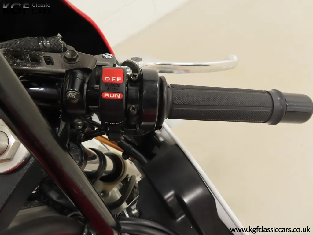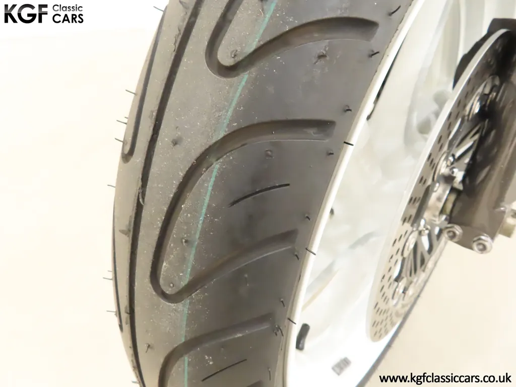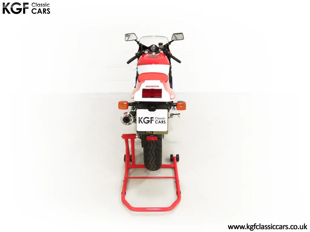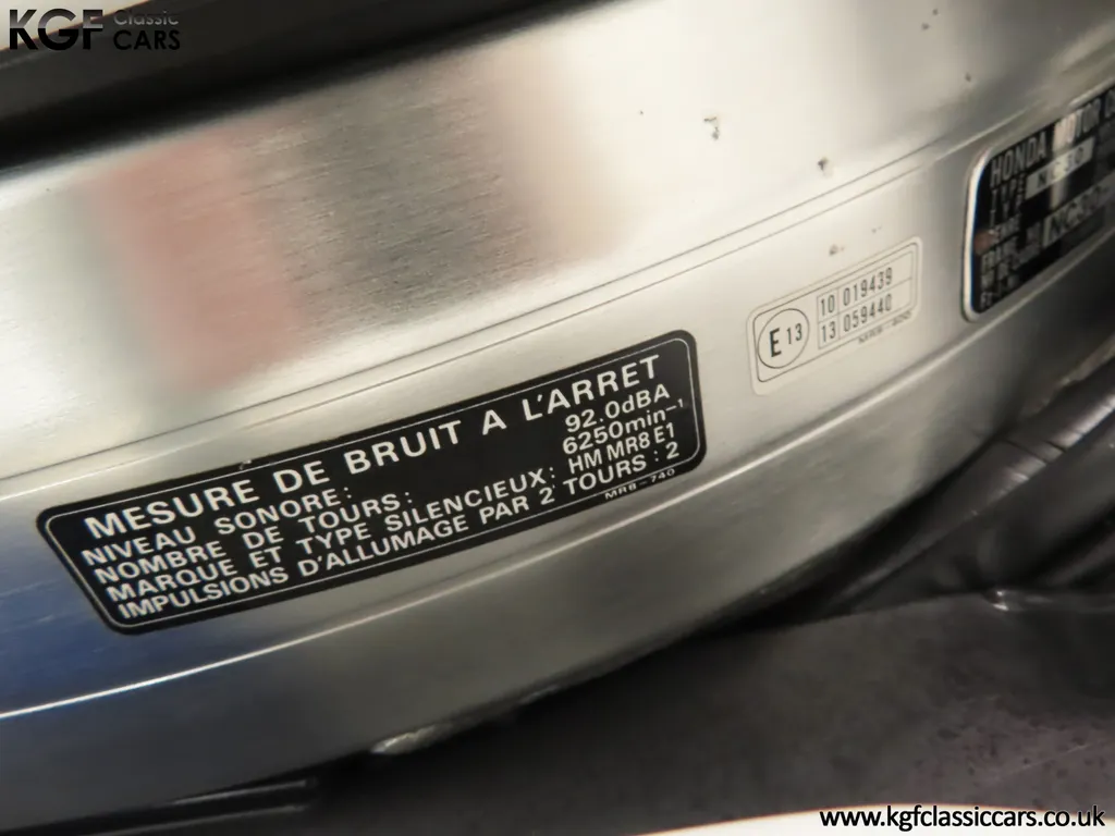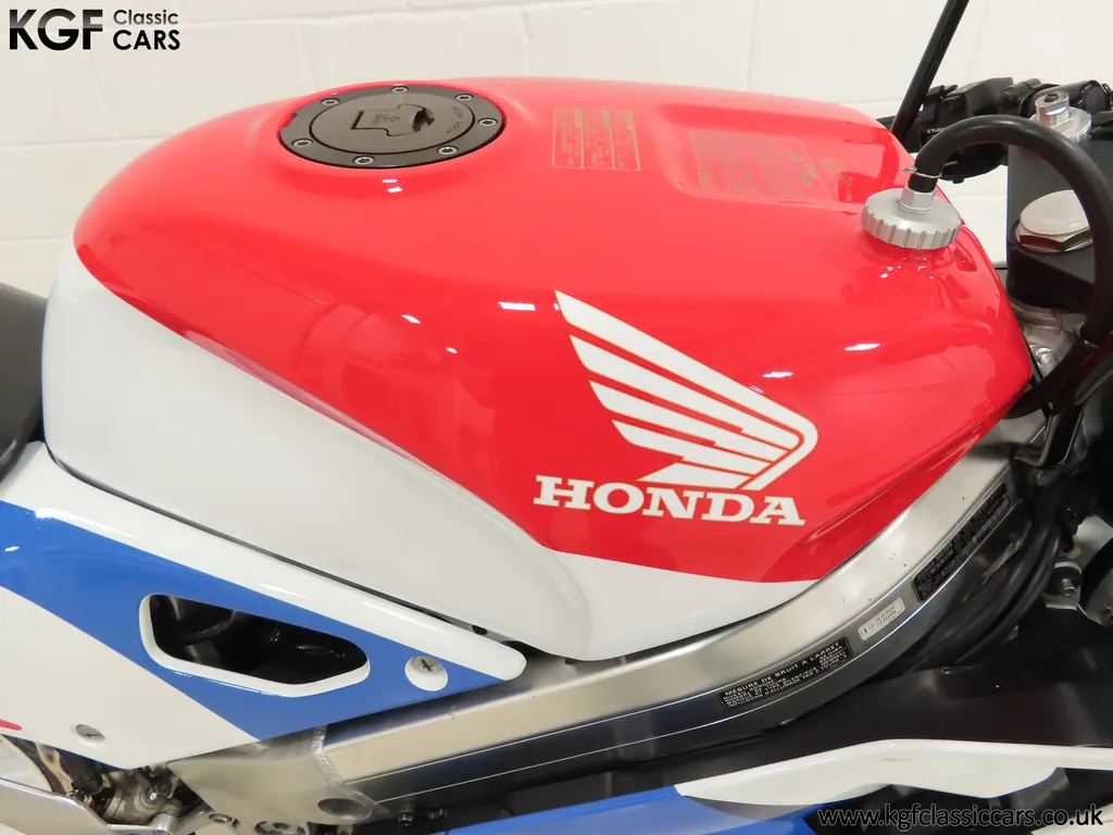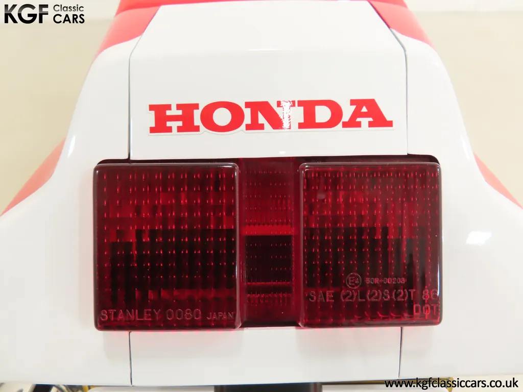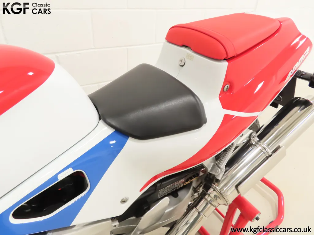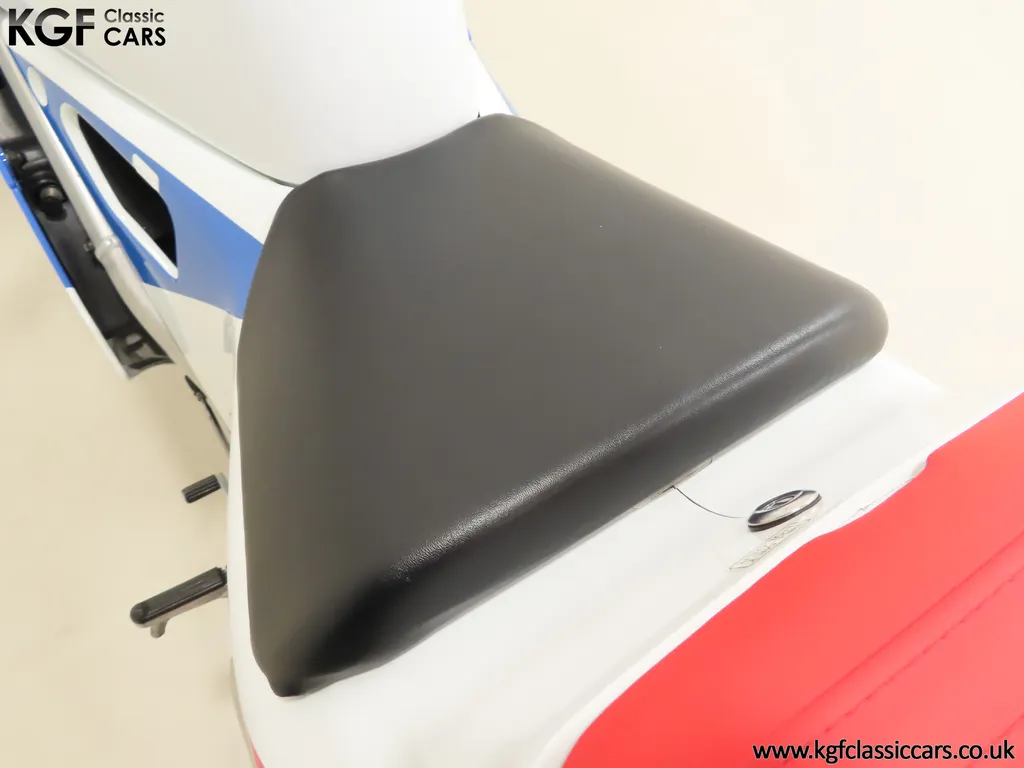 FOR SALE A genuine UK Honda VFR400R NC30 with only 3,946 miles from new. MODEL HISTORY A scaled down version of the larger VFR race models, the UK VFR400R NC30 was horrendously expensive and was similarly priced to 1000cc bikes of the time! Sharing many desirable features of the legendary RC30 homologation model created for World Superbike Championship such as Pro-Arm rear end, endurance style clocks, gear-driven camshafts, close-ratio style gearbox, and 360° firing order (and therefore exhaust note) as its 750cc inspiration. Rare UK bikes differ from their Japanese domestic market examples and are unrestricted with an oil cooler, larger hinged mirrors, separate numberplate lamp and different carbs amongst many more features. With the Honda Racing Corporation (HRC) build quality and rarity, it is no wonder these exotic miniatures are so collectable. EQUIPMENT High-rigidity aluminium frame, aerodynamic faring, twin-headlights, Pro Arm advanced suspension system, centrally fixed wheels, steering lock, lockable seat compartment, helmet holder, side stand down, electric start, mph speedo, coolant temperature gauge, headlight and dimmer switch, passing switch, horn button, oil, neutral, high beam and turn signal lamps, manual choke, tool kit. EXTERIOR To see a pristine and original UK supplied NC30 in the iconic Ross White, Fighting Red, Dakar Blue colour scheme, (Code NH196H), is a wonderful sight. Quality components and exemplary build quality are clearly apparent and more so in this beautifully preserved low mileage example. Factory standard aerodynamic faring remains untouched with original paint and decals, glossy bright and vibrant. The correct olive-green drab plating to components and delicate warning stickers remain attached, even to the chain guard and clear Perspex front screen. The mesh grille behind the front wheel has been dipped and zinc plated to factory specification and the original rear shock has the addition of a small Schrader valve to allow it to be re-gassed. The standard factory supplied Honda HM MR8 exhaust system remains fitted with no marks or dings and the supplying Motorcycle City number plates and front mudguard sticker are still attached. This UK bike is difficult to fault and must be one of the best available. ENGINE & TRANSMISSION The VFR400R’s compact liquid cooled V4 engine has smooth power with full torque to produce exhilarating performance. Being a matching numbers UK example, it is a full power unrestricted model with 63bhp and standard in all respects. Recent and expensive works by renown NC30 specialists, JTR Technica Ltd confirm UK standard E3FA carburettor, needles and jets and optimal running. Advanced features such as two-part radiator to assist cooling, oil cooler and 360° firing order producing a wonderful exhaust note, all add to the thrill on a bike only weighing 176kg. The Race-inspired close-ratio six-speed gearbox utilises every ounce of power. WHEELS, TYRES & BRAKES Pure white cast aluminium wheels are unmarked and are fitted with new, difficult to source and correctly sized, 120/60 R17 front and 150/60 R18 rear tyres to ensure the perfect ride as Honda intended. Powerful hydraulic twin-floating 296mm front discs with 4-pot callipers up front and a single disc to the rear provide controllable braking. HISTORY FILE This rare UK supplied matching numbers VFR400R NC30 was supplied by Motorcycle City (Sales) Ltd in Farnborough on the 11th September 1992 to a Mr Cooper. The New Bike invoice reveals the large sum paid for this model when new along with all other purchase documentation at handover. Mr Cooper enjoyed the bike for a few years before placing it in storage where it remained until he gifted it to his son in April 2019. Father and son lived at the same address as evidenced by issued registration documents. At this point the bike had covered just 3,876 miles and having briefly been put back on the road it was placed back into storage until the third and final keeper purchased it in May 2025. A passionate motorcycle collector, the bike went to NC30 specialists to be fully recommissioned and made roadworthy to enjoy once more. Only made available along with other bikes, cars and a Sinclair C5 that KGF Classic Cars also purchased due to a property investment opportunity. Supplied with all UK handbooks, service book, A4 history file and two sets of keys, (one unused and still its plastic sheaf), this rare and iconic superbike will satisfy the most demanding of connoisseurs and fanatical bike collectors. MOT October 2026, HPI Clear