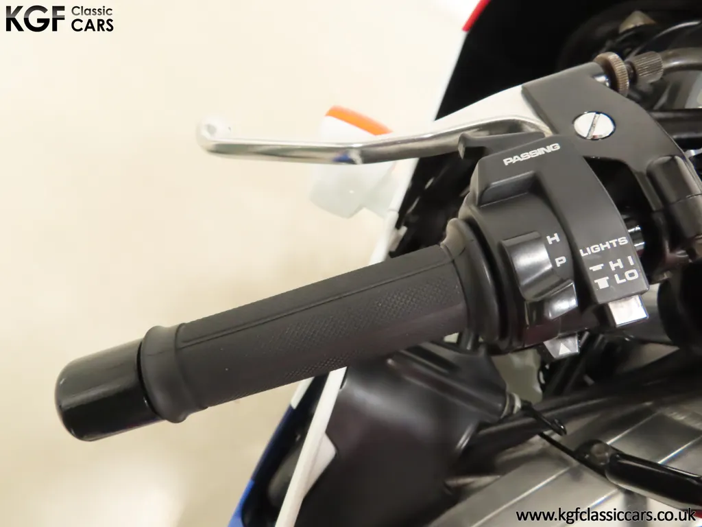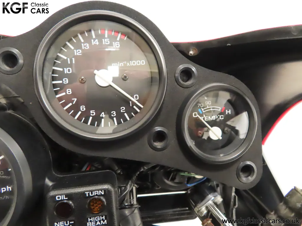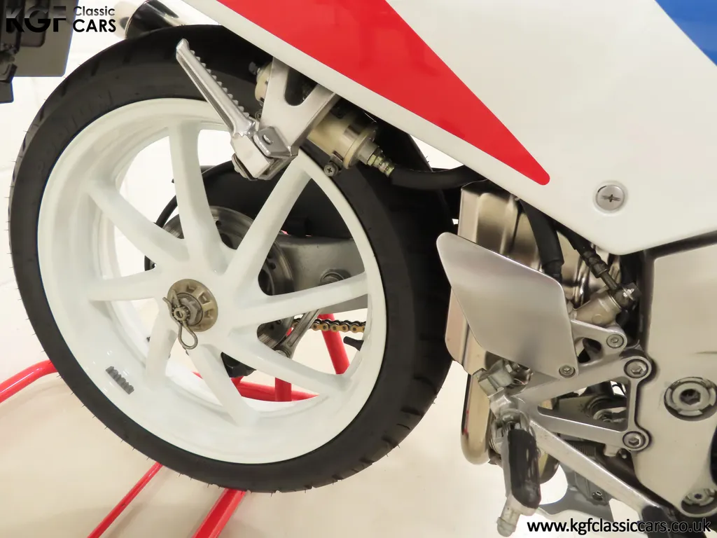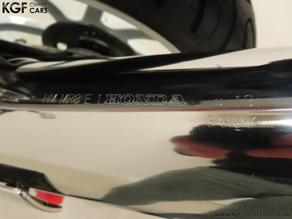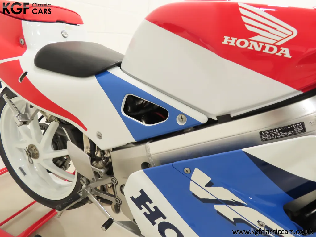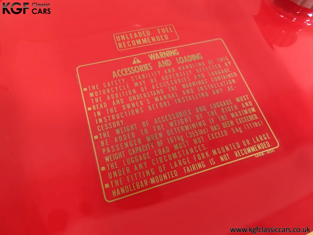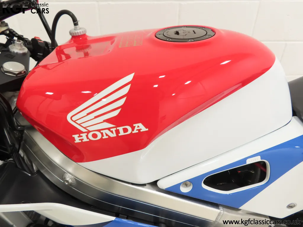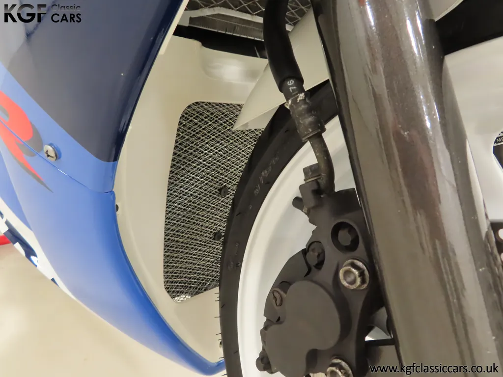 FOR SALE A genuine UK Honda VFR400R NC30 with only 3,946 miles from new. MODEL HISTORY A scaled down version of the larger VFR race models, the UK VFR400R NC30 was horrendously expensive and was similarly priced to 1000cc bikes of the time! Sharing many desirable features of the legendary RC30 homologation model created for World Superbike Championship such as Pro-Arm rear end, endurance style clocks, gear-driven camshafts, close-ratio style gearbox, and 360° firing order (and therefore exhaust note) as its 750cc inspiration. Rare UK bikes differ from their Japanese domestic market examples and are unrestricted with an oil cooler, larger hinged mirrors, separate numberplate lamp and different carbs amongst many more features. With the Honda Racing Corporation (HRC) build quality and rarity, it is no wonder these exotic miniatures are so collectable. EQUIPMENT High-rigidity aluminium frame, aerodynamic faring, twin-headlights, Pro Arm advanced suspension system, centrally fixed wheels, steering lock, lockable seat compartment, helmet holder, side stand down, electric start, mph speedo, coolant temperature gauge, headlight and dimmer switch, passing switch, horn button, oil, neutral, high beam and turn signal lamps, manual choke, tool kit. EXTERIOR To see a pristine and original UK supplied NC30 in the iconic Ross White, Fighting Red, Dakar Blue colour scheme, (Code NH196H), is a wonderful sight. Quality components and exemplary build quality are clearly apparent and more so in this beautifully preserved low mileage example. Factory standard aerodynamic faring remains untouched with original paint and decals, glossy bright and vibrant. The correct olive-green drab plating to components and delicate warning stickers remain attached, even to the chain guard and clear Perspex front screen. The mesh grille behind the front wheel has been dipped and zinc plated to factory specification and the original rear shock has the addition of a small Schrader valve to allow it to be re-gassed. The standard factory supplied Honda HM MR8 exhaust system remains fitted with no marks or dings and the supplying Motorcycle City number plates and front mudguard sticker are still attached. This UK bike is difficult to fault and must be one of the best available. ENGINE & TRANSMISSION The VFR400R’s compact liquid cooled V4 engine has smooth power with full torque to produce exhilarating performance. Being a matching numbers UK example, it is a full power unrestricted model with 63bhp and standard in all respects. Recent and expensive works by renown NC30 specialists, JTR Technica Ltd confirm UK standard E3FA carburettor, needles and jets and optimal running. Advanced features such as two-part radiator to assist cooling, oil cooler and 360° firing order producing a wonderful exhaust note, all add to the thrill on a bike only weighing 176kg. The Race-inspired close-ratio six-speed gearbox utilises every ounce of power. WHEELS, TYRES & BRAKES Pure white cast aluminium wheels are unmarked and are fitted with new, difficult to source and correctly sized, 120/60 R17 front and 150/60 R18 rear tyres to ensure the perfect ride as Honda intended. Powerful hydraulic twin-floating 296mm front discs with 4-pot callipers up front and a single disc to the rear provide controllable braking. HISTORY FILE This rare UK supplied matching numbers VFR400R NC30 was supplied by Motorcycle City (Sales) Ltd in Farnborough on the 11th September 1992 to a Mr Cooper. The New Bike invoice reveals the large sum paid for this model when new along with all other purchase documentation at handover. Mr Cooper enjoyed the bike for a few years before placing it in storage where it remained until he gifted it to his son in April 2019. Father and son lived at the same address as evidenced by issued registration documents. At this point the bike had covered just 3,876 miles and having briefly been put back on the road it was placed back into storage until the third and final keeper purchased it in May 2025. A passionate motorcycle collector, the bike went to NC30 specialists to be fully recommissioned and made roadworthy to enjoy once more. Only made available along with other bikes, cars and a Sinclair C5 that KGF Classic Cars also purchased due to a property investment opportunity. Supplied with all UK handbooks, service book, A4 history file and two sets of keys, (one unused and still its plastic sheaf), this rare and iconic superbike will satisfy the most demanding of connoisseurs and fanatical bike collectors. MOT October 2026, HPI Clear