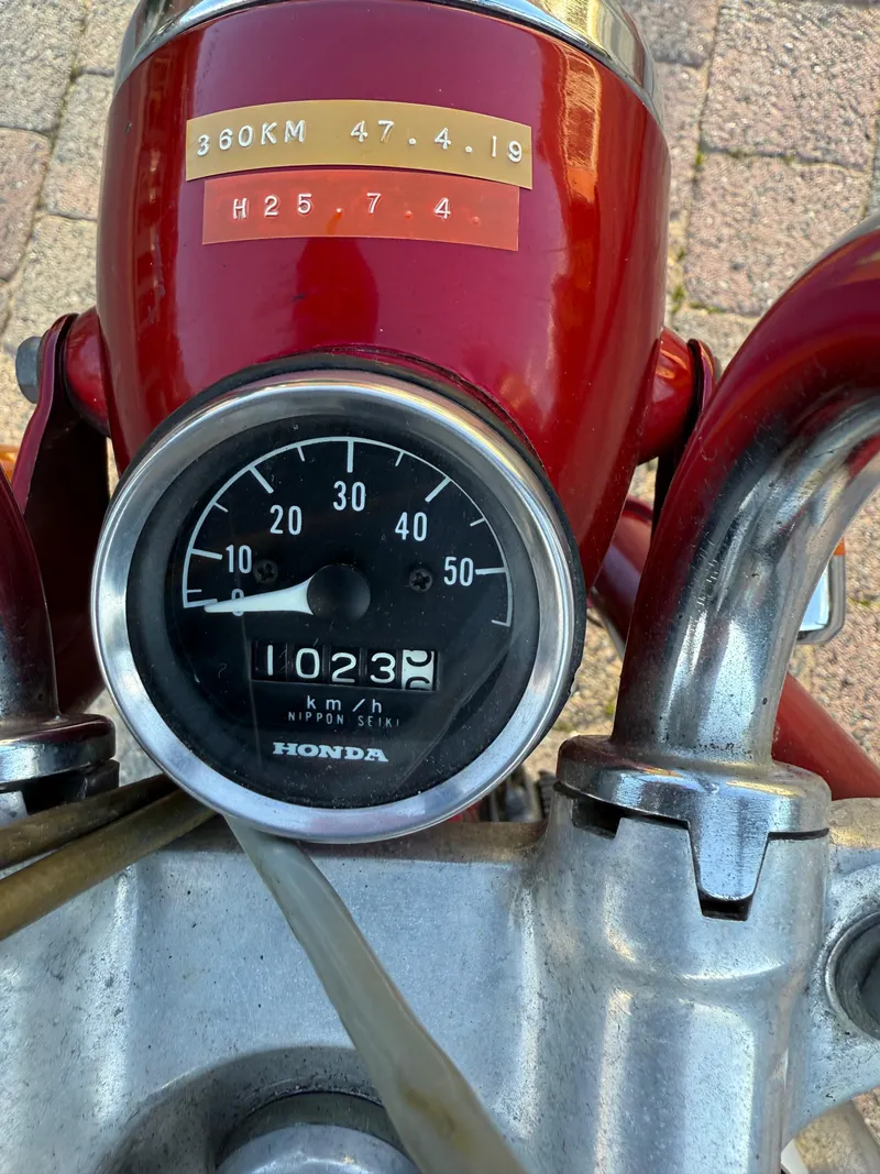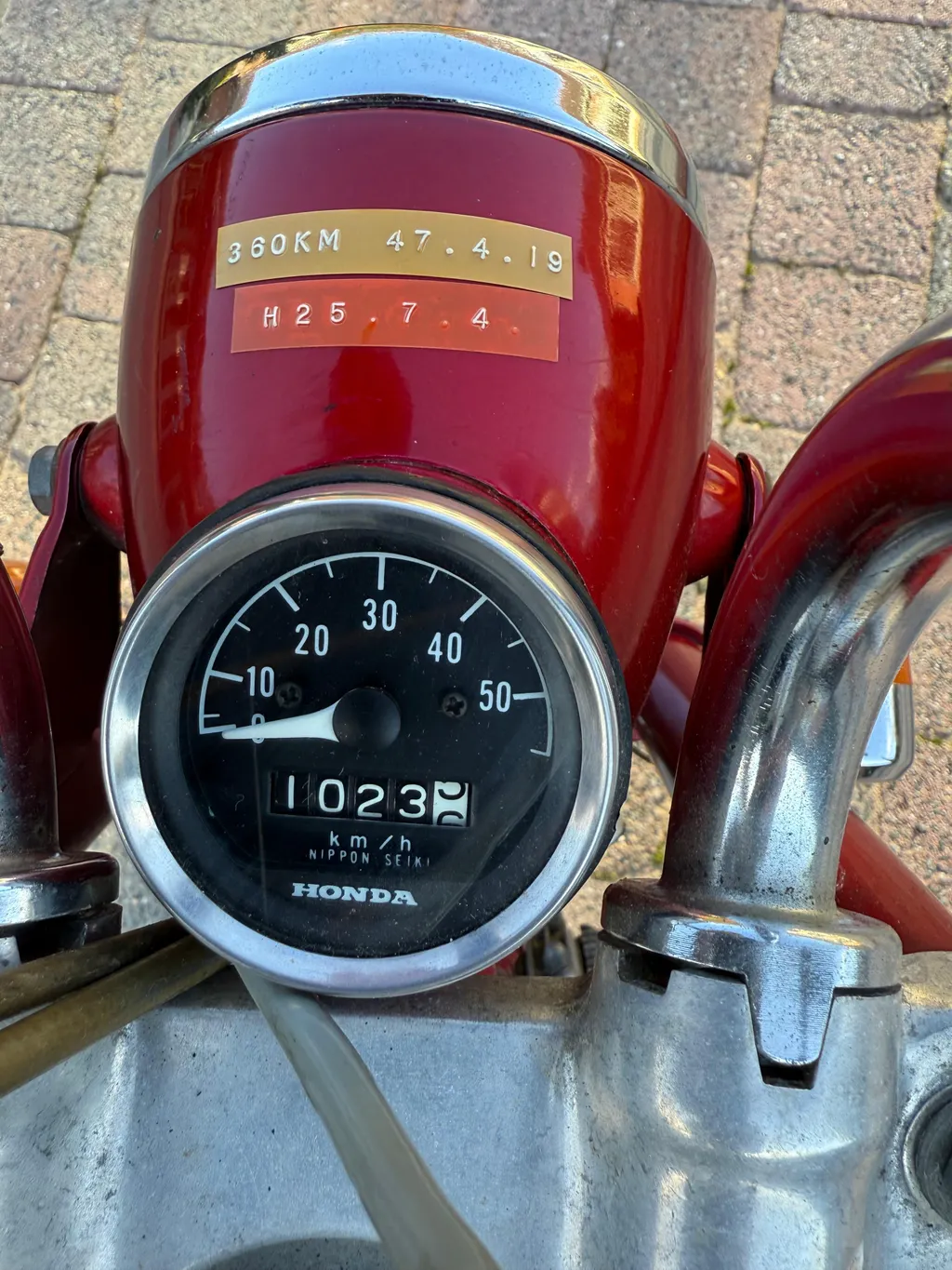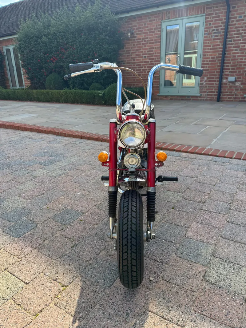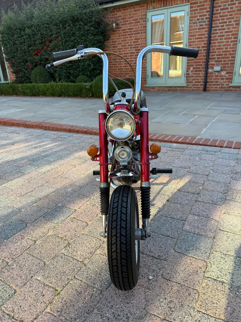 This fabulous example of the Honda Z50 is presented in red over white with excellent chrome work. This matching engine/gearbox/chassis example is a remarkably original Monkey bike whilst having been meticulously cosmetically very well maintained. Fully UK registered and supplied with V5 registration document, Honda dating certificate, it boasts just 635 miles (1,023kms) from new. This is a fantastic example of a well-priced and well-presented Monkey bike. Consigned by Mathew Priddy