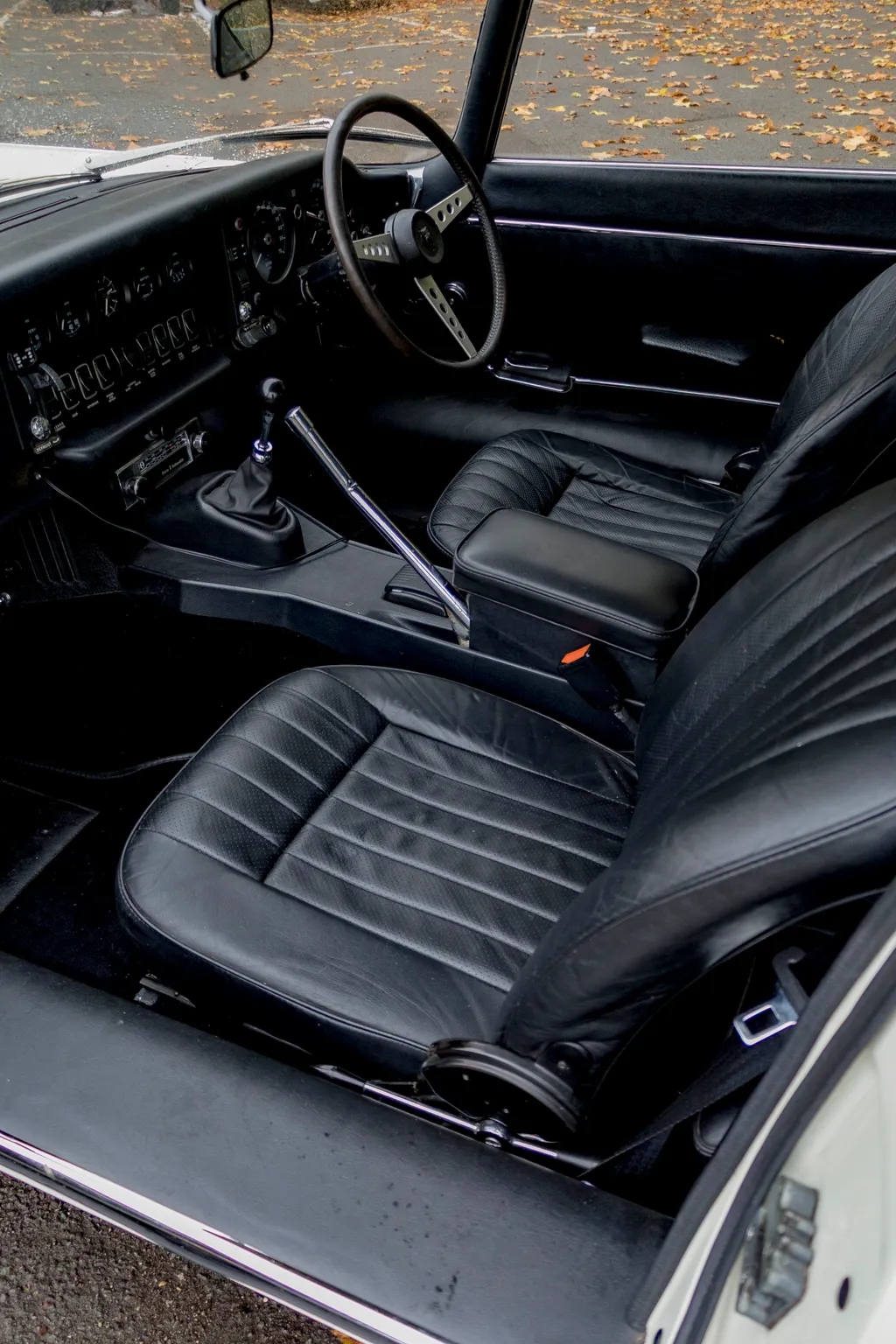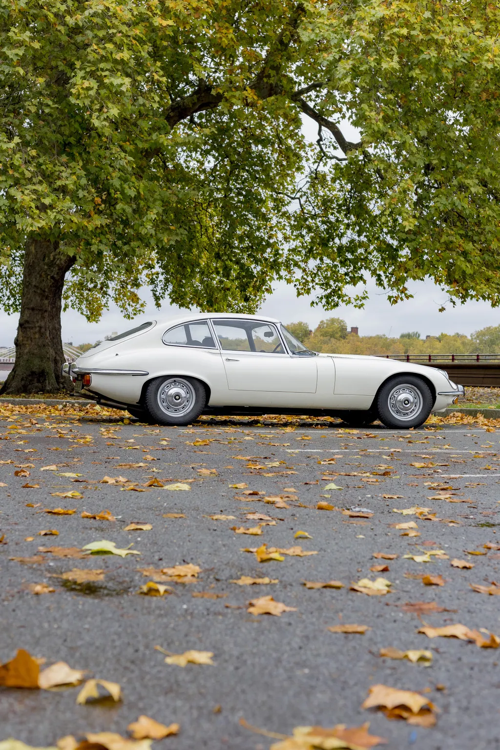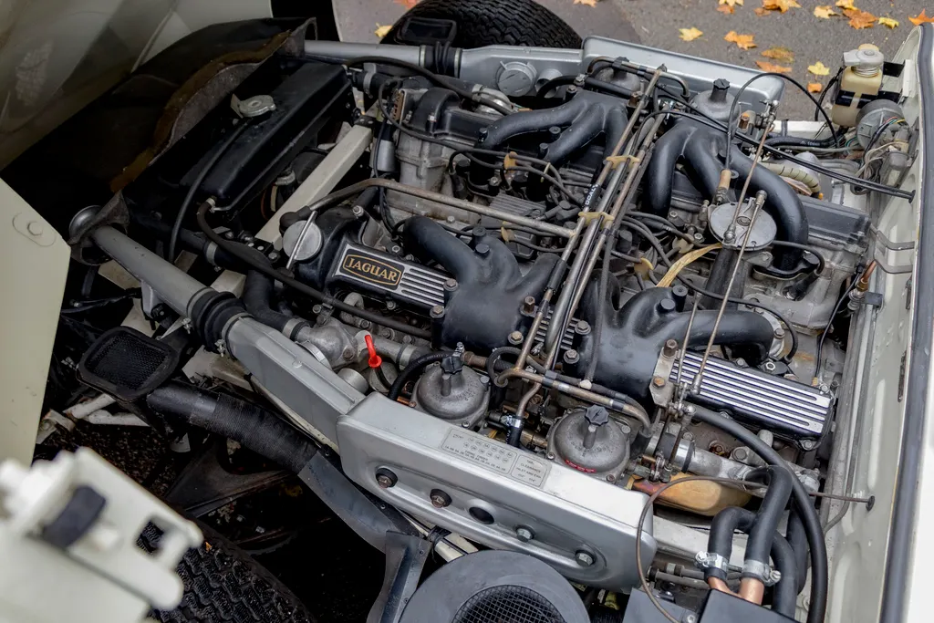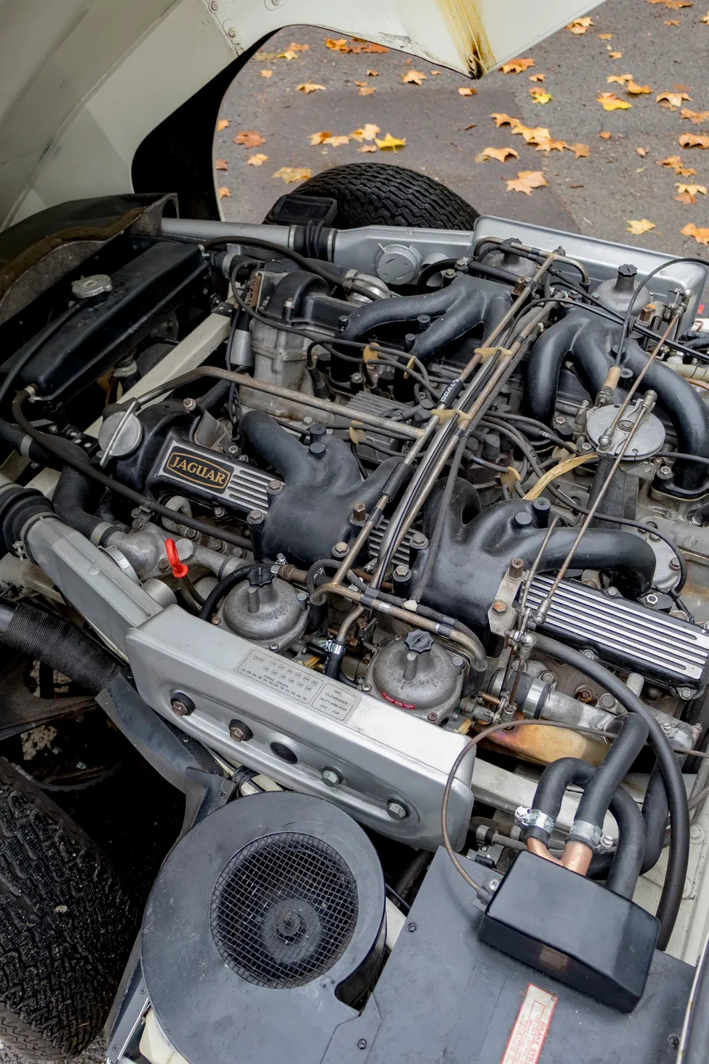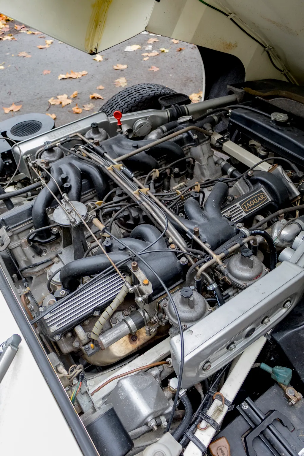 Re-registered in 2015 with support from E-Type Owners Club and DVLA inspection (document retained) after its restoration was completed, the car was given a mechanical rebuild by experts Enginuity based in West London. The car also benefited form a bare metal respray and subsequent re-trim. Today it is finished in its original colour of Old English White and black leather seats along with navy carpets and a grey headliner. A sympathetic restoration, originality was retained wherever possible. The car has since been regularly serviced and maintained regardless of cost. Reported by the vendor to run and drive very well, this handsome final evolution of the legendary E-type is ready to stretch its legs on the open road. Consigned by Will Penrose