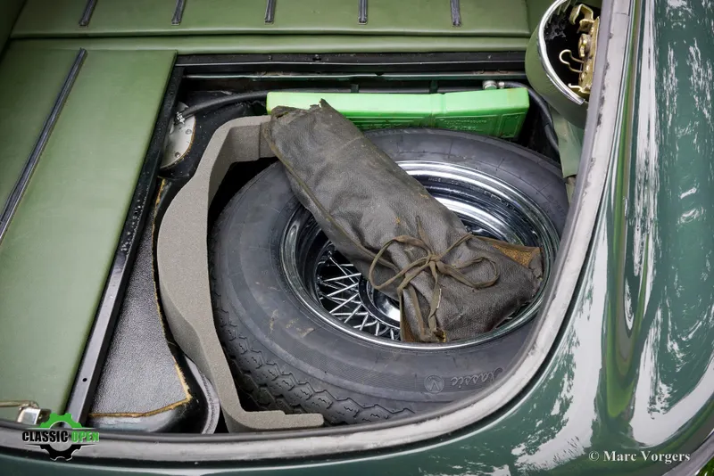 Jaguar E-type 4.2 Litre 2+2 (series 2) FHC, year 1969. Finished in green metallic (Jaguar Opalescent Silver Green) combined with a suede green leather interior, this classic Jaguar features the original dashboard with its array of gauges and switches, complemented by the large and wonderful original steering wheel with wood rim. This Jaguar E-type was extensively restored and still features all the factory original components. Matching numbers, a Heritage certificate is present to confirm this. Imported from Texas, USA, the car underwent a meticulous restoration between 2021 and 2024. The robust 4.2-litre engine has been expertly rebuilt along with the automatic transmission. The restoration is documented in over 150 detailed photographs. This wonderful Series 2 Jaguar E-type 2+2 coupe offers enhanced interior space for both driver and front passenger, as well as generous boot capacity. The rear seats are fitted with safety belts, making them suitable for small children. Notable improvements over the Series 1 include more comfortable seats with headrests, superior engine cooling due to a larger bonnet opening, and upgraded brakes. Additionally, the new stainless-steel exhaust lends the car a sportily refined sound, and the original disc brake system with braking servo works perfectly. This Jaguar drives superbly, with the automatic gearbox delivering smooth shifts – though a manual transmission can be fitted at an extra cost. This Jaguar E-type 4.2 Litre 2+2 series 2 is in a superb TOP condition! We speak Dutch, English , German and French. Our cars can be delivered with Dutch, German or Belgium registration. We can assist with the French registration. Transport to your door is possible. We have our own workshop facility with 30 years experience with classic cars.