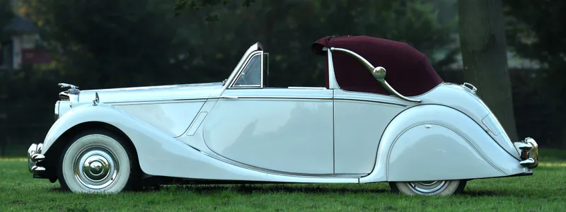 1950 Jaguar MK V 3.5 Litre 3-position DHC For Sale. Registration: BSL 448 Chassis no: 647242 Engine no: T 9633 The Jaguar MK V was launched at the 1948 London Motor Show at the same time as the XK120 with which it shared the stand. However, the Mark V vastly outsold the XK120 by roughly 5,000 cars per year as compared to 2,000 cars per year for the XK120. The new large saloon did not get the new overhead camshaft XK engine however, instead keeping the overhead valve pushrod straight 6 units from the MK IV, except that for the Mk. V no 1.5 litre version was offered. Claimed power output in this application was 104bhp for the 2664cc Mark V and 126 bhp for its more popular 3486 cc sibling, as indeed this example presented is. The chassis was new with independent front suspension by double wishbones and torsion bar, an arrangement that would be used by Jaguar for many future vehicles. The styling of the car was traditional Jaguar with upright chrome grille complete with the leaping Jaguar radiator cap mascot available as an option. The wheels were 16-inch steel disc type, significantly smaller than the 18-inch ones on the Mk. IV. From the side, a distinctive styling touch was a ""tuck in"" curve at the base of the rear window following the curved profile of the side glass. Rear wheel spats were standard and there was also a drophead coupé version which is now highly sought after. A 3.5 litre car tested by The Motor magazine in 1949 had a top speed of 90.7mph and could accelerate from 0-60 mph in 20.4 seconds. So competent were these cars that Jaguar's inimitable test engineer Norman Dewis used a Mk. V regularly. This stunning example that we have the privilege of handling again is not only presented with the more desirable 3.5 litre engine but the drophead configuration are becoming increasingly hard to find. BSL 448 was completely restored by Davenport cars in the late 90’s and finished in the year 2000. The restoration is heavily documented and the end result was truly marvellous. The MK V is still offered in beautiful condition today which is a testament to both the restorers and high level of care taken with BSL448 since this point. It is in great running condition & is used regularly for short runs on fine days with the roof rarely being put up. TYou he exterior paint is white & in super condition thoughout. The roof is maroon mohair & again is in really fine order looking like new. Unmarked maroon leather & carpets are found to the inerior along with eautiful burr walnut woodwork. We sold this car to the current owner in 2019 in Holland & the car currently has Dutch number plates so no Tax is due if sold within the EEC. It is located just south of the Hook of Holland in Ouddorp where it may e viewed by prior appointment. Call Richard Biddulph. Mobile ++44 (0) 7967 260673 Simone Della Corte Mobile ++44 (0) 7377070943 Sales & Valuations Vintage & Prestige of Northampton Ltd. richard@vandp.net www.vandp.net Showroom: 2 Ryehill Ct, Lodge Farm Industrial Estate, Northampton NN5 7UA Viewings & Visits Strictly by appointment only please. We have on site long term storage for over 200 cars with 24 hour security & covered trailer delivery to customers anywhere in Europe.