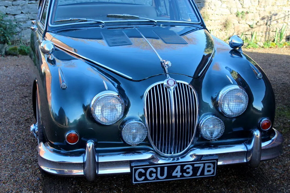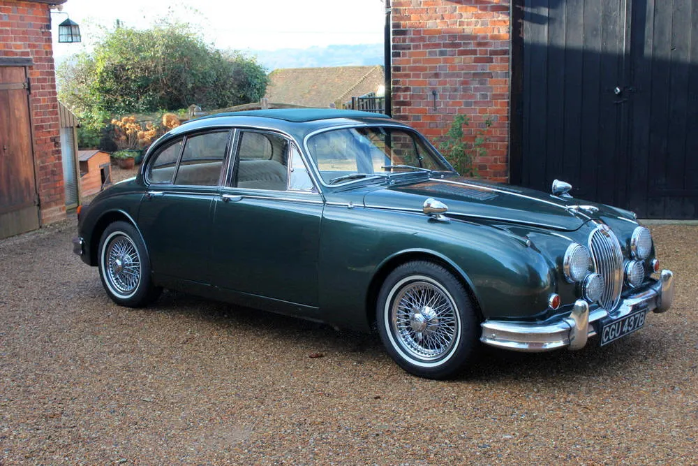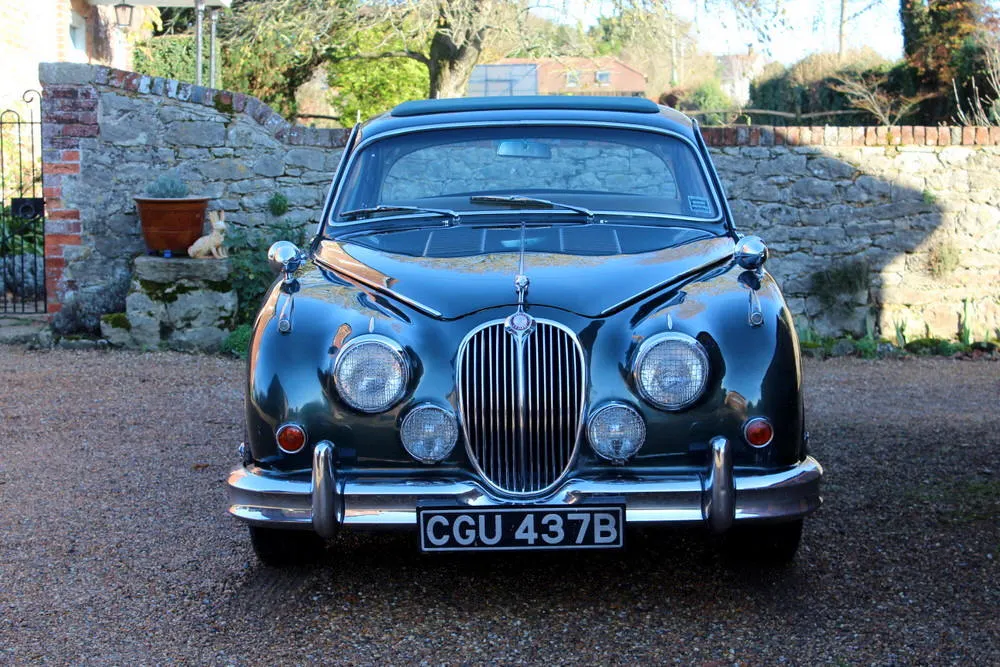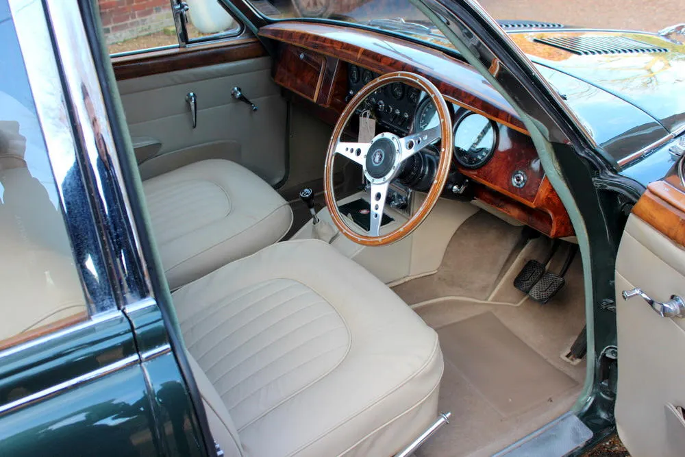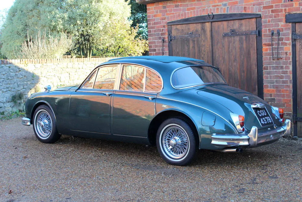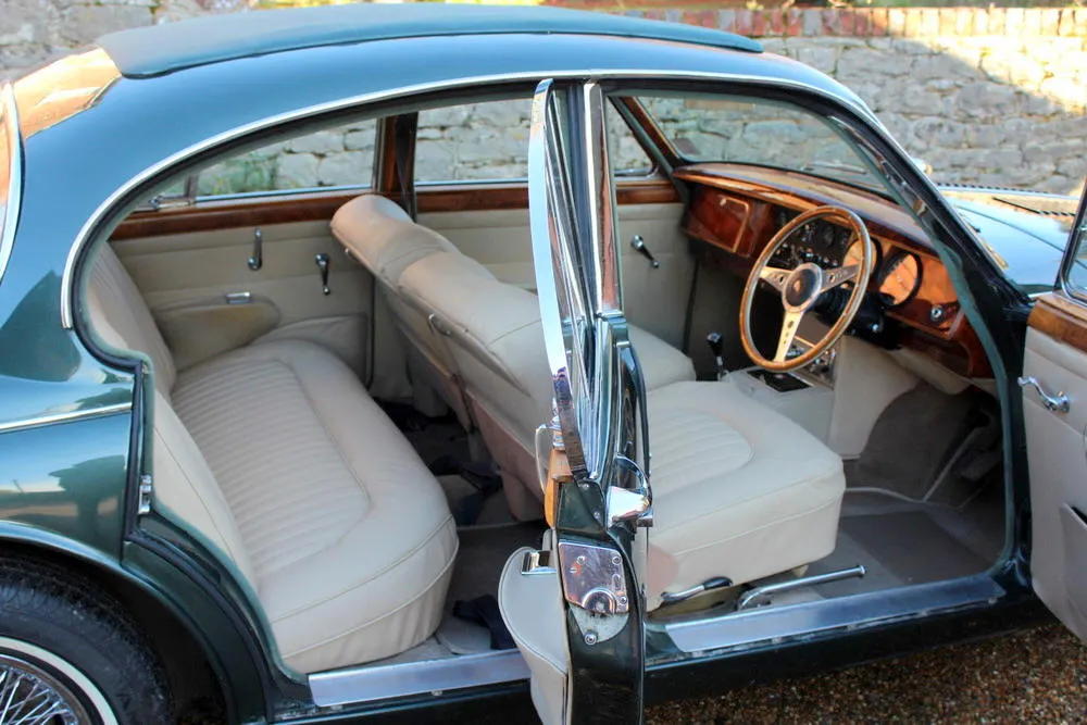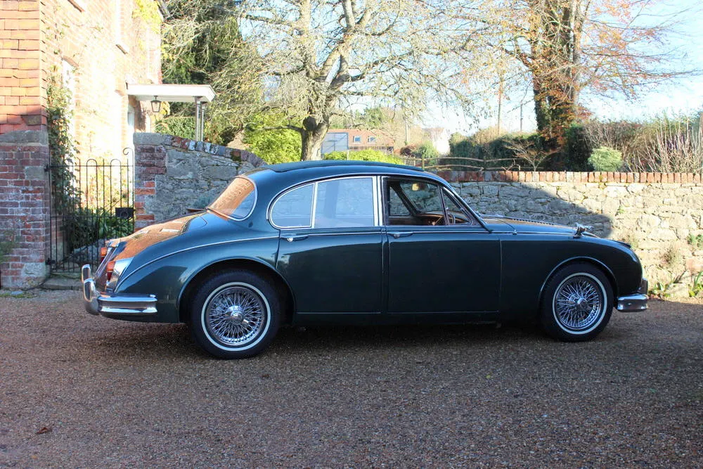 1964 Jaguar 3.8 MOD finished in Opalescent Dark Green with Biscuit hide interior. Offered with an impressive history file detailing the cars careful maintenance throughout the last 28 years of same family ownership. In November 1983 the car was owned by a Mr Scanlan of Brentwood, Essex. The next owner came in 1996, a Mr Stephen Hunt, the proprietor of Forest Garage in Leatherhead, Surrey. In January 1998 the Jaguar was purchased by Mrs Josephine Ribbon of Snelling, Kent, it remained in her family’s ownership until 2025. She kept a note book detailing the story of her ownership as well as the careful maintenance the car had lavished on it during her family’s long tenure, the note book as well as many invoices remain in the history file and make for very interesting reading. Showing just 71,000 miles and presenting in excellent condition throughout this beautiful Mk 2 is the desirable 3.8 manual overdrive model, the body and paintwork are in very good order and the car is set off by the chrome wire wheels and Coombs louvred bonnet. The interior is exceptional with new Biscuit leather and matching Beige carpets, the polished woodwork is all correct and the headlining is unmarked. The experience of being in the car is enhanced further by the addition of the full length Webasto roof. On the road the car performs very well in all aspects and is now ready for its new owner. Sold fully serviced with 1 years MOT.