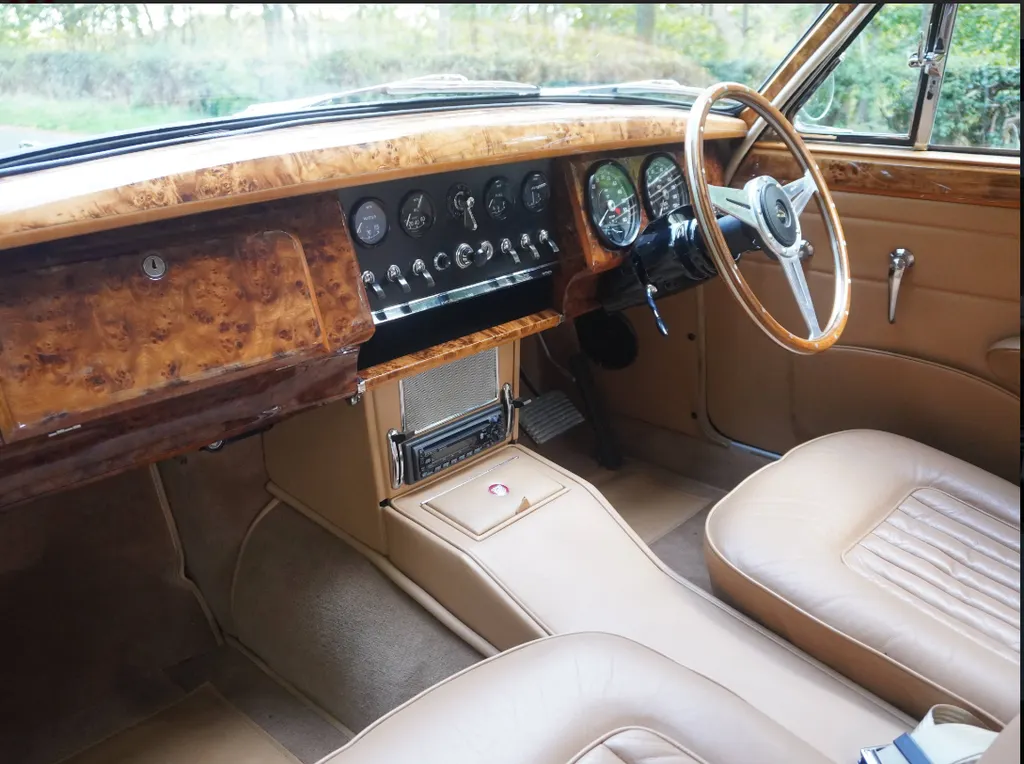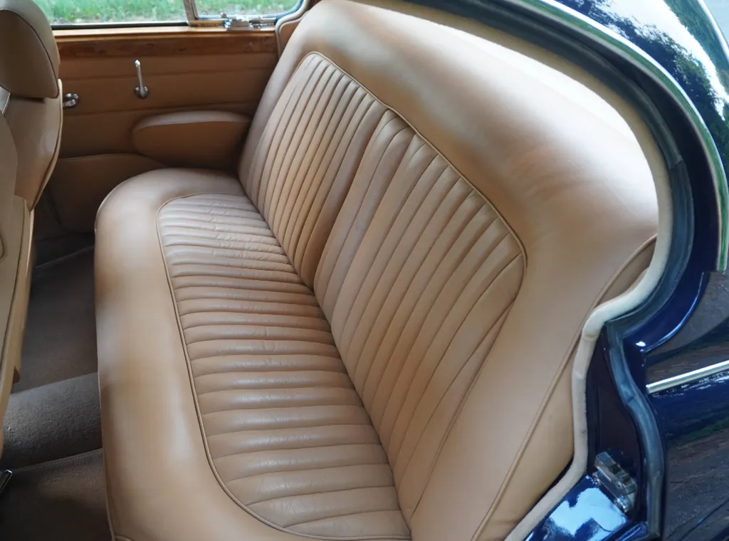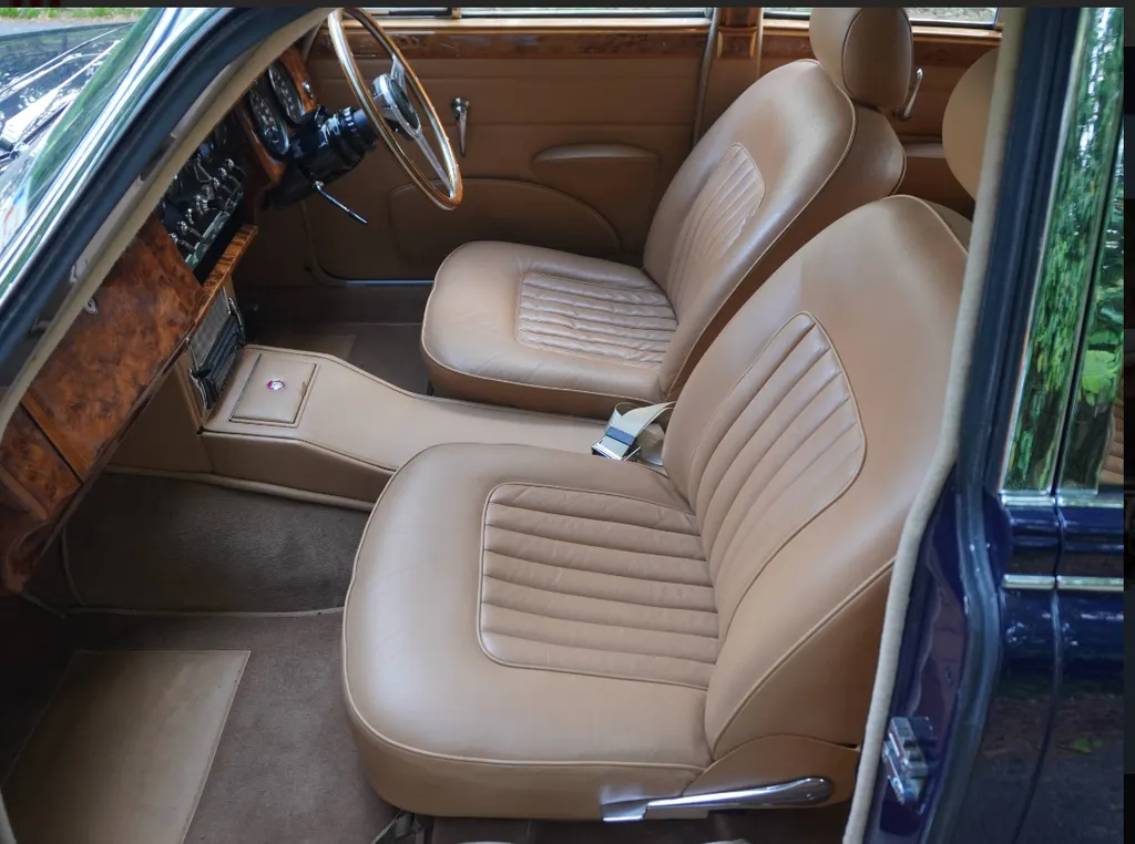 This is likely the very best Jaguar MKII 3.8 Automatic we have brought to the market. We sold the car to its most recent owners on the Isle of Man in 2018 for £59,995, and having had light use on the island, it was then placed on display at the Isle of Man Motor Museum. We have collected the car directly from the museum, and having had a couple of years on display, this top class car will now be fully serviced ready for its next owner. This is a very early MKII that was manufactured on the 23rd of October 1959 and therefore retains some very early features such as the recessed sun visors and right hand positioned indicator stalk as per the MKI Jaguar. This is a very special car that has the most outstanding, first-class bodyshell, only seen in the rarest top quality original cars or high class, expensive restorations. To restore a MKII Jaguar to this standard today could well cost in excess of £100,000 and cars of this quality are very difficult to buy. Distributed from Jaguar Cars, New York and dispatched on the 20th of November 1959, the first owner was F M Wolff and the MKII was ordered new with automatic transmission. During the 1990's the Jaguar was brought to the Netherlands and was subject of a magnificent, total rebuild commissioned by the cars Dutch, lady owner. The MKII was professionally converted to right-hand drive in Holland, in anticipation of the owner moving to Aberdeen where she set up several oil industry Company's. In 2000 the Jaguar was UK registered and from 2000 to 2012 covered just 1000 miles. In 2012 the MKII picked up a prize at a major Scottish Jaguar Enthusiasts Club event and is a truly exceptional car in every respect. From 2012 to 2018 the Jaguar was in dry storage arrived with us for a program of light re-commissioning programme in our workshops. Due to flat spots in the tyres, a brand-new set were fitted, and the automatic gearbox was fully overhauled. The Jaguar was serviced with fresh oil and filters, new spark plugs and brakes were cleaned, checked and are as new. Seven years later Jaguar has returned to us and we can confirm after road testing that it holds superb, makers oil pressure, and the 3.8 unit is in excellent order offering impressive performance. The BW gearbox has perfect, smooth changes and is one of the best we have experienced, the Jaguar is equipped with power steering which ensures the car is relaxing and somewhat effortless to drive. Having only covered in the region of 1500 miles since 2018, and 2500 now since the rebuild over twenty three years ago, the MKII is mechanically first class and is a true delight to drive. This is a stunning show class car, the bodyshell is incredible, the doors close perfectly, just as they would have when it left the factory in 1959. The panels are simply first class, totally straight with excellent gaps and the underside is outstanding and one of the best we have witnessed on a MKII. The Indigo Blue paintwork has a beautiful shine so many years on from restoration and a brilliant finish is evident. The chrome work is of a very high standard, and the engine bay is beautifully presented. The upholstery has been finished to the highest of standards with stunning re-furbished woodwork and high-quality carpets and headlining. The seats have been trimmed with the highest quality leather and everything inside the car works correctly. The driving experience is further enhanced by such a luxurious, high-quality interior that would cost in the region of £15000/£20,000 to re-create considering the high costs in achieving woodwork to this standard. Every part of this vehicle highlights quality, and this certainly has to be the very best Automatic MKII we have come across in 35 years of selling classic cars. This is a special car, and one to really drive and enjoy. Following its period off the road it has been recently fitted with a new fuel pump and battery. The car will be fully serviced, MOT tested and be subject to a thorough brake service before being delivered to its next owner.
