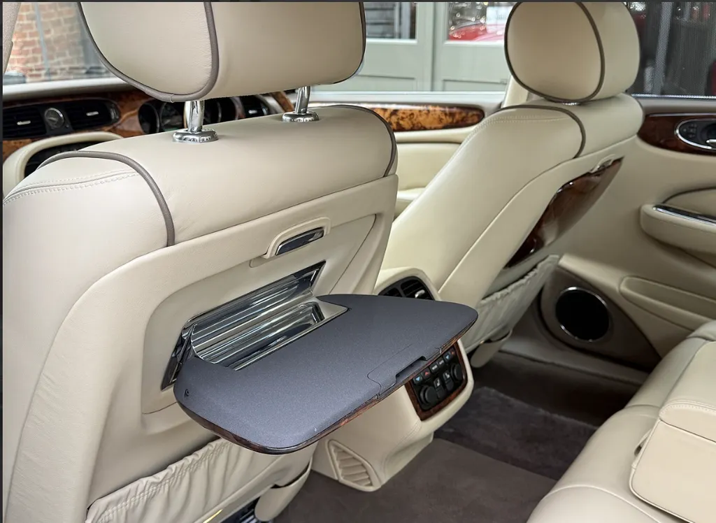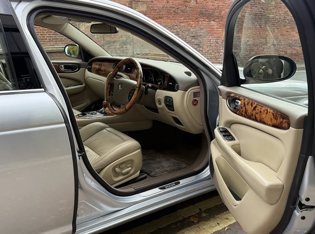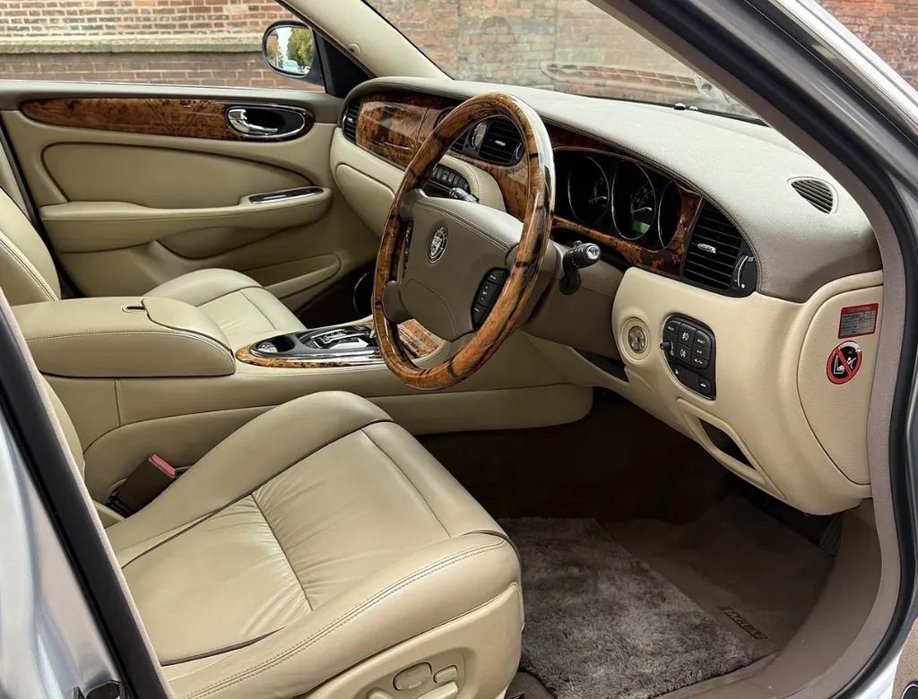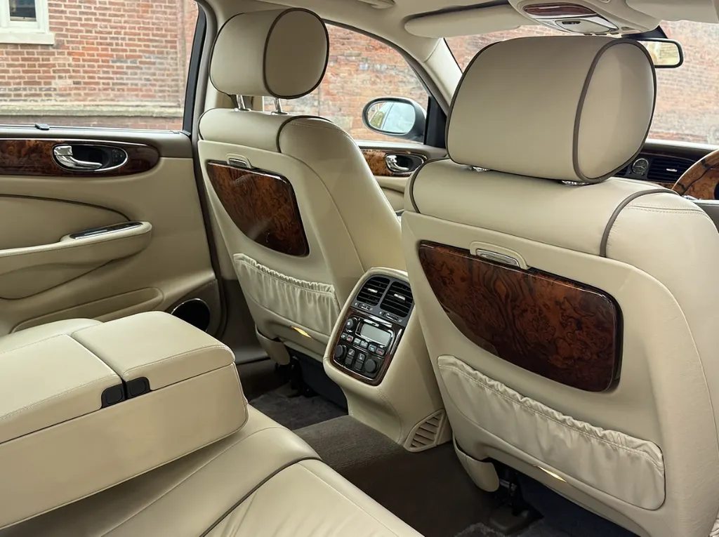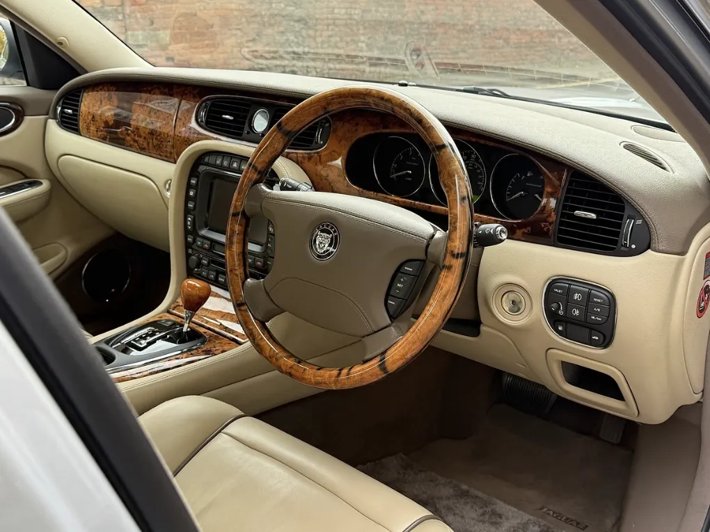 A truly outstanding example of Jaguar’s flagship Super V8 LWB, showing just c.27,500 warranted miles and presenting in exceptional condition throughout. Imported from Japan in early 2025, this car has clearly been cherished from new. Finished in Liquid Silver metallic over Barley Sovereign leather with light Walnut veneer, it remains in superb order inside and out. Of note, this example was factory-specified without a sunroof – a desirable and rare configuration which contributes to a quieter cabin and cleaner roofline. Being a long-wheelbase model, it combines the performance of the XJR with the luxury of the Daimler, featuring adaptive air suspension, Brembo performance brakes, touch-screen navigation, xenon headlamps, heated front and rear seats, rear memory and recline seats, electrically operated rear sunshades, picnic tables, and Alpine premium audio. Powered by Jaguar’s renowned AJ-V8 4.2-litre supercharged engine, producing 400bhp and 408 lb-ft of torque, the Super V8 delivers effortless pace — 0–60 mph in around 5.0 seconds — while maintaining a refined, comfortable ride through its ZF 6-speed automatic transmission and adaptive damping system. This 2007 facelift brought revised exterior styling, double-glazed glass, Bluetooth connectivity, and updated electrical and mechanical systems for improved refinement and reliability. Accompanied by its Japanese and UK service documentation, invoices, and UK V5C registration, this Super V8 stands out for its low mileage, unmodified originality, and non-sunroof specification — a rare opportunity to acquire one of the best-preserved examples of the X350 Super V8 available today. Supplied fully inspected, serviced and ready for immediate use. Our coffee pot is always hot.