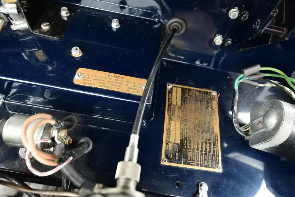 1956 Jaguar XK140MC Special Equipment OTS RHD Chassis Number: S812408 Registration Number: WAF560 (To be retained by Owner.) Nut & bolt restored 5 years ago to as new. Since then the car has covered just over 1000 miles per year bringing the total up to 6431 miles since restoration. The works undertaken are needless to say extensive to say the least & include the following: Total body off restoration to the specification of business owner for personal use as fast tourer Converted to Right hand Drive Chassis blasted and powder coated All chassis components blasted and plated Suspension re-bushed etc Disc brakes to front Power steering installed All new wiring harness New spoked wheels in body colour pacific blue Bodywork blasted to bare metal, repaired when necessary Sprayed with jaguar pacific blue colour Under bonnet panels replaced where necessary. Engine rebuilt and fitted with new alternator and starter New Guy Broad 5 speed box fitted Radiator re cored Electric fan and guy broad multi blade fan fitted Stainless exhaust All new interior with Bucket seats New Mohair hood and tonneau in matching blue All chrome either re plated (by Derby plating) or replaced with new. All switches replaced. I believe this car is probably one of the best available and a pleasure to drive with the sensible modifications. The car simply put wants for nothing. Far more has been spent upon it then the asking price & it is totally sorted & a wonderful car to drive with no rattles or creaks whatsoever; a testament to the quality of the restoration. Please be sure to see the underside pictures of the car which give you an idea of the level of detail gone to during the restoration. The car is finished in Jaguar Pacific Blue with a tan interior.