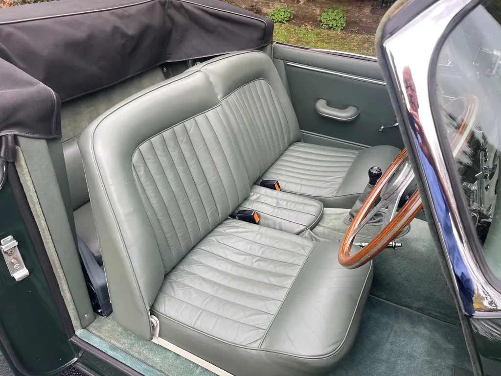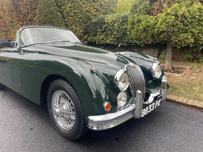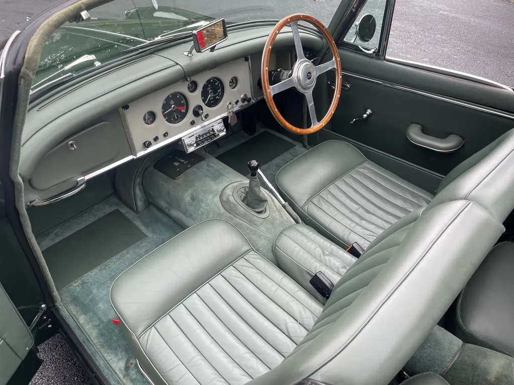 JAGUAR XK 150 3.8 ‘S’ DROPHEAD COUPE: British Racing Green with Suede Green hide interior. Black mohair soft-top and hood cover. 16” chromium wire wheels. Original UK supplied RHD example that was subject to a body-off restoration by J.D.Classics 25 years ago, it has covered 62,000 miles since! Original engine with 5-speed gearbox, P.A.S. etc. One of the rarest and most desirable XK’s. £145,000