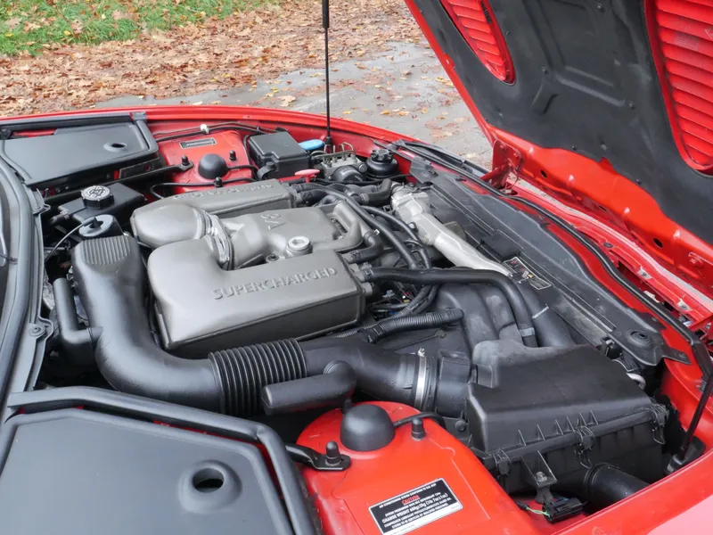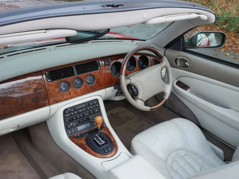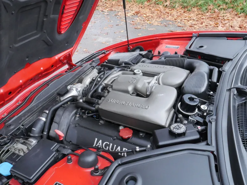 Superb XKR in red with beige leather interior, just over 80,000 miles on odometer backed up by lots of old MOTs, 14 service stamps plus plenty of history, recent work to air conditioning, new MOT with no advisories, excellent body, paint, interior and roof, stainless exhaust, all the usual refinements, and roof cover. Comes with V5, complete Jaguar booklet pack including service history and MOT. XKR features mesh front grille, bonnet louvres, boot spoiler, 18" alloys, Eaton supercharger, 0 to 60 in under 6 seconds..