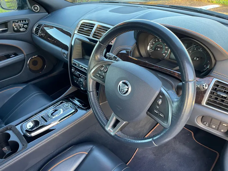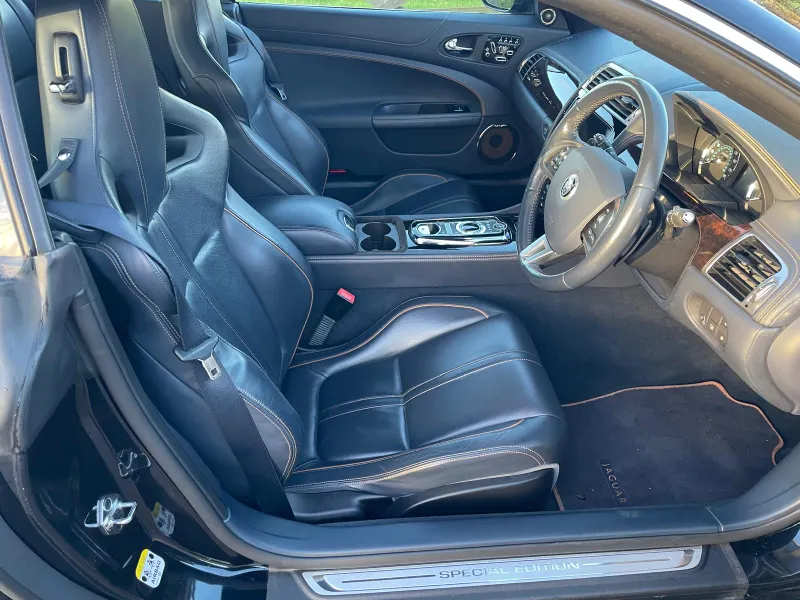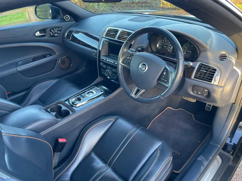 Another amazing piece of British engineering with a limited edition of 90 cars for the UK Finished in Celestial black which is actually very dark blue and Scraffito navy leather Sports seats piped in Mustard The dash and headlining is also finished in leather and Shadow walnut veneers finish off the interior more akin to an Aston Martin than a Jaguar Very high spec with 20” Orona alloys,sat nav ,Bowers and Wilkins sound system ,heated steering wheel and seats etc The 5.0 litre V8 provides a glorious soundtrack and more than enough power and will provide much excitement With only four mature owners she has been well cared for with 8 main dealer services and 3 specialist services and is in stunning condition Great value and future classic potential with very low production numbers