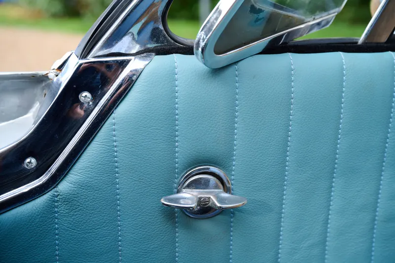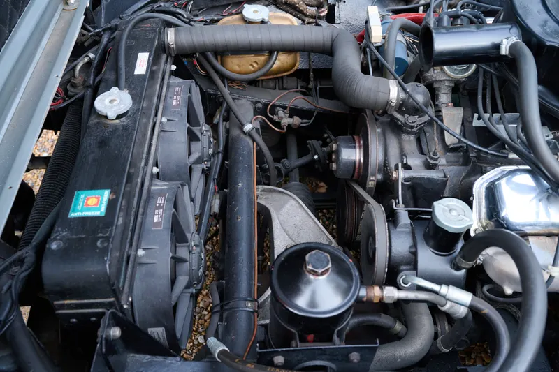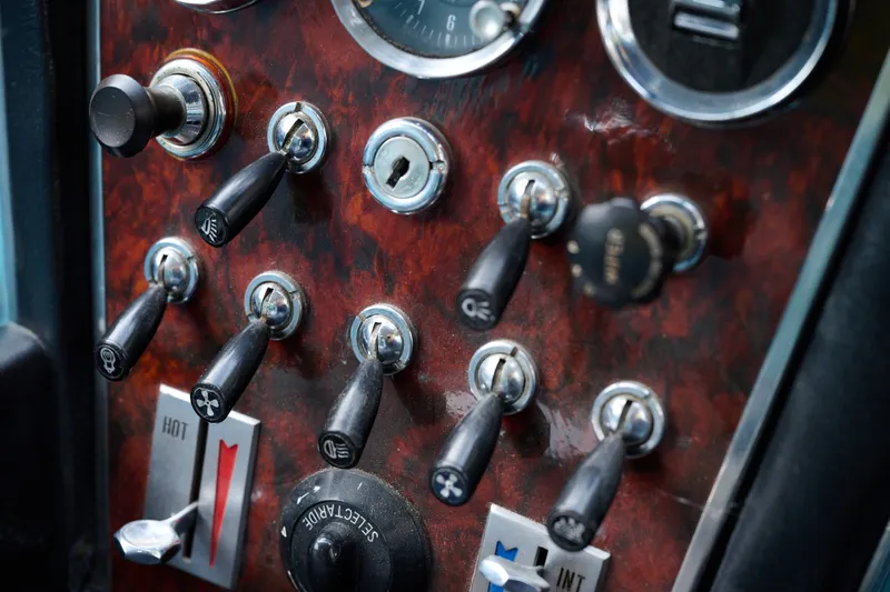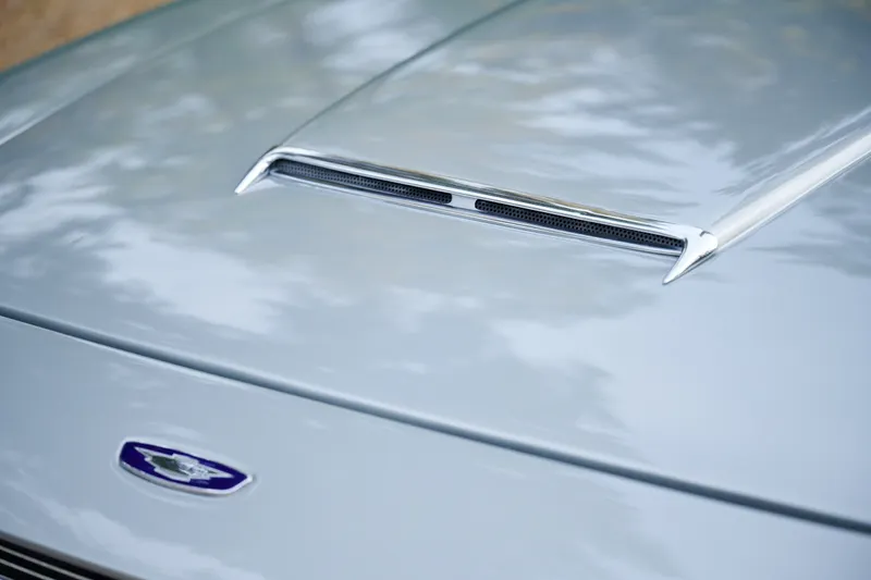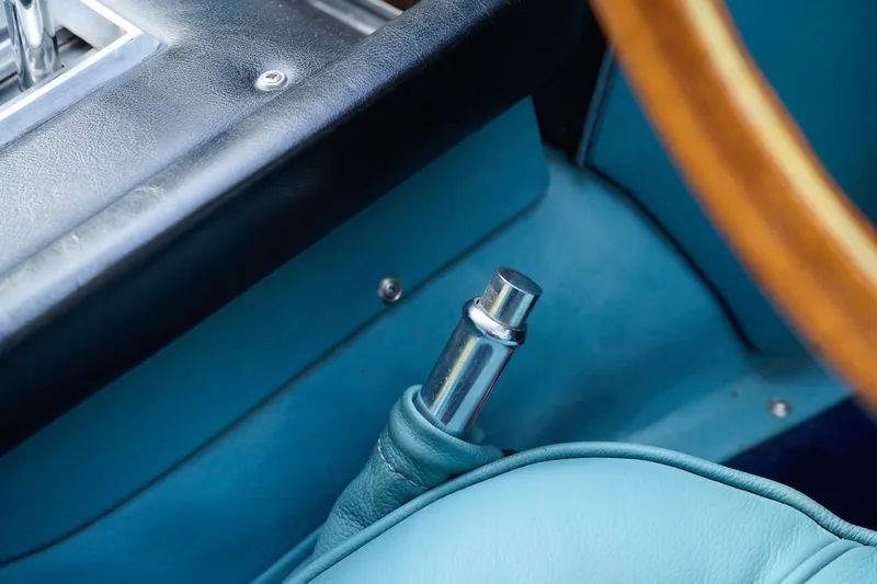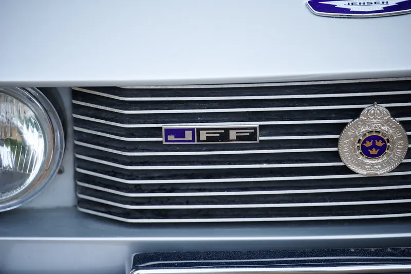 Ulric Woodhams' Jensen FF Museum has followed and supported a major restoration that was carried out in Sweden to a high standard at a cost of approximately £75,000. The original factory-supplied engine was stripped and rebuilt and its correct and original Carter carburettor overhauled. The brakes, suspension and automatic transmission were also rebuilt. The bodyshell was treated to a bare-metal repaint in correct Mist Grey and the interior re-trimmed in Vignale Steel Blue leather as per the original special order. The correct Rostyle wheels have been restored and new Avon Turbo Speed tyres fitted.