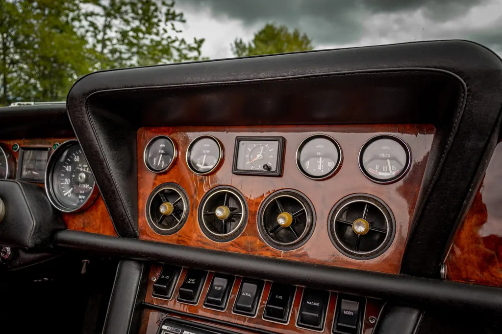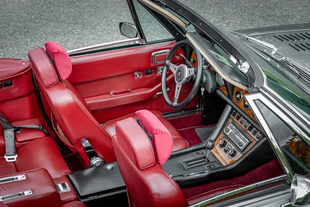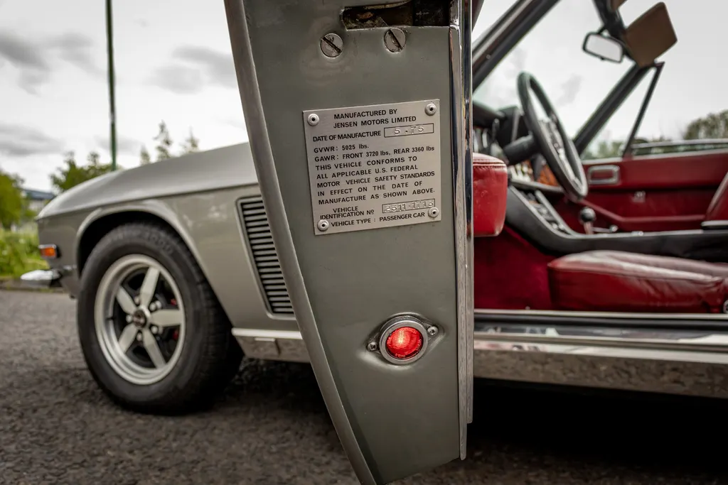One of 262 examples manufactured in 1975, chassis number 23111713 was supplied new to the United States of America in left hand drive configuration. The Interceptor is finished in Silver Grey (one of just 64) which is complemented by a red leather interior, a matching red hood cover, and a hood trimmed in black. Remaining in the United States until 1989, the Jensen was repatriated from Florida to the UK, being subsequently purchased in the same year by the vendor. Chassis number 23111713 has a believed genuine recorded mileage of 71,965 miles at the time of consignment, with MoT test certificates dating back to 1989, supporting the mileage.