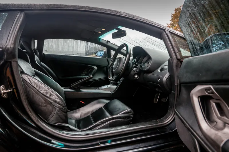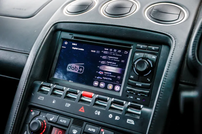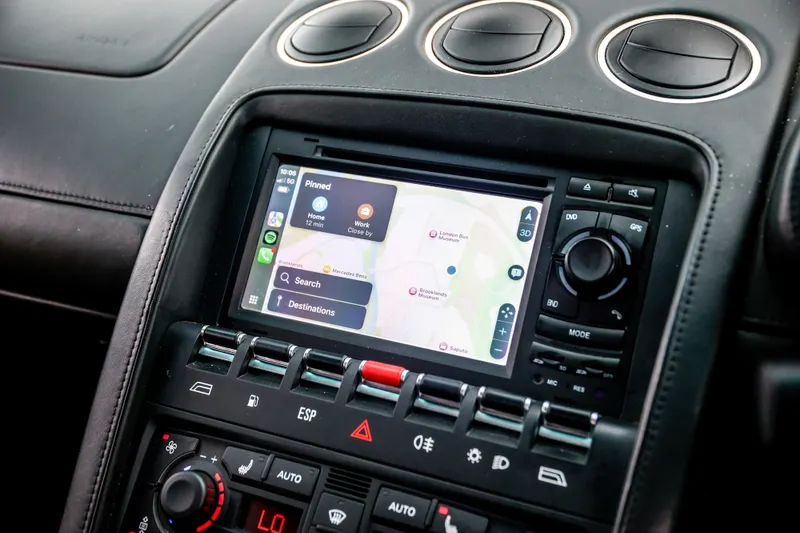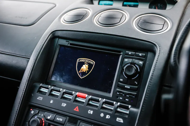 This beautifully presented, low-mileage Gallardo Coupe is finished in metallic Nero Black with a full black leather interior. First registered on 4th January 2005, it has remained in its current custodian's care since 2023. During this time, a number of cosmetic and usability upgrades have been carried out, including the refacing of rocker switches and HVAC controls by specialists Carplastix, as well as the installation of an OEM-style Apple CarPlay unit with a reversing camera. The car boasts a comprehensive service history, with the most recent service completed in March 2025, which included a new battery, ABS sensor, and significant exhaust system work. Further evidence of careful maintenance includes an invoice from September 2025 for a new power steering pump, air-conditioning compressor, and re-gas, while more recently it has also received four new tyres.