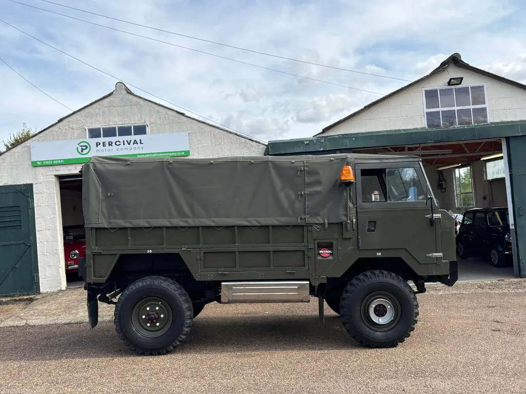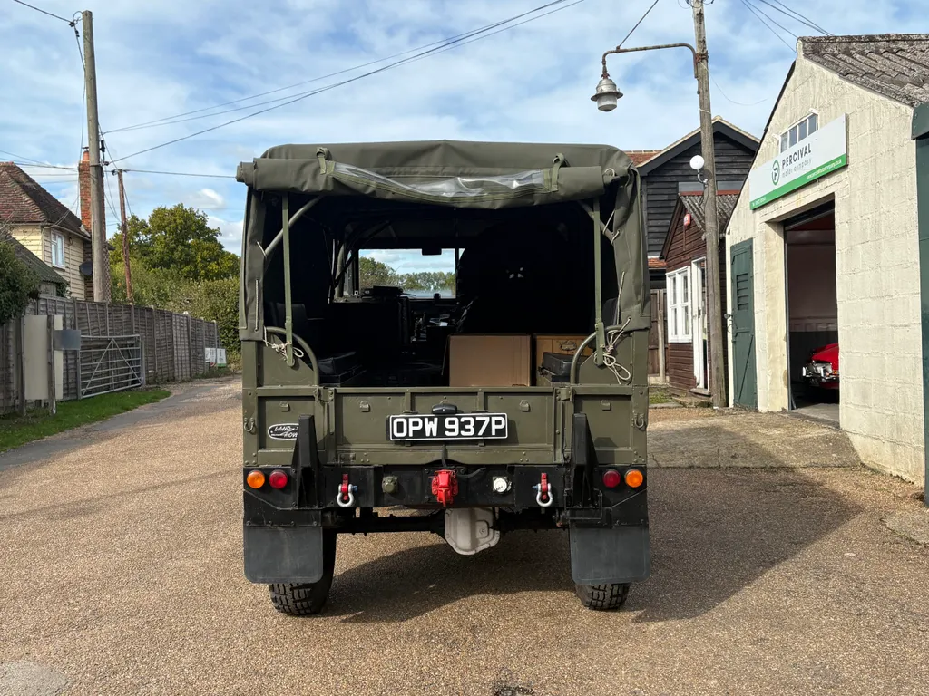 In Nato green. Straight from a local Land Rover enthusiast who acquired it from a specialist six years ago, this 101 is RHD and has the Rover 3.5 litre engine. It is 12 Volt and has a recent soft top, the doors have been replaced (a weak area on these vehicles) and it a full set of front mounted Pioneer tools. It's in good condition throughout and has been used for military and local shows. It has covered 53,000 miles and comes with its Military B card showing that it served with 29 Commando and the Royal Green Jackets. Further details to follow.