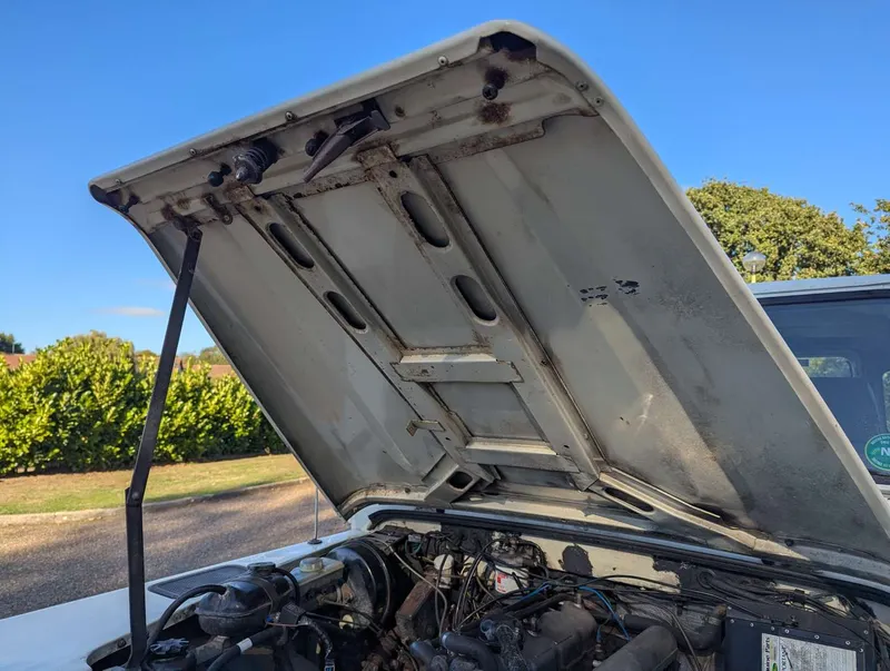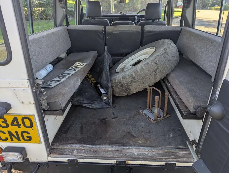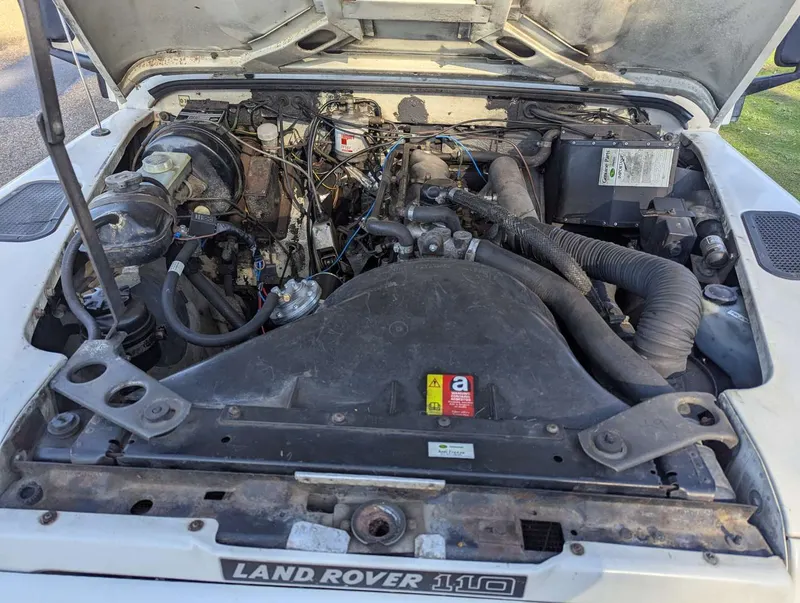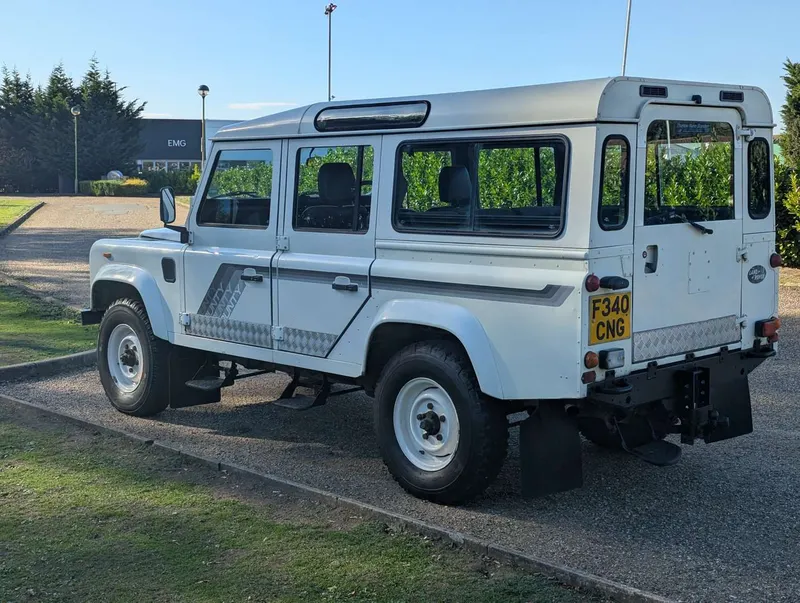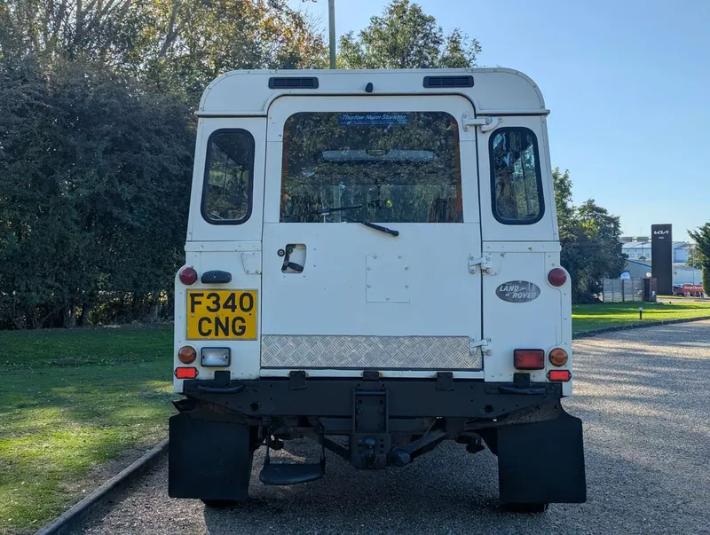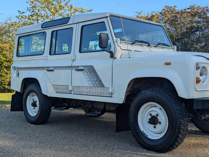 2495cc. This white Land Rover One Ten County Station Wagon was first registered on 15th March 1989, so it pre-dates the arrival of the 200Tdi Defender in 1990. It's powered by Land Rover's 2.5-litre 19J Turbo Diesel with a five-speed LT77 manual gearbox, and the odometer is showing 104,151 miles. Being a CSW it's equipped with seating for up to 12 people, and passenger-friendly features such as a sunroof and side steps. The vehicle comes with a current MoT to 30th January 2026, having been tested almost every year since DVLA records were digitised in 2005. Its paperwork comprises the V5C, which is in the vendor's name and shows 4 former keepers, plus a collection of MoT certificates. Spare keys are also present. Not specified