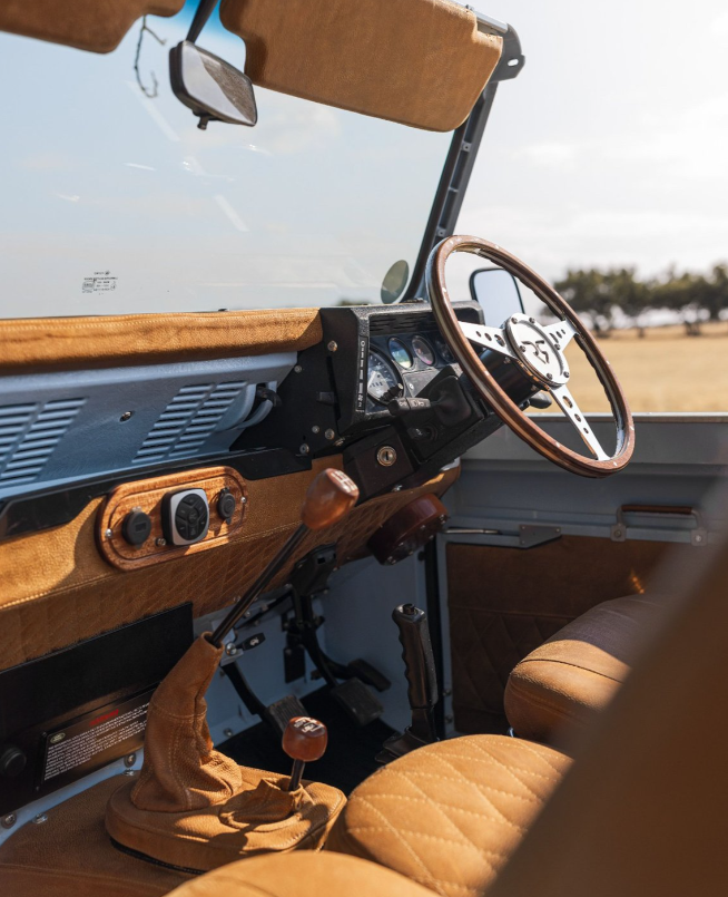 Riva for the land Less than 500 miles since build No expense spared. Few Defenders have been reimagined with the style, elegance and sheer sense of occasion achieved by this bespoke Defender 110 “Beach Runner” - a ground-up 2023/2024 rebuild commissioned to evoke the charm and sophistication of a classic Riva, but translated into a car; long summer evenings, unhurried, barefoot adventures. This isn't a rough-and-ready utility vehicle. It is a fully capable machine but built with complete style and taste. Even the radio system is the same you'd find in a boat - not a car!! This is a linen shirts, cargo jackets kinda car, for those whose weekends are spent for pleasure! At its heart lies the classic V8 petrol engine, giving the 110 the smooth, effortless surge that partners perfectly with its relaxed, Riviera-toned brief. Beneath it sits a fully galvanised chassis, ensuring longevity and structural integrity for years to come, while power steering and seating for eight make it as comfortable and practical as it is stylish. Inside, the transformation is like a Savile Row suit. A completely bespoke interior finished in water buffalo leather first hits you in the nose - the smell is incredible! The texture and hand-trimmed wood throws hints to the day boats of the 1950s and '60s. And while the aesthetic is timeless, the comfort is entirely modern. A premium JL Audio system with BLAM speakers throughout, discreetly integrated Bluetooth, and exceptional sound quality give the cabin a level of ambience and musicality seldom found in any Defender, let alone one that still looks so authentic. It's the same principle as a Riva: elegance first, luxury always, but never at the expense of atmosphere. Presented in immaculate condition, low miles, the car has been hardly driven since the rebuild was completed last year and remains in impeccable condition. We only got it because the owner is relocating overseas - presenting a genuine opportunity to acquire a one-off, hand-built Defender to levels we rarely come across. The price reflects not only the quality of the work but the rarity of such a cohesive vision. This is not just a capable Defender for the fields or the dunes, but also a jaunt-mobile for the city, lakeside, day trips - just like a Riva! A one-of-a-kind creation - elegant, groovy, beautifully finished and something hard to ignore. A Defender reimagined as a Riva for the road.