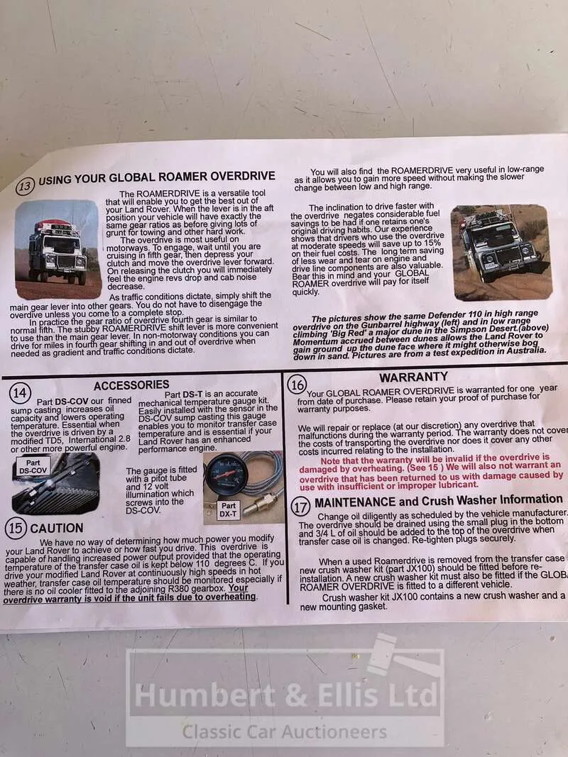 2004 LAND ROVER DEFENDER 90 COUNTY TD5Owner from newDelux CabElectric WindowsGalvanised ChassisDS-B RoamerdriveLimited Slip Diffs'Soft' Clutch Spring6mm Thick Steel Galvanised Front BumperMake: LAND ROVERModel: DEFENDER 90 COUNTY TD5Registration Plate: DU04SRZYear of Manufacture: 2004Mileage: 110000Mileage Type: MilesMOT: ExpiredMOT Expiry: 2022-11-17V5: PresentDrive: RHDTransmission: ManualFuel Type: DieselEngine Size: 2495Engine Number: 15P88609AChassis Number: 76968Weight: 2400Registered Former Keepers: 1Interior: GreyColour: GreenHas Keys: YesDoors: 2Seats: 3SORN Registered: YesThis vehicle is located near Bedale, North Yorkshire DL8 from where it will need to be collected.Videos available on request. Please see 'Additional Documents' above for Motorscan Report.Viewing is by appointment, please contact the office to arrange. n/a