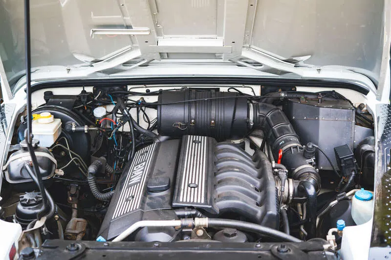 This lot will be auctioned via Iconic Auctioneers, The Iconic Sale at the NEC Classic Motor Show 2025 on Saturday the 8th of November, NEC, Birmingham, B40 1NT. A rare interpretation of Britain’s most iconic off-road vehicle, this Land Rover Defender 90 M52-2.8i offers a unique combination of heritage styling and refined performance. Built in very limited numbers for selected markets, it is powered by the BMW 2.8-litre M52 straight-six engine – a smooth, torque-rich unit more commonly associated with performance saloons than utilitarian 4x4s. The result is a Defender that remains resolutely capable off-road while introducing a level of on-road sophistication rarely found in the model’s lineage. The example offered here is a highly regarded build completed by South African specialists MadeYouLook, known for their expertise in M52-powered Defenders. This particular car, titled ‘MYL 007’ by the firm, has been extensively restored and mechanically uprated, with fastidious attention paid to every detail of its construction and finish. The result is a Defender that presents today in superb condition, both cosmetically and mechanically. Finished in white with contrasting black trim, the Defender retains all the purposeful, angular charm of the original model. It sits on 16-inch black steel wheels with BFGoodrich Mud Terrain tyres (265/75 front and rear), which offer both visual presence and proven off-road capability. The wheels are in excellent order with only minimal marks, and the tyres show no signs of cracking or uneven wear. Panel fitment is precise, with straight body lines and consistent gaps throughout. Doors, bonnet and tailgate open and shut cleanly, reflecting the build quality and structural integrity of the restoration. The paint finish is smooth and uniform across all panels, showing only light wear to the base of the kick plates – a minor detail on an otherwise impressively presented vehicle. The black roof covering remains in excellent condition, with tight fitment and no visible damage. All glass, seals and exterior trim present extremely well. The windows and mirrors are free from scratches or chips, while the rubber seals around apertures remain soft and intact. Badging and lighting components are all present and correct, contributing to a finish that is consistent, authentic and robust. Under the bonnet, the BMW M52 2.8-litre engine delivers a level of power and refinement far beyond the Defender’s original specification. Paired with a five-speed manual gearbox, the drivetrain provides smooth acceleration and a relaxed cruising character, without compromising the low-range torque required for serious off-road work. The combination of German engineering and British toughness results in a highly usable and enjoyable all-purpose vehicle. Having undergone a professional rebuild by one of the foremost names in this niche, and showing signs of careful ownership since, this Defender 90 M52-2.8i represents a rare opportunity. It retains all the utilitarian charm and rugged presence that make the Defender a global icon, while offering a driving experience that is far more refined than most examples of the era. Whether as a weekend adventurer, collector’s piece or continent-crossing overlander, it is a uniquely compelling proposition for the discerning enthusiast.