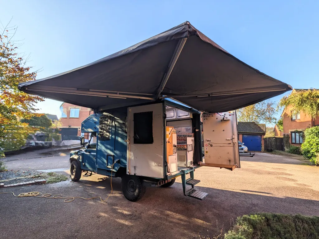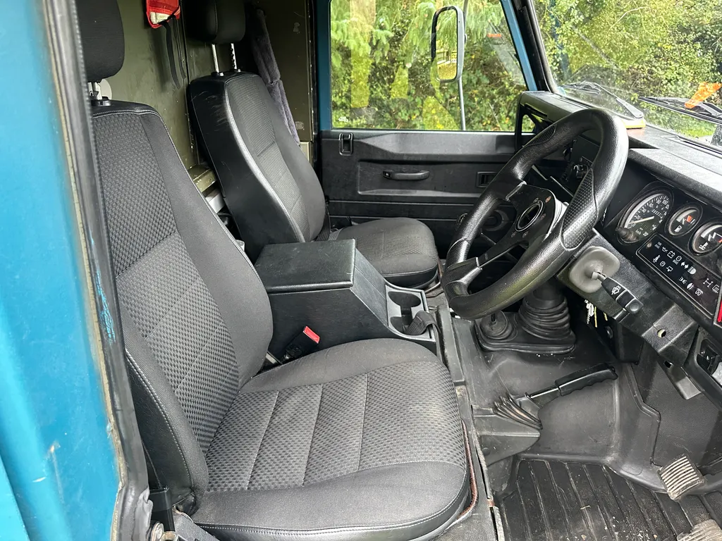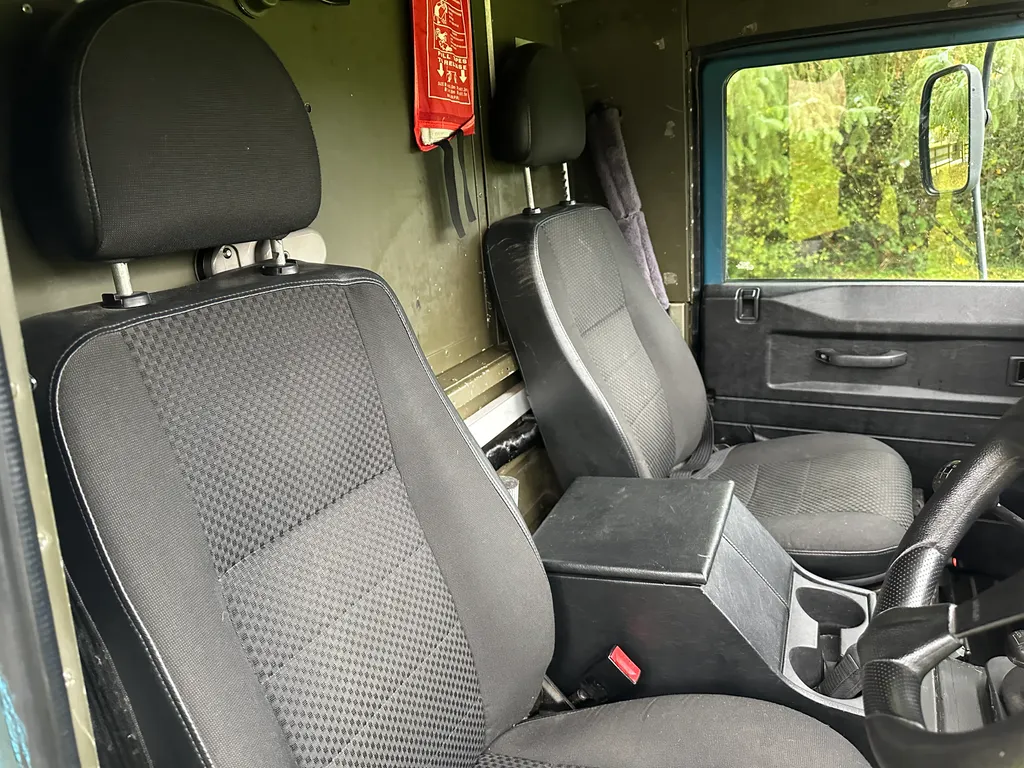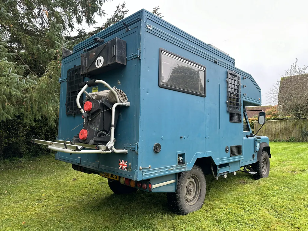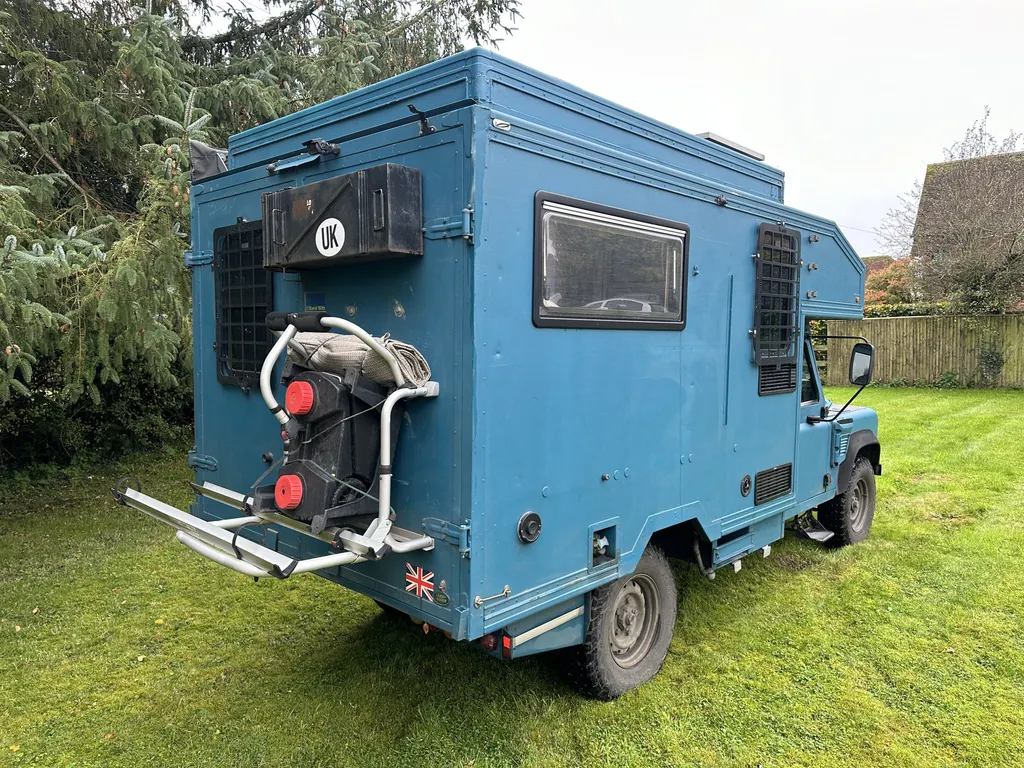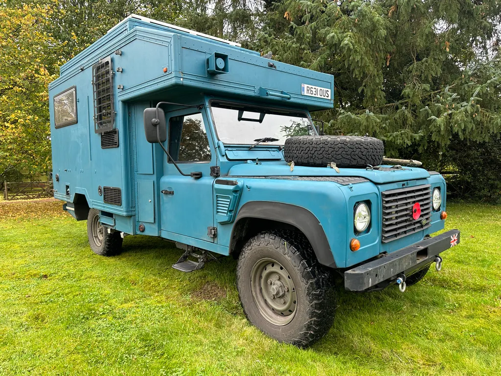 motodrome offer for sale this magnificent 1997 Land Rover Defender 130 300TDi Pulse Ambulance, that has been superbly converted into a proper overlander by the team behind CamperHus, who are well known for their quality Land Rover conversions. All the VIN numbers are in the right place and visible, making this one eminently US exportable It was built to the specification of the last owners, who bought the best available Pulse out of 15 they had professionally inspected at L Jackson & Co, the MOD surplus outlet, in 2020. It was sent to CamperHus with the brief to enable them, as a couple with their two dogs, to travel and work as digital nomads anywhere they wanted to, and for the last 3 years and around 50000km around Europe, that’s exactly what they’ve done, making some amazing memories along the way. Finished in Land Rover Tuscan Blue raptor, the external spec includes CamperHus Hi-top roof conversion with 2 marine-spec sliding roof hatches and solar panel Ostrich Wing 270 degree awning Security grilles over sliding windows on the camper body 60 litre water tank LPG underslung tank to power cooker/heater. Civilian doors with wind up windows and Optimill handles and security hinges LED headlights (which double up as DRL’s) 240V mains hookup 360 degree cameras Slam security locks on the rear door Cycle rack, grey water tank and external stowage Steering guard Wolf HD rims with a matching set of BFG tyres Whilst there are internal cooking facilities, on opening the rear doors, the original stretcher lifters have been converted into foldable worksurfaces, and there are gas and water points, meaning cooking and eating can also be done in the open air or under the awning, weather permitting. The drivers cab has 2 puma Defender cloth seats, centre cubby box, full Wolf floor soundproofing/insulation kit, Optimill removeable steering wheel with lockable centre boss cover, stowage for the cover, lighting, and a table that stows up against the headlining. Inside the camper body, the conversion was done by CamperHus to a very high standard, but has also benefitted from 3 years of ‘in the field’ testing and improvement to see what works and what doesn’t, to the extent that it’s now a very efficient place for 2 people to explore the world. It’s set up with seating that has multiple configurations including table seating, twin day beds, but then converts into a double bed. Also sink, space for cooking with a portable gas cooker fridge/freezer shower room / toilet twin leisure batteries with Victron battery management system Variable lighting system with spotlights and LED strip and plinth lighting And masses of very clever storage solutions throughout, including the over-cab area. Being essentially a Wolf, it’s powered by the venerable and totally dependable 300TDi engine, with R380 5-speed gearbox, power steering, and disc brakes all round. Mechanically it’s been converted to 12V for ease of maintenance, but also fitted with Larger intercooler Uprated oil pump and bigger sump Air-locking rear diff Koni shocks all round with HD roll bars and steering bar LOF light action clutch HD starter, alternator, steering bar, halfshafts and drive flanges You won’t find a better, more thought out example on sale at the moment in my opinion. Driving-wise, it’s absolutely on the button. The odometer reading is 96000km which, whilst being an ex-military vehicle we can’t warrant, is likely to be correct as it’s had just the one keeper since being registered. It comes with MOT to April 2026 (no advisories), and a huge file of history setting out what’s been done to it at great expense to make it the superb overlander you see today. Recent work includes New LOF clutch and gearbox reconditioned Mar 24 New injectors, injection pump and cambelt Aug 23 Plus of course regular servicing – last done Mar 24 On our own website you’ll find 3 videos, a walkaround appraisal, and driving impressions, plus one more video of the interior Viewing by prior appointment E & OE
